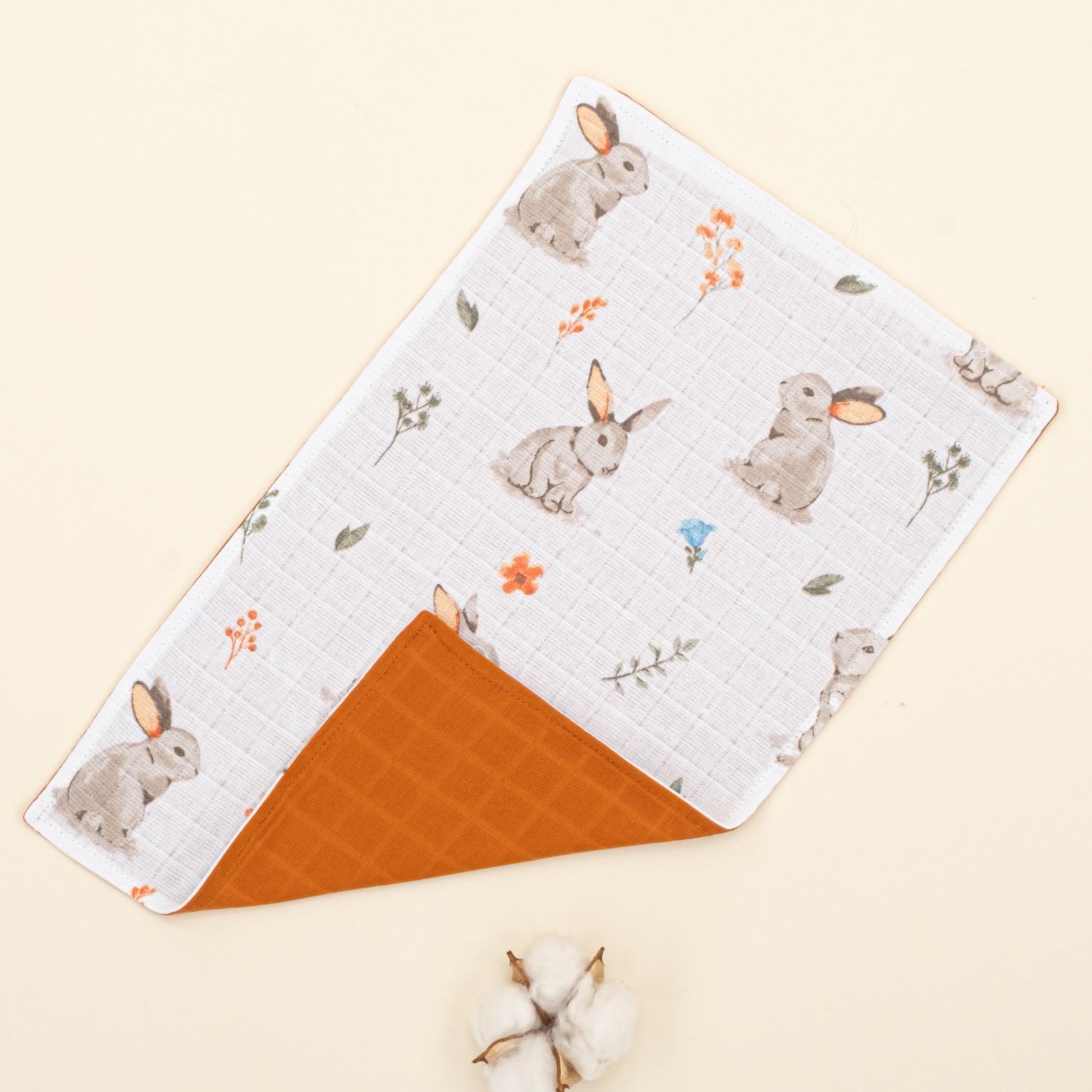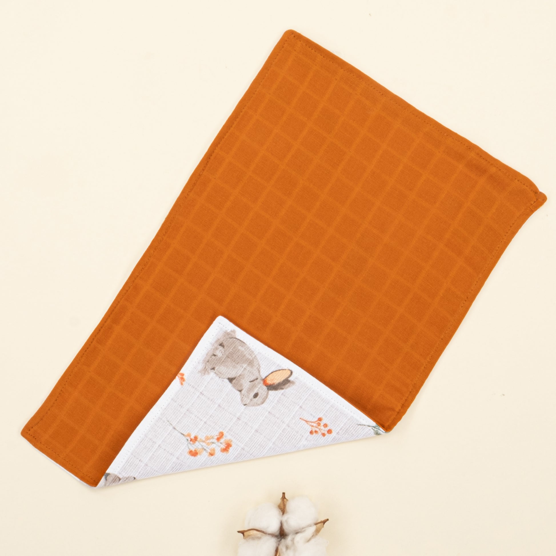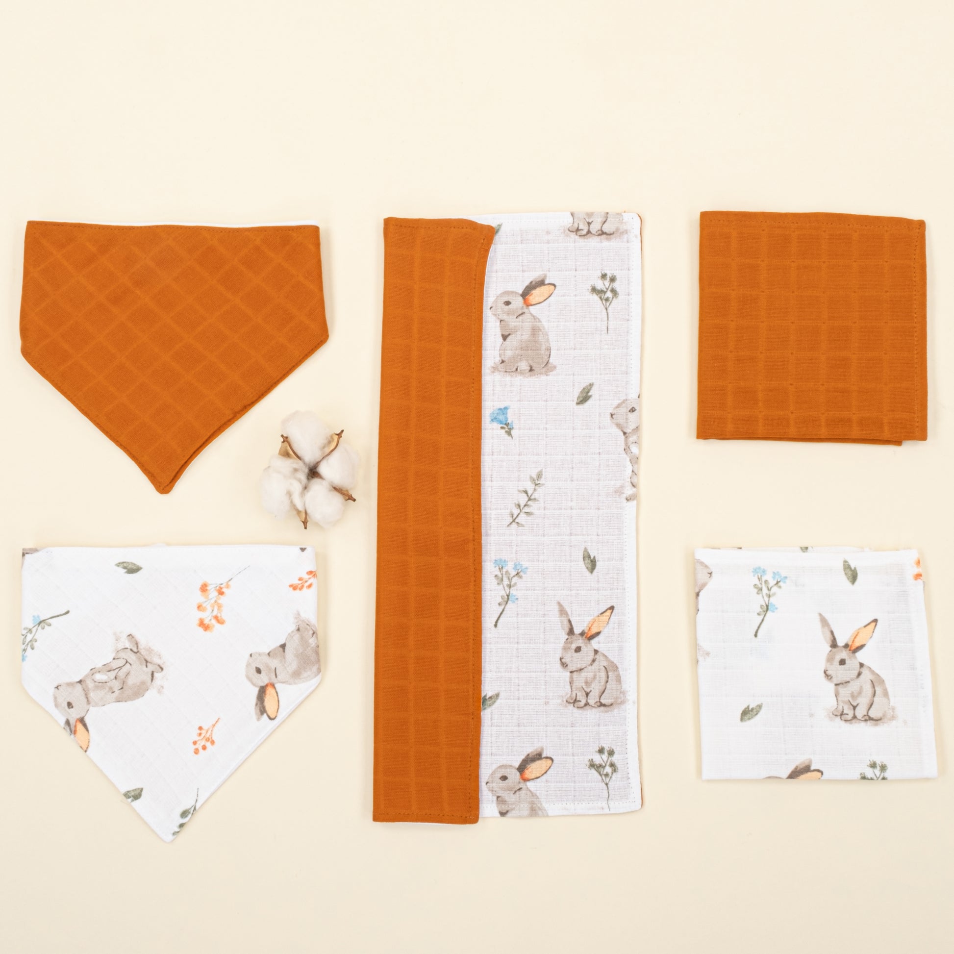 Önlük ve Mendil Seti - Çift Taraflı - Kiremit Muslin - Kahverengi Tavşan