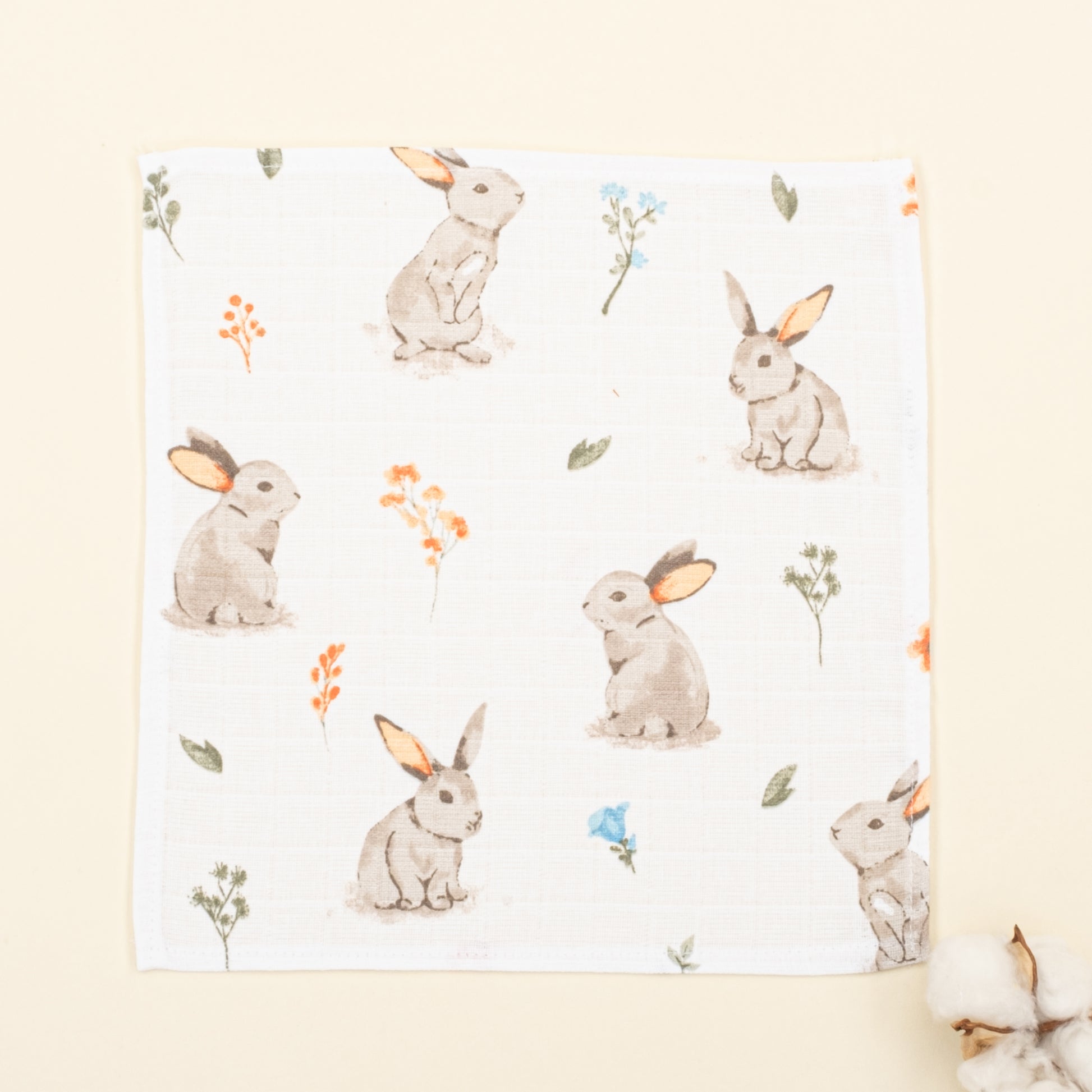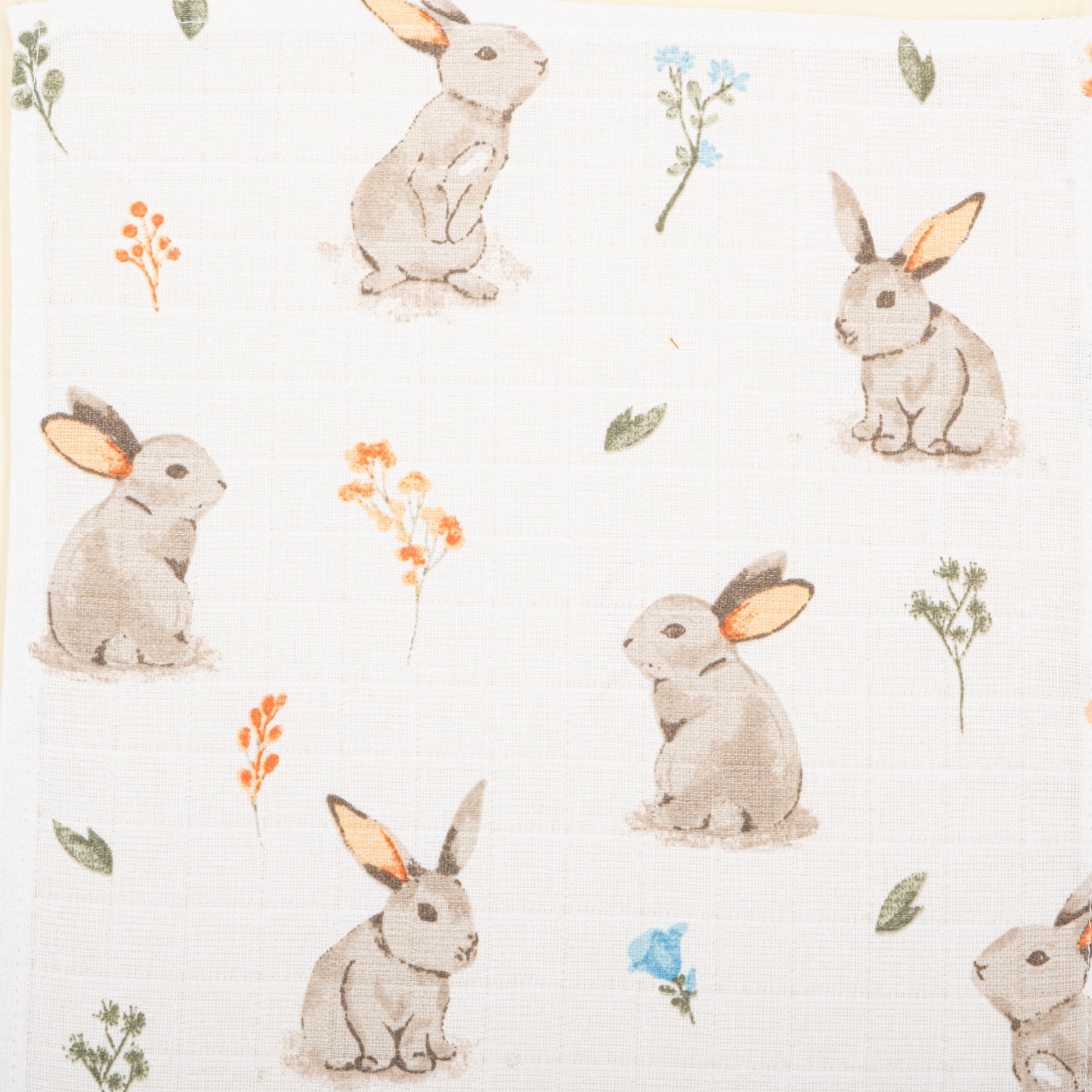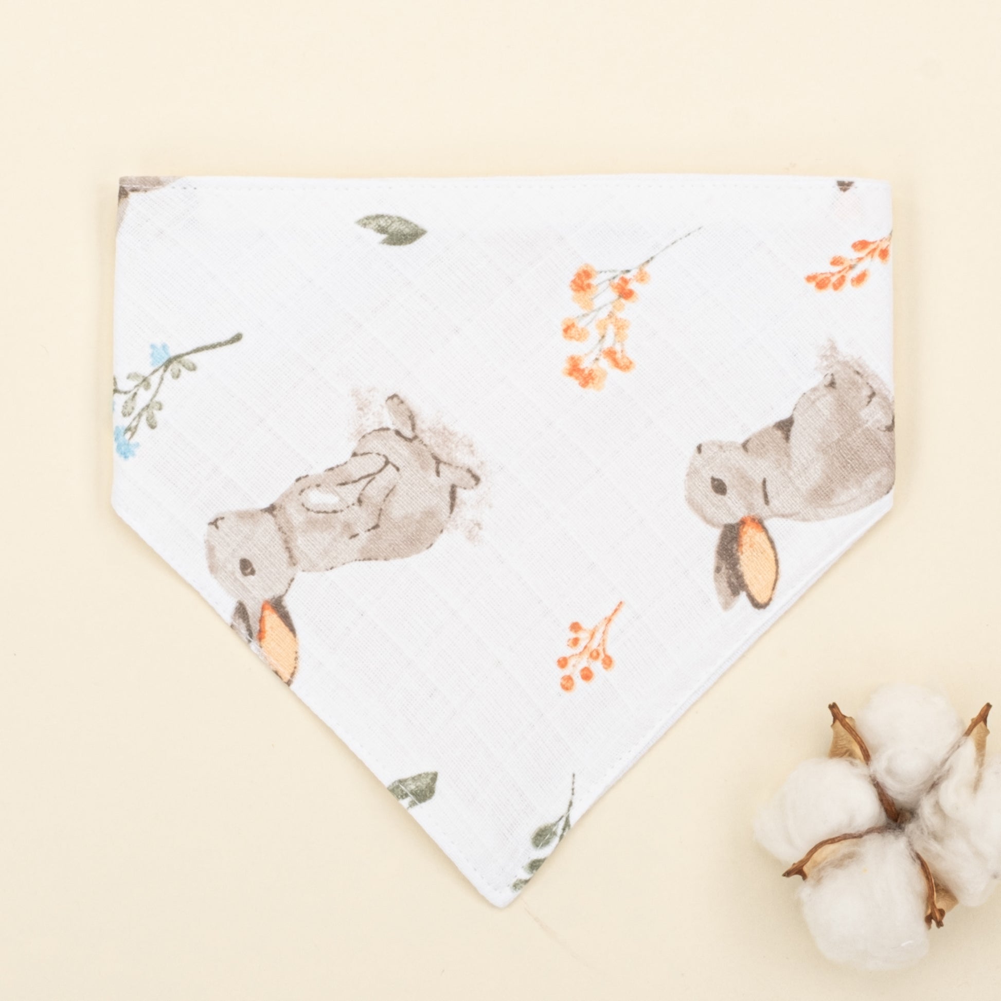 Önlük ve Mendil Seti - Çift Taraflı - Kiremit Muslin - Kahverengi Tavşan