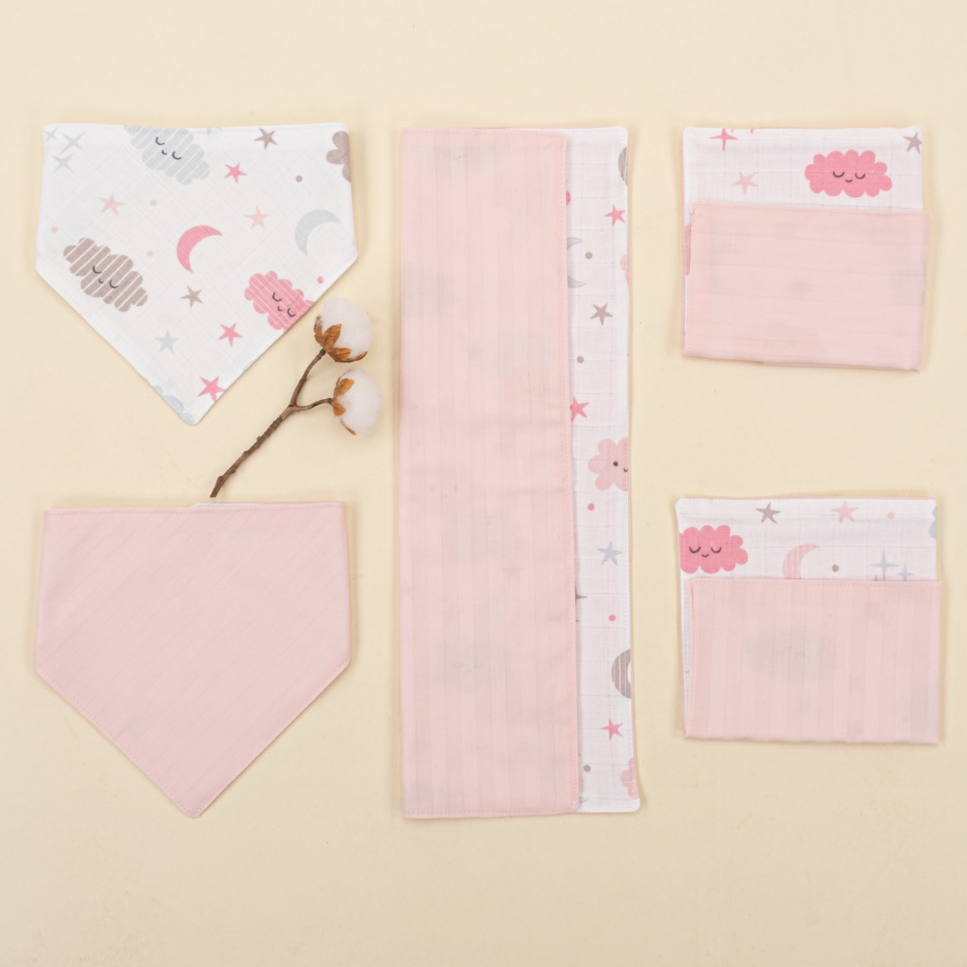 Önlük ve Mendil Seti - Çift Taraflı - Pembe Saten - Pembe Bulut