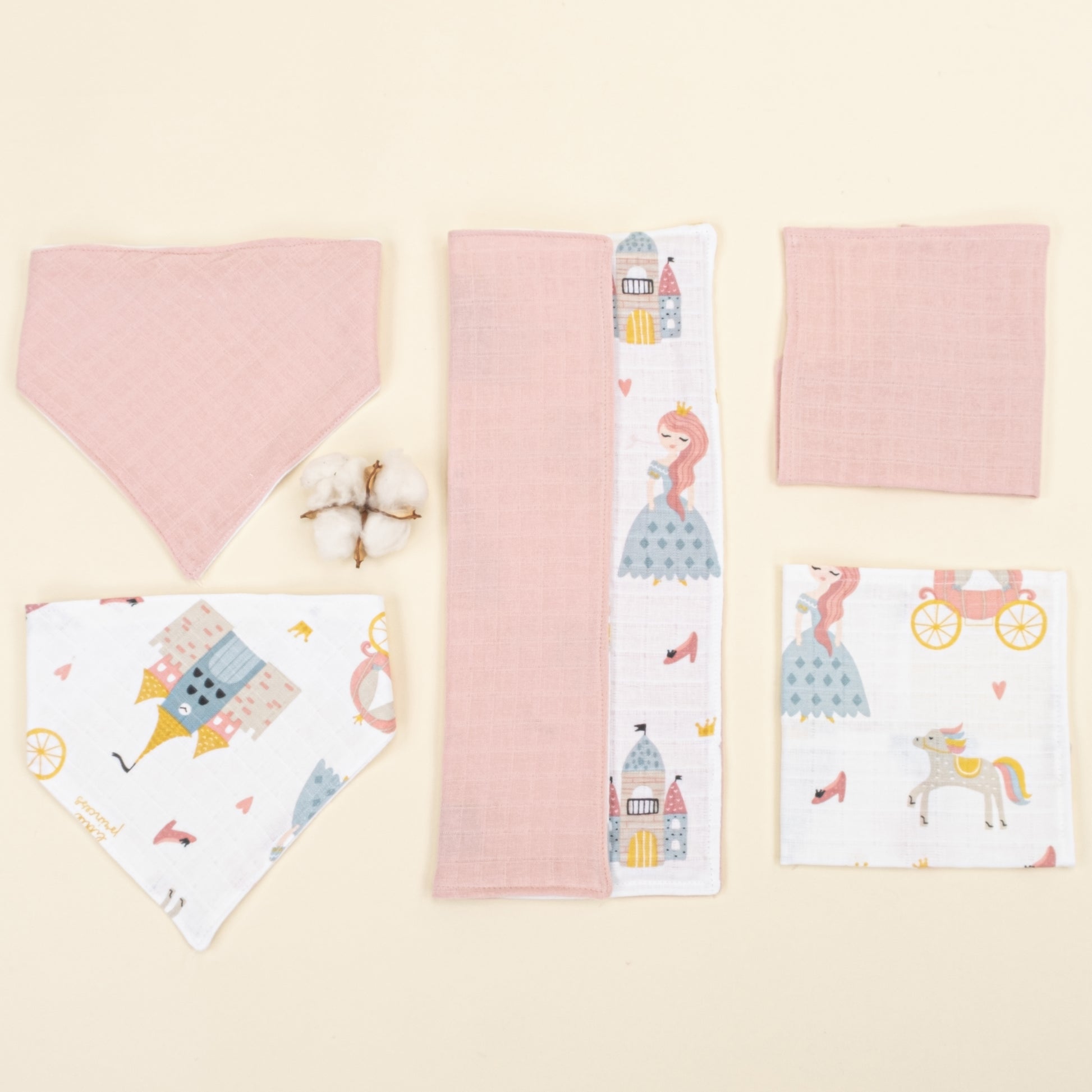 Önlük ve Mendil Seti - Çift Taraflı - Pudra Muslin - Sindirella