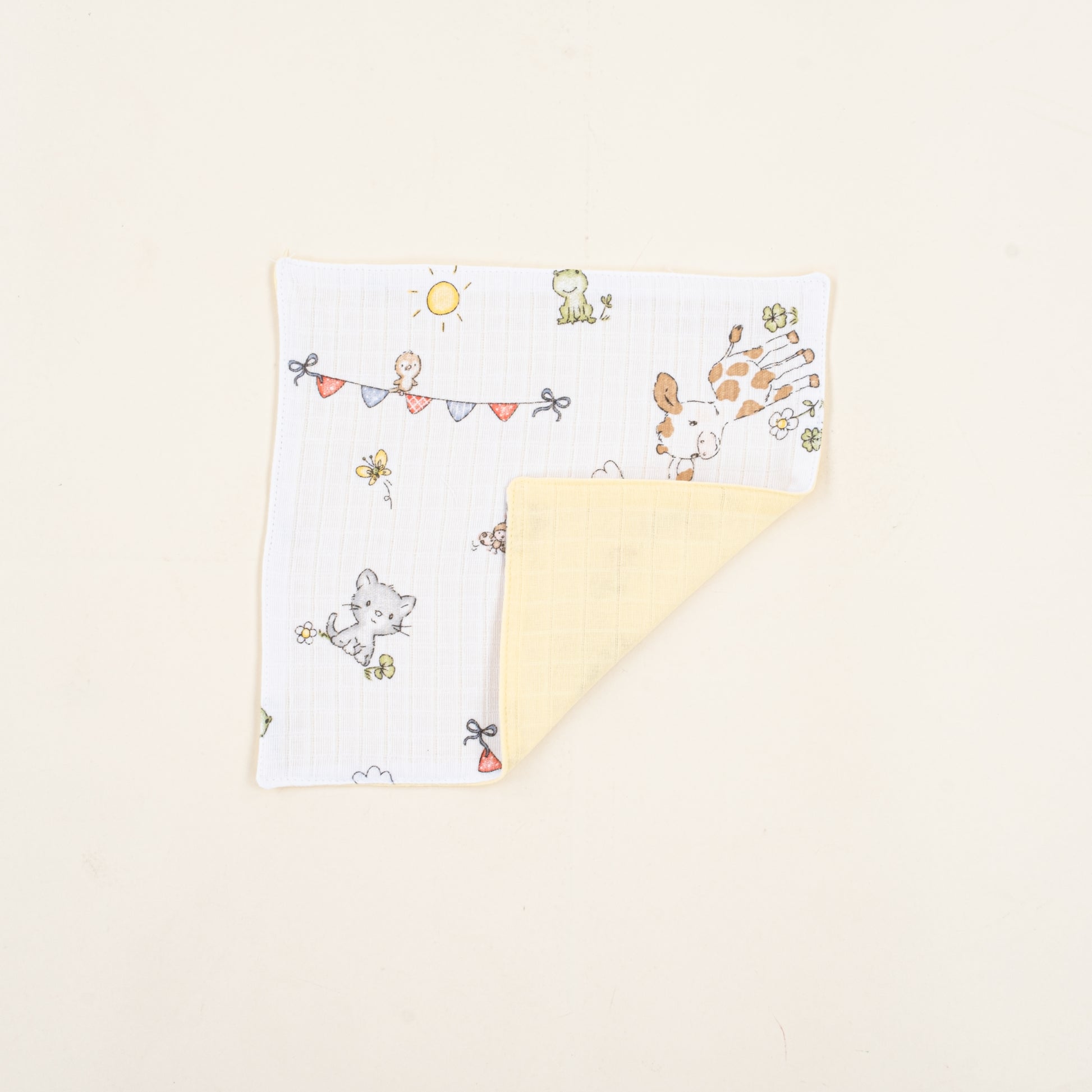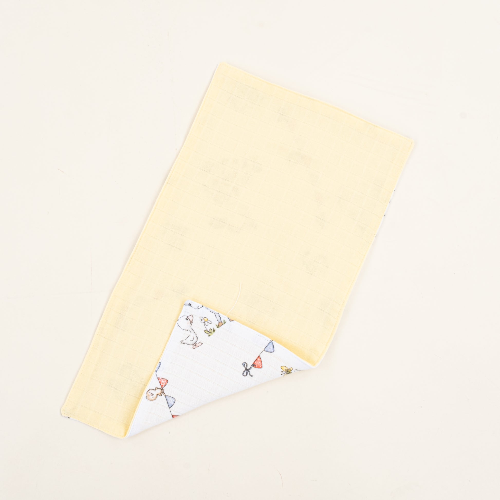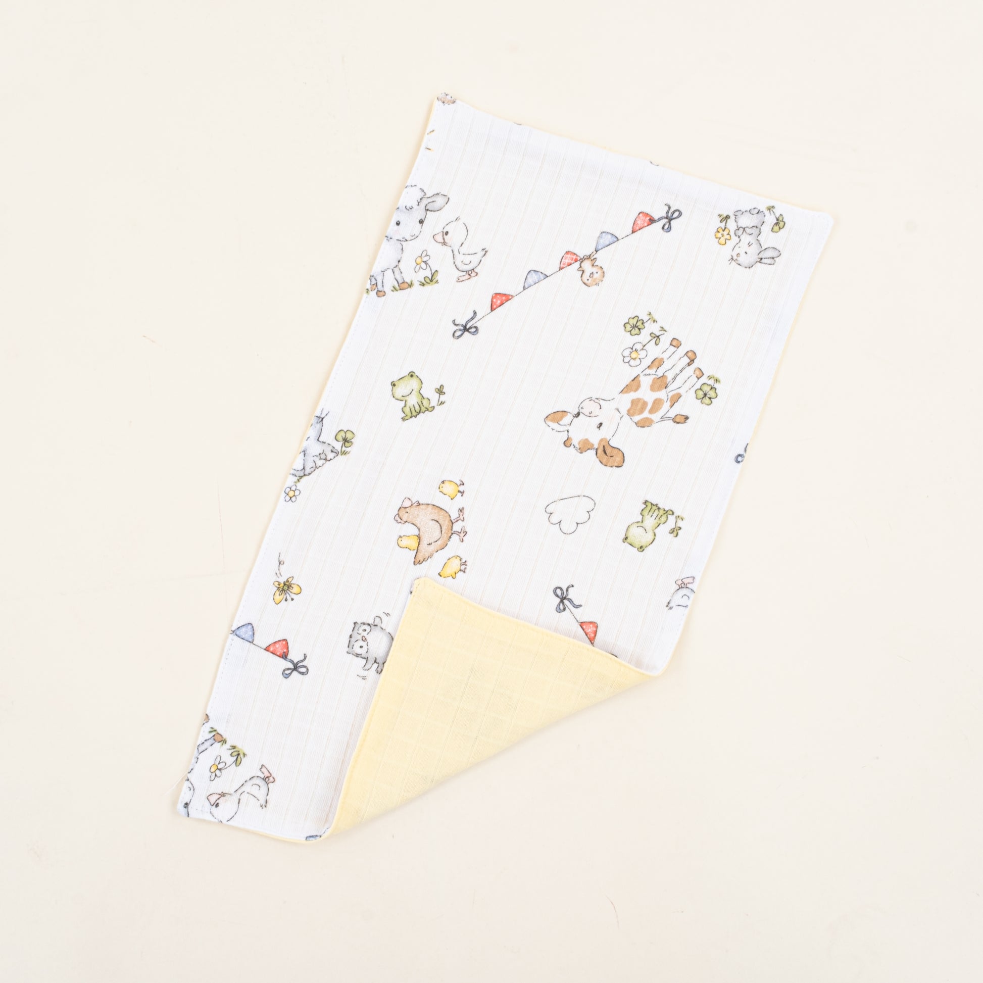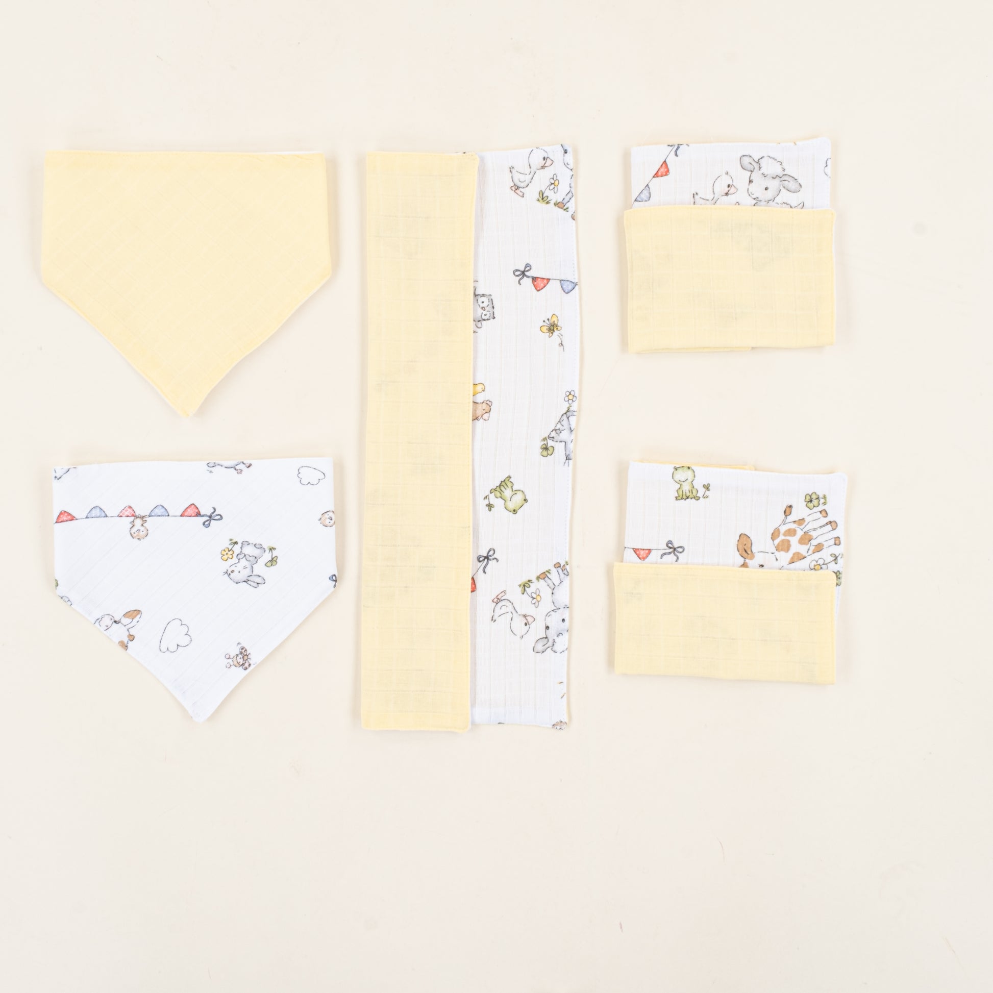 Önlük ve Mendil Seti - Çift Taraflı - Sarı Muslin - Çiftlik Hayvanları
