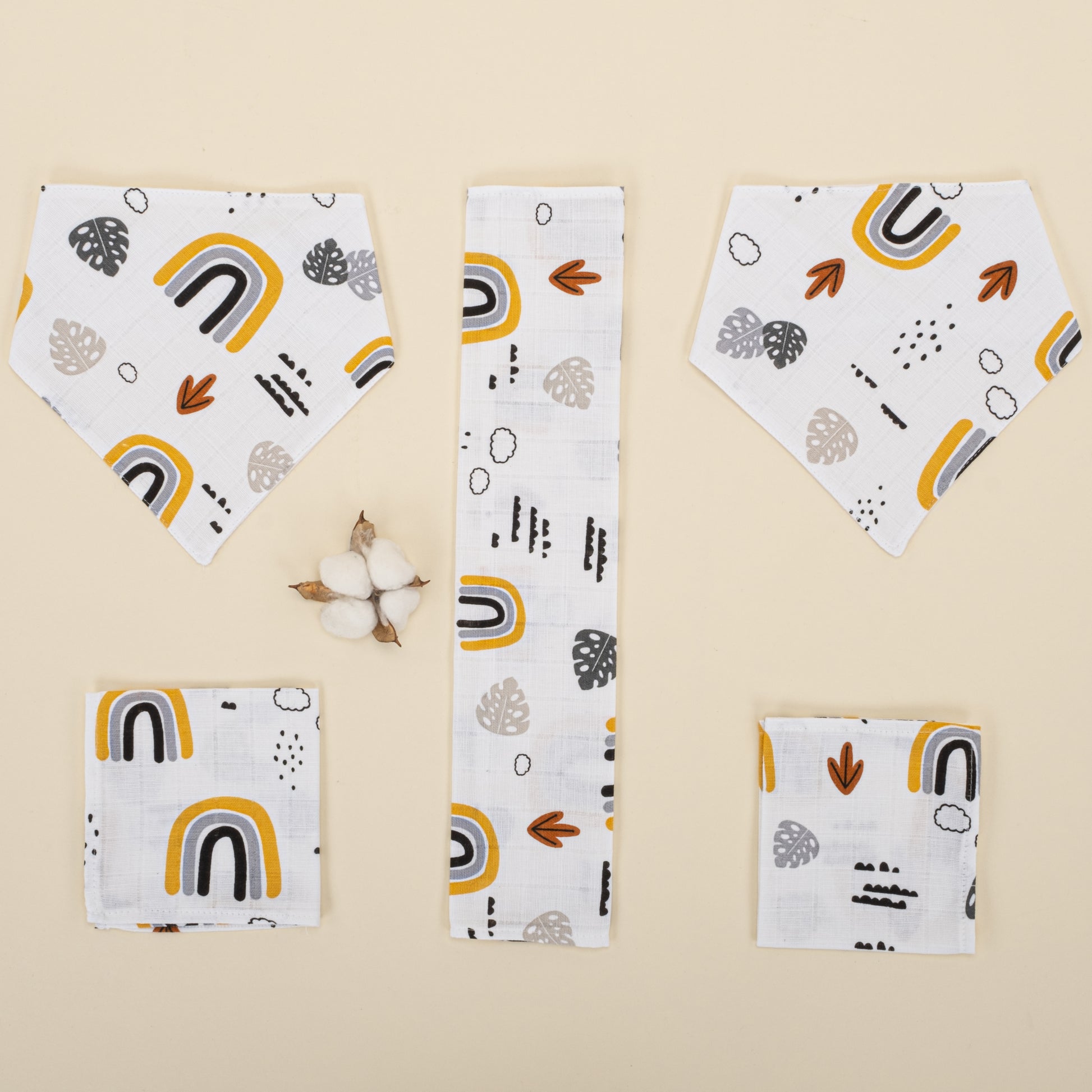 Önlük ve Mendil Seti - Tek Taraflı - Hardal Gökkuşağı