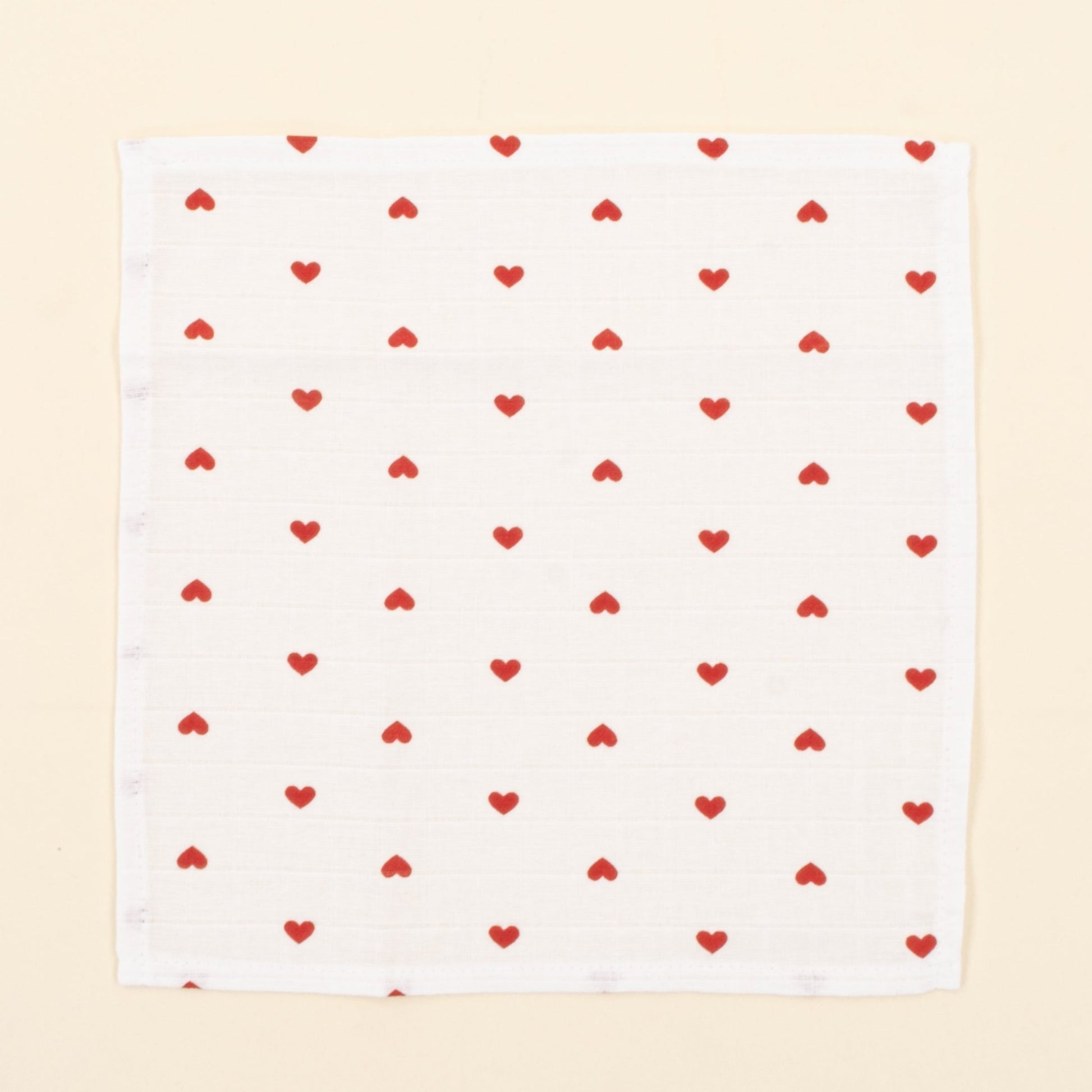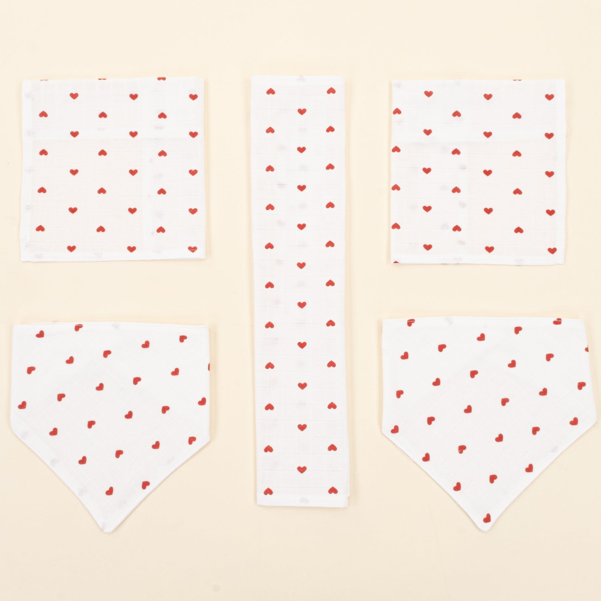 Önlük ve Mendil Seti - Tek Taraflı - Kırmızı Kalp
