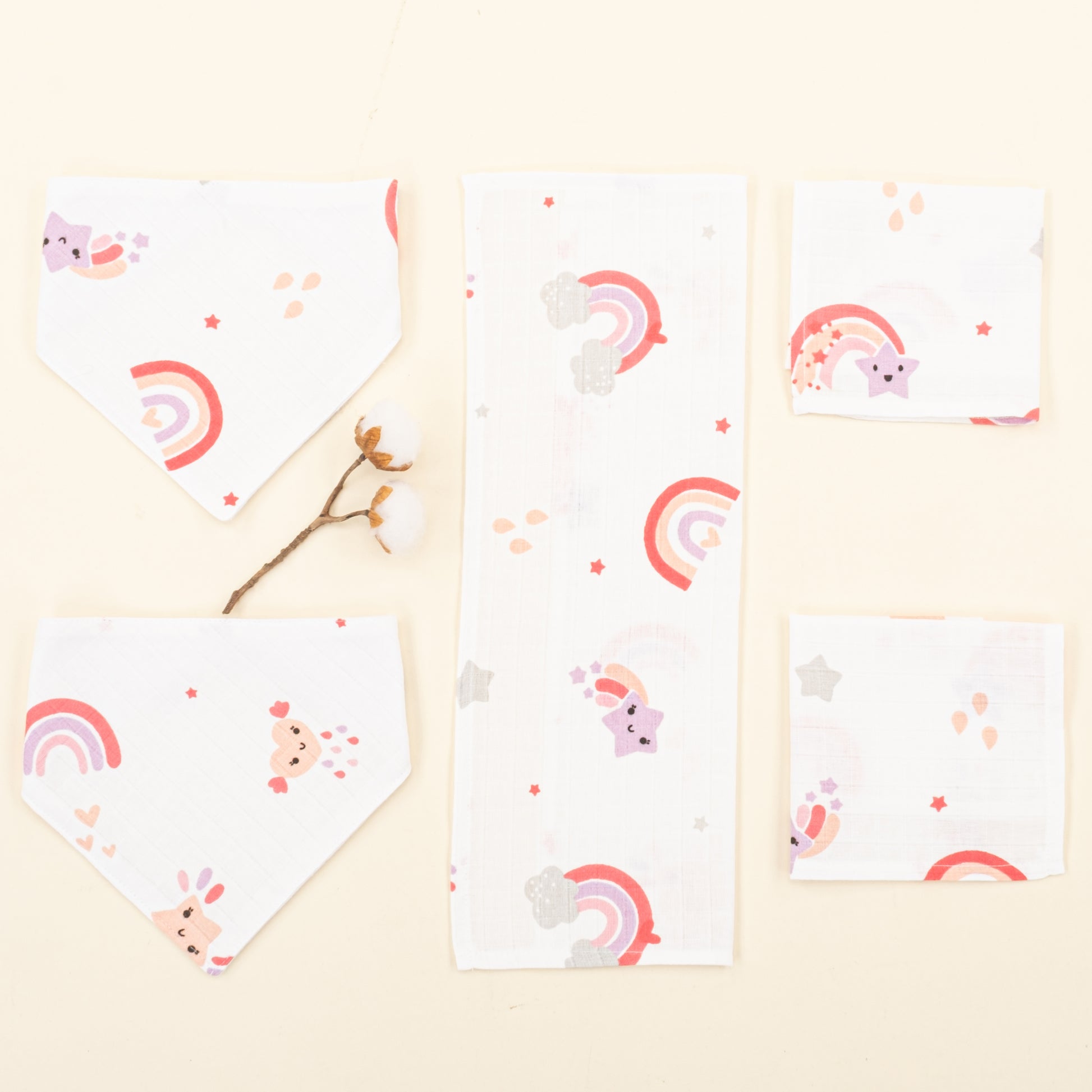 Önlük ve Mendil Seti - Tek Taraflı - Pembe Gökkuşağı