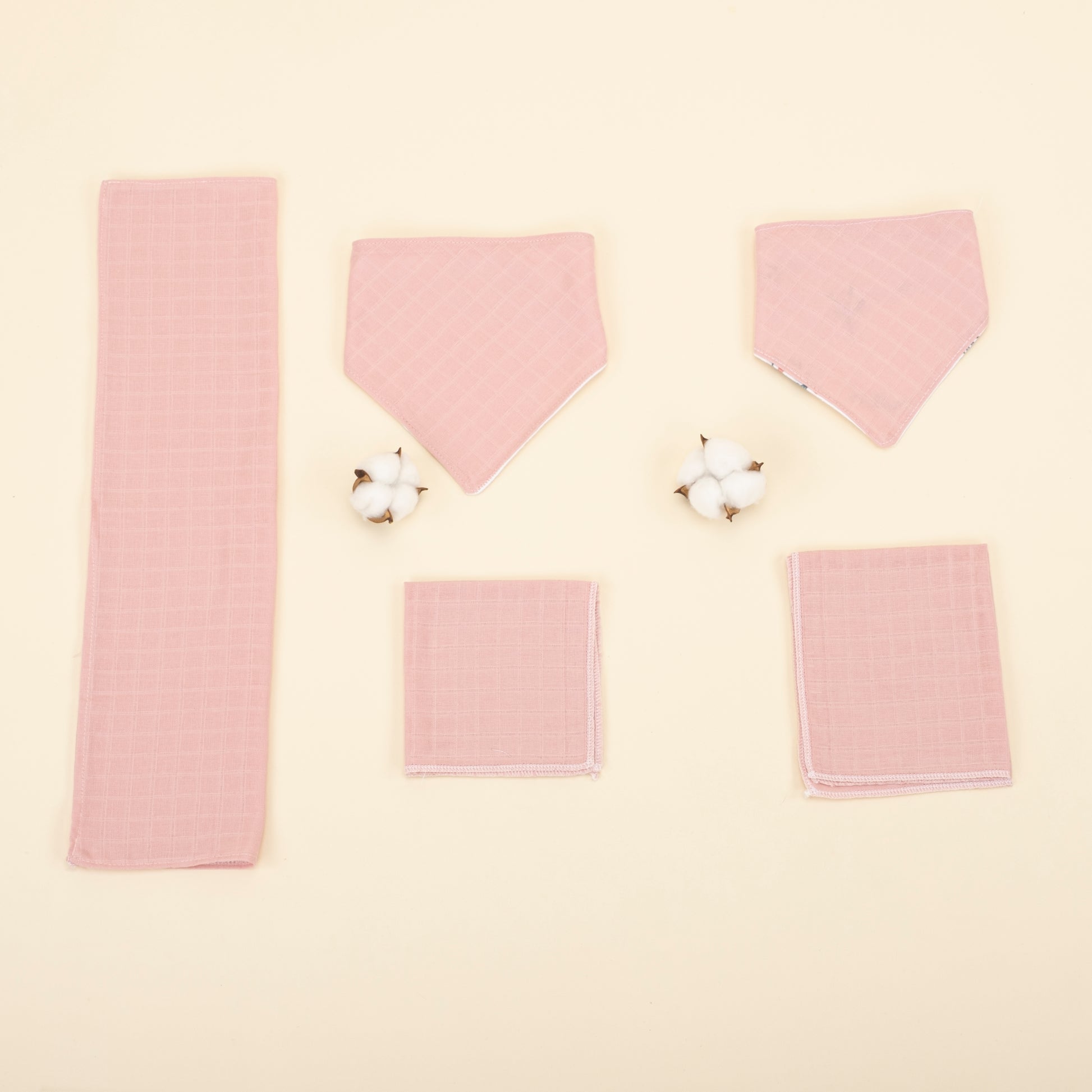 Önlük ve Mendil Seti - Tek Taraflı - Pembe Muslin