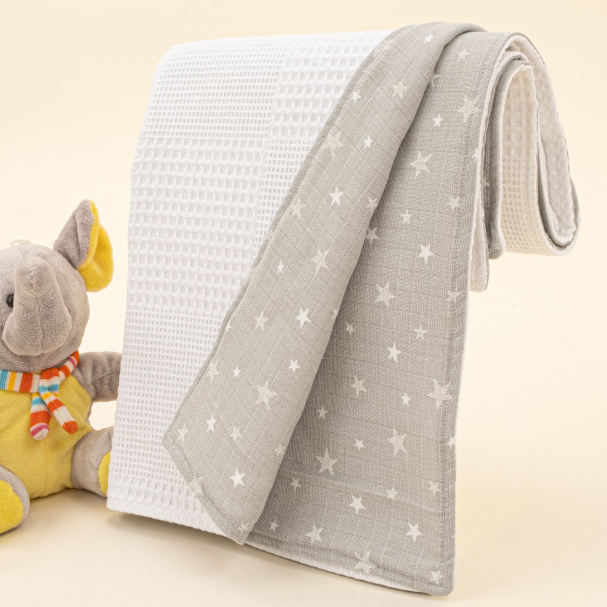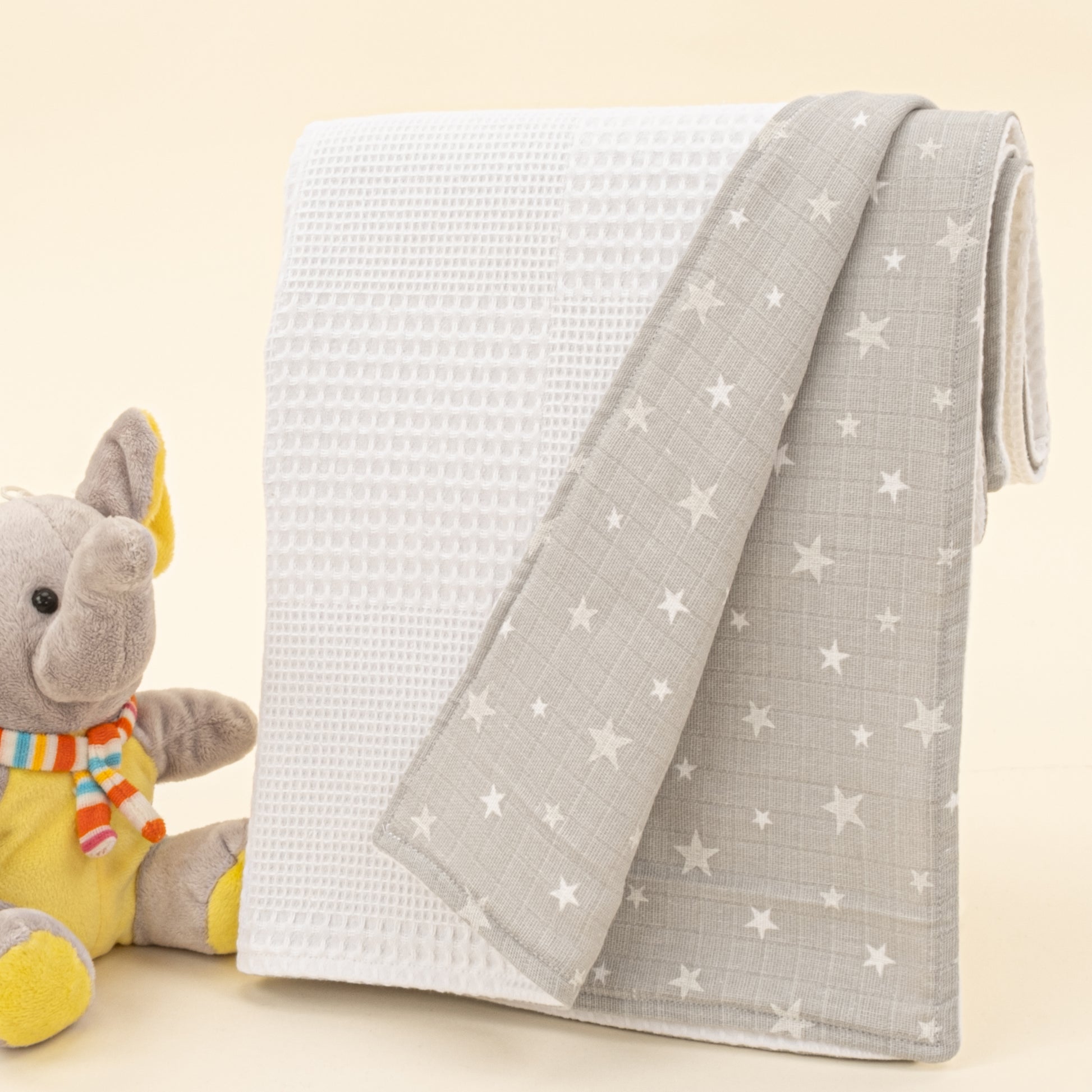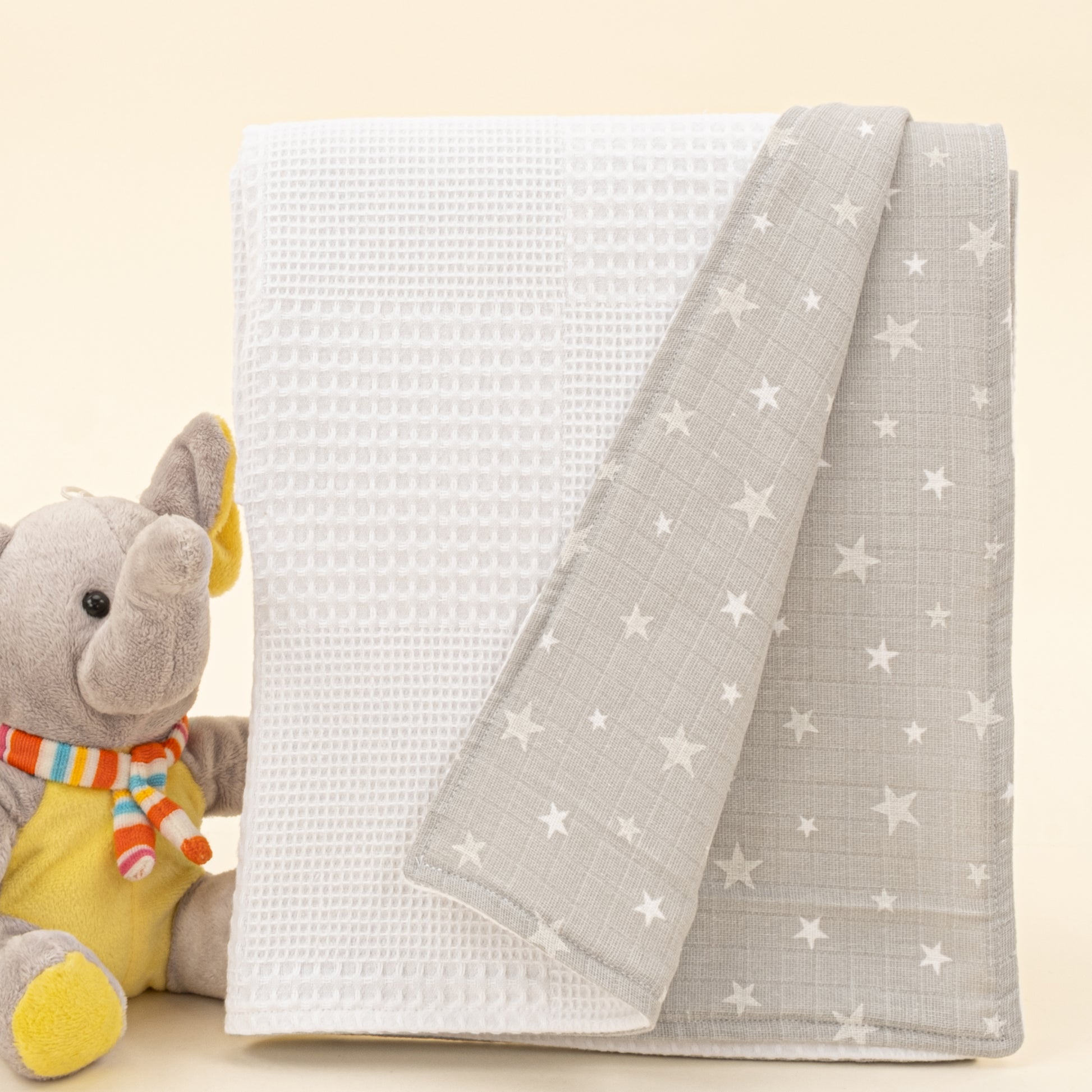 Pike Battaniye - Çift Taraflı - Beyaz Waffle - Gri Minik Yıldızlar