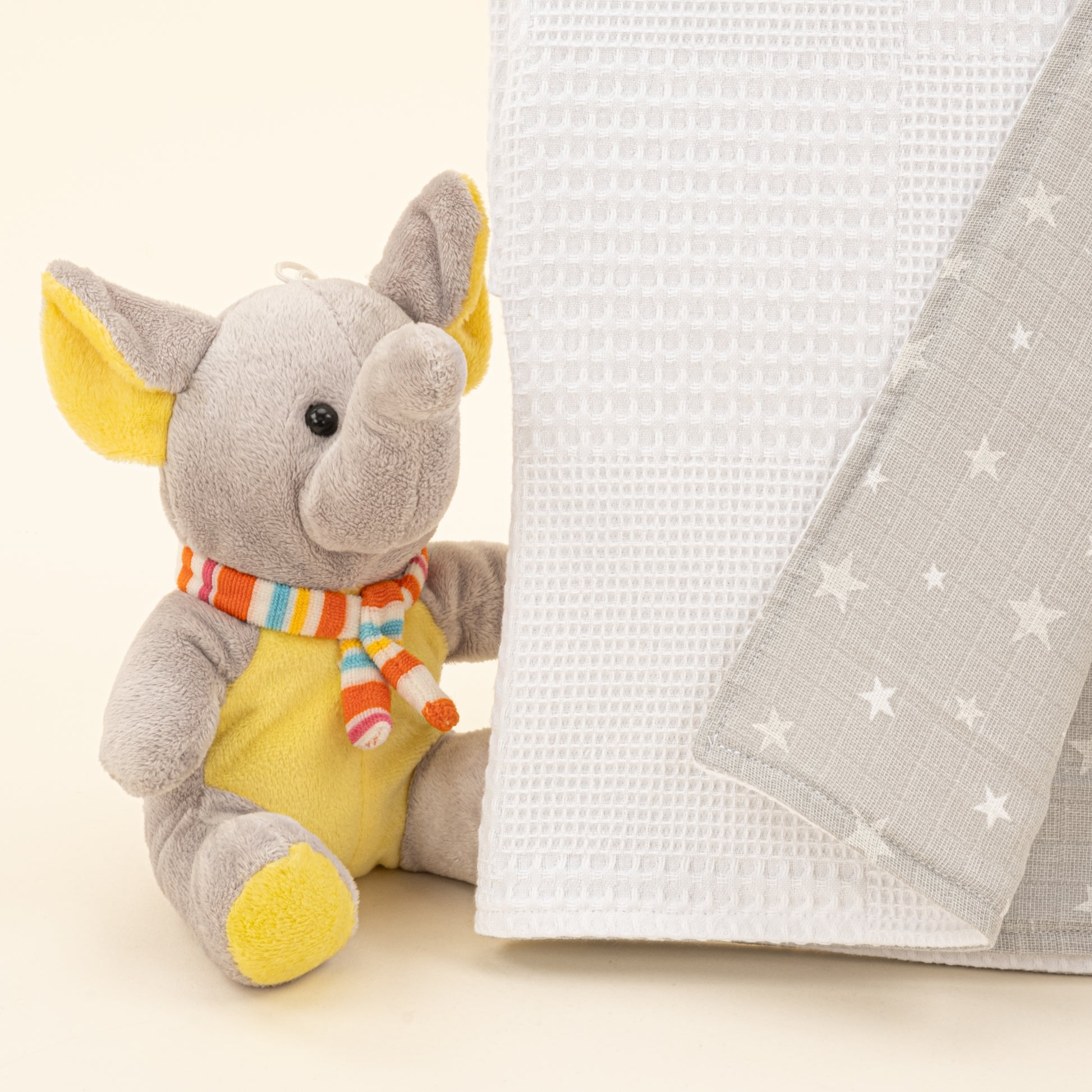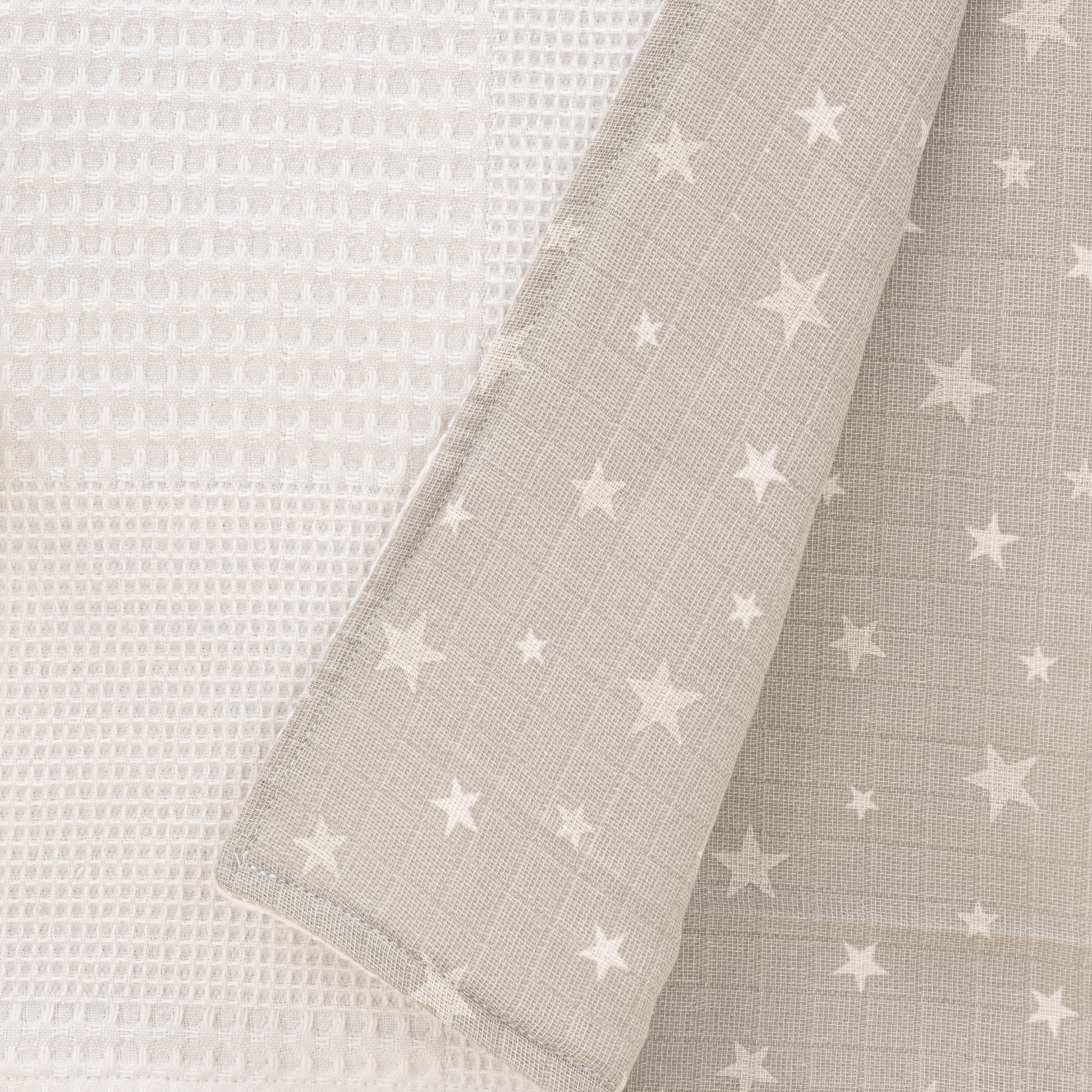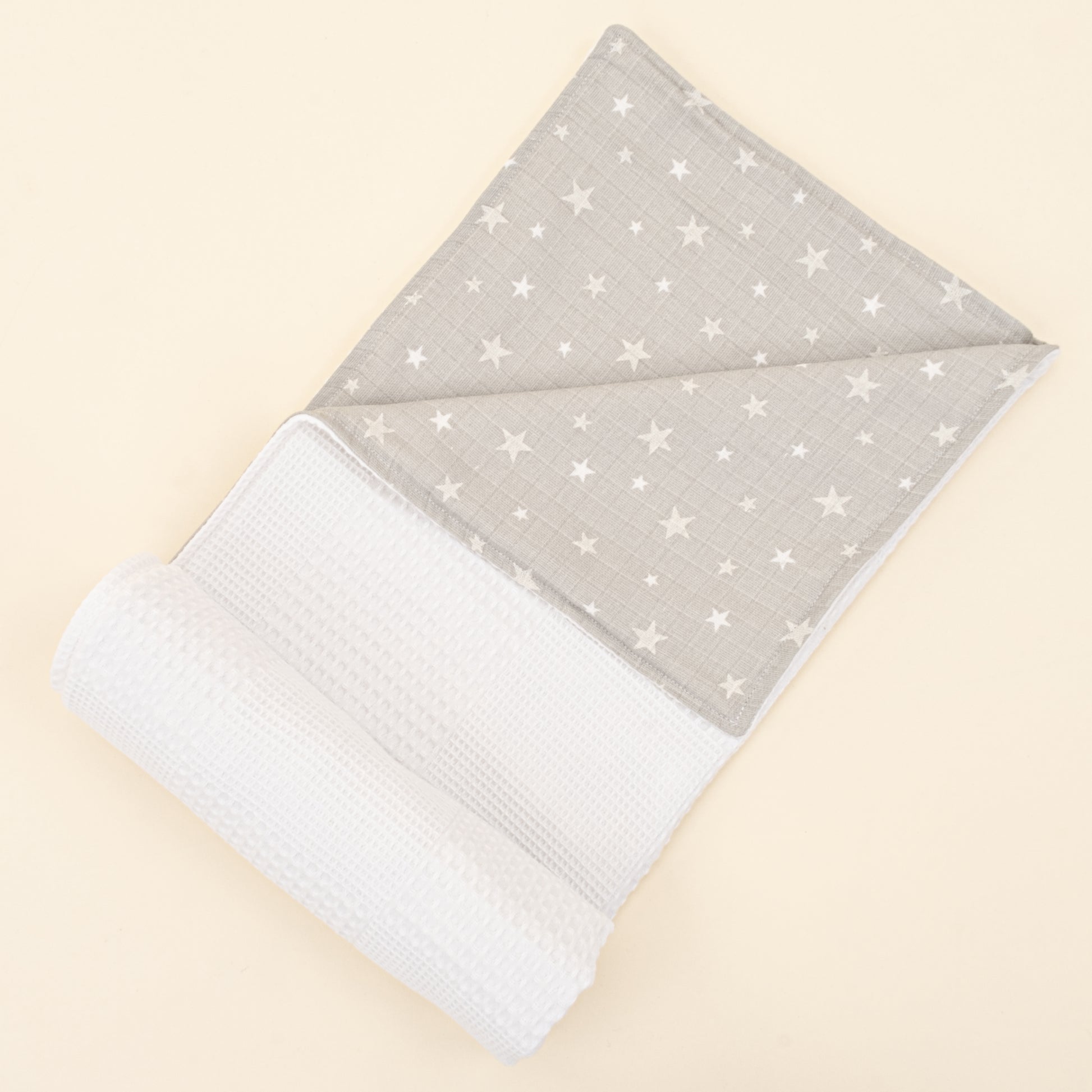Pike Battaniye - Çift Taraflı - Beyaz Waffle - Gri Minik Yıldızlar