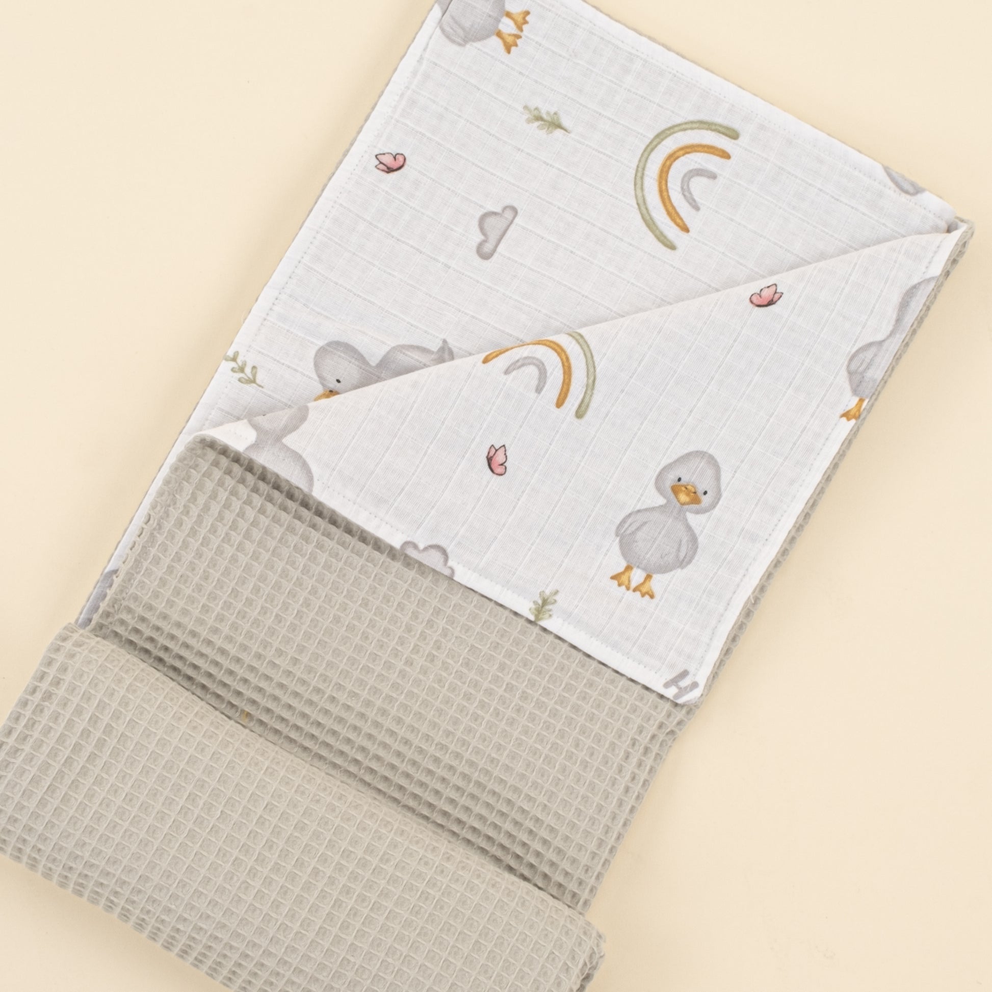 Müslin kumaşlarımız, pamuk içeriği ve yumuşacık dokusu ile bebeklerin narin cildi için en uygun kumaş türlerindendir. Bu sebeple bebek örtüsü kese, omuz örtüsü ve ağız mendili gibi birçok alanda severek kullanılır. Dokuma şeklinde gelen boşluklar sayesinde hava alan bu kumaş terletmeden sıcak tutar ve yıkandıkça yumuşaklık hissiyatı artar. Musliniko Müslinleri %100 Pamuk içerikli ve sertifikalıdır. Desenleri ve kumaşı sağlığa zararlı hiçbir madde içermez. Bebek sağlığına uygun dokunmuş ve dikilmiş ürünlerdir.