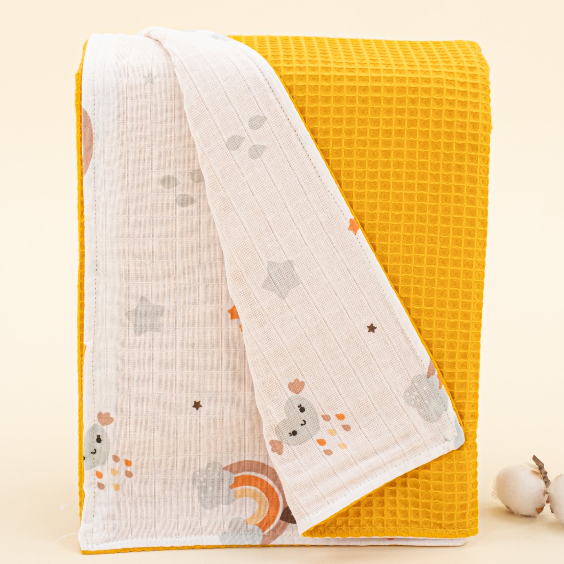Çift Taraflı Kullanımı Olan Pike Battaniyelerimiz %100 Organik Pamuk Muslin Kumaştan Üretilmiştir.