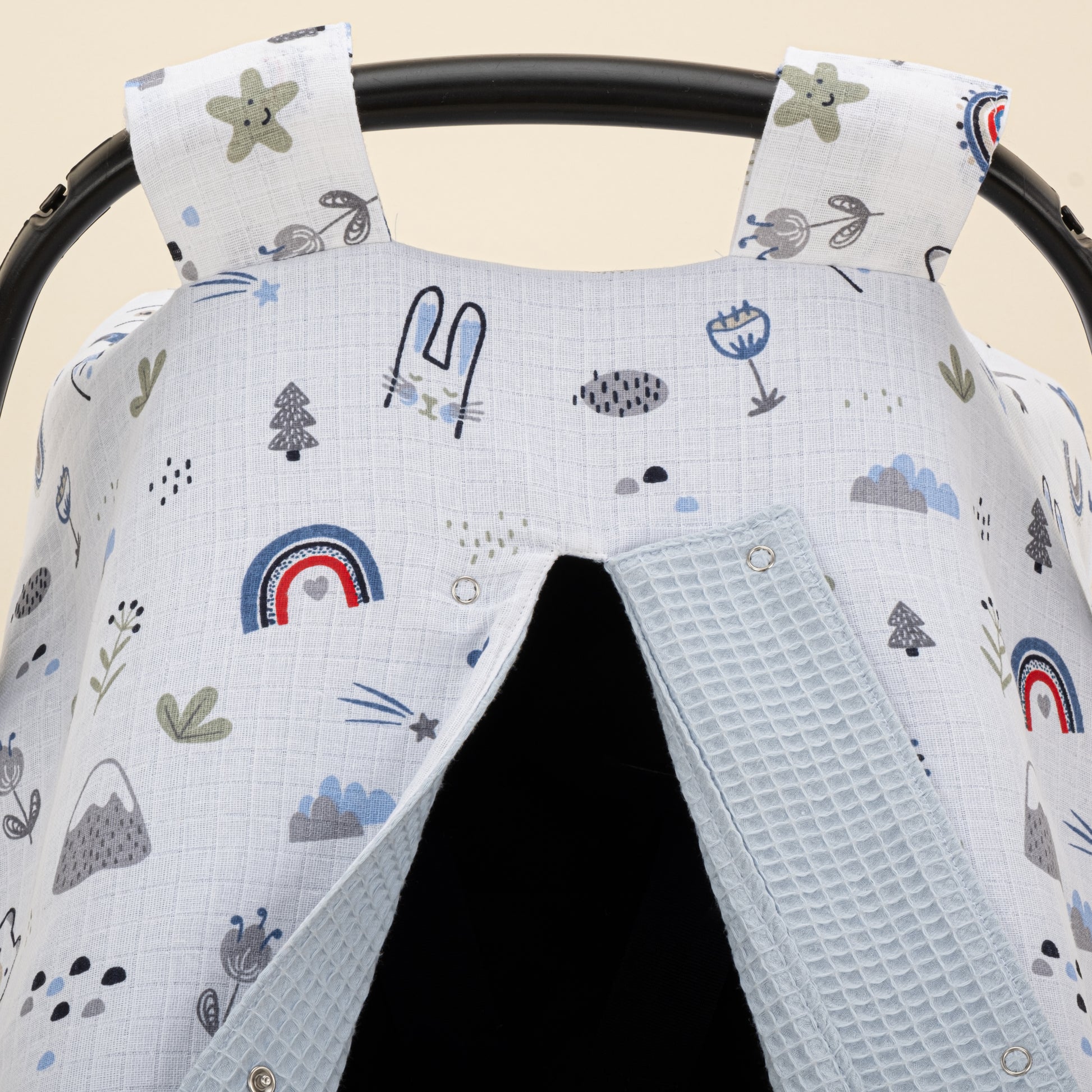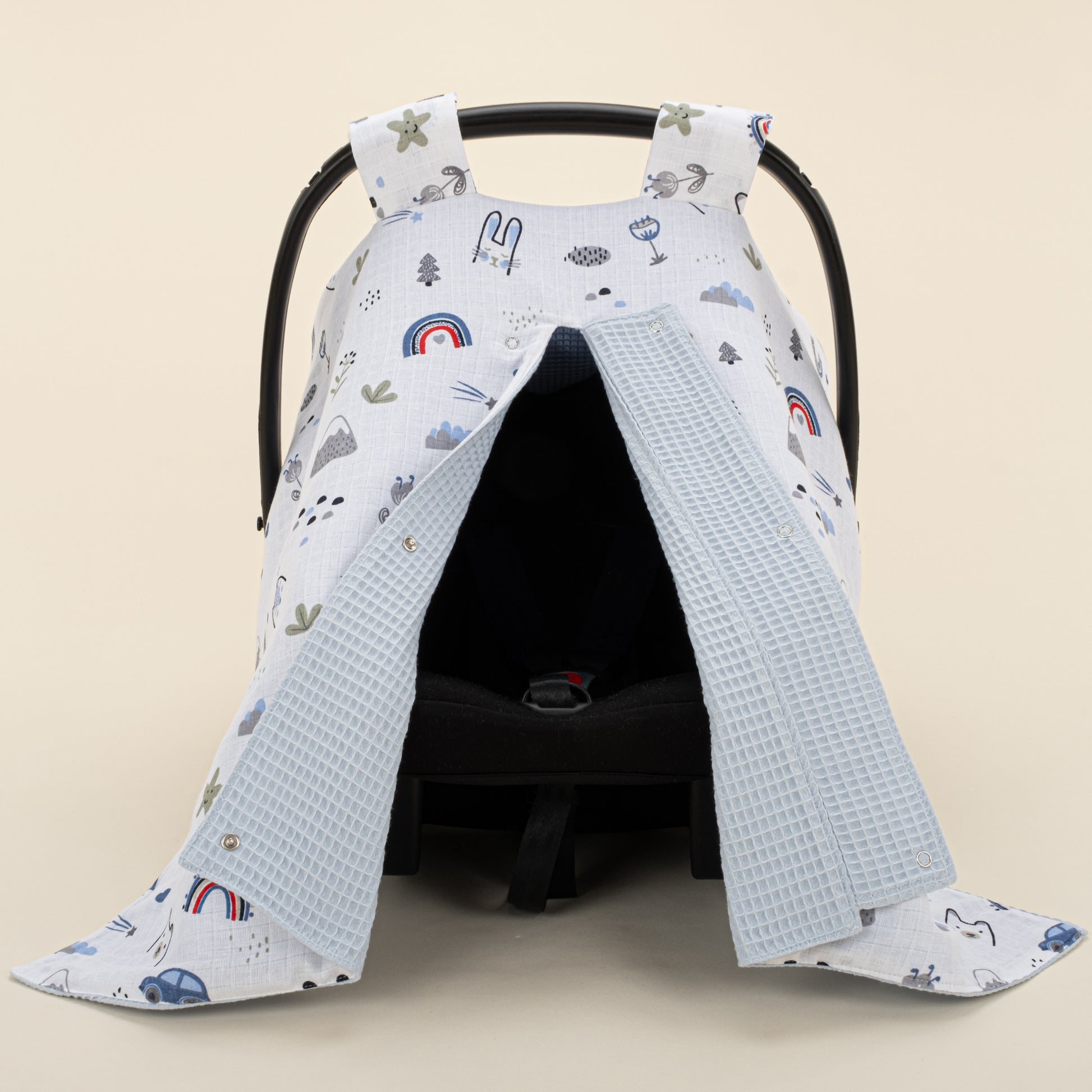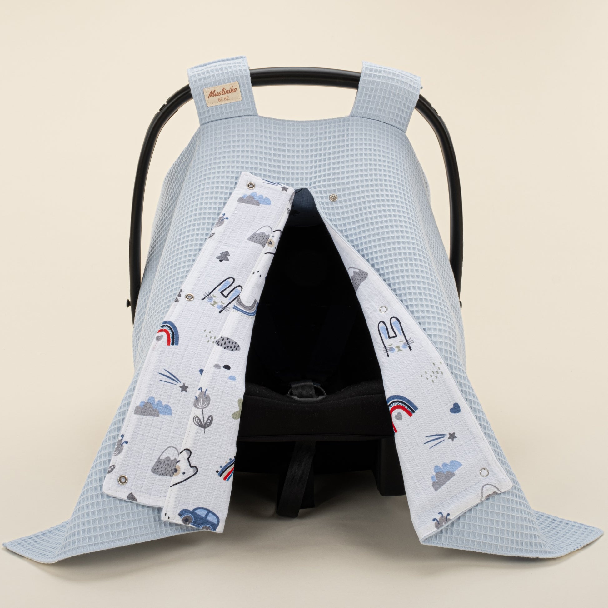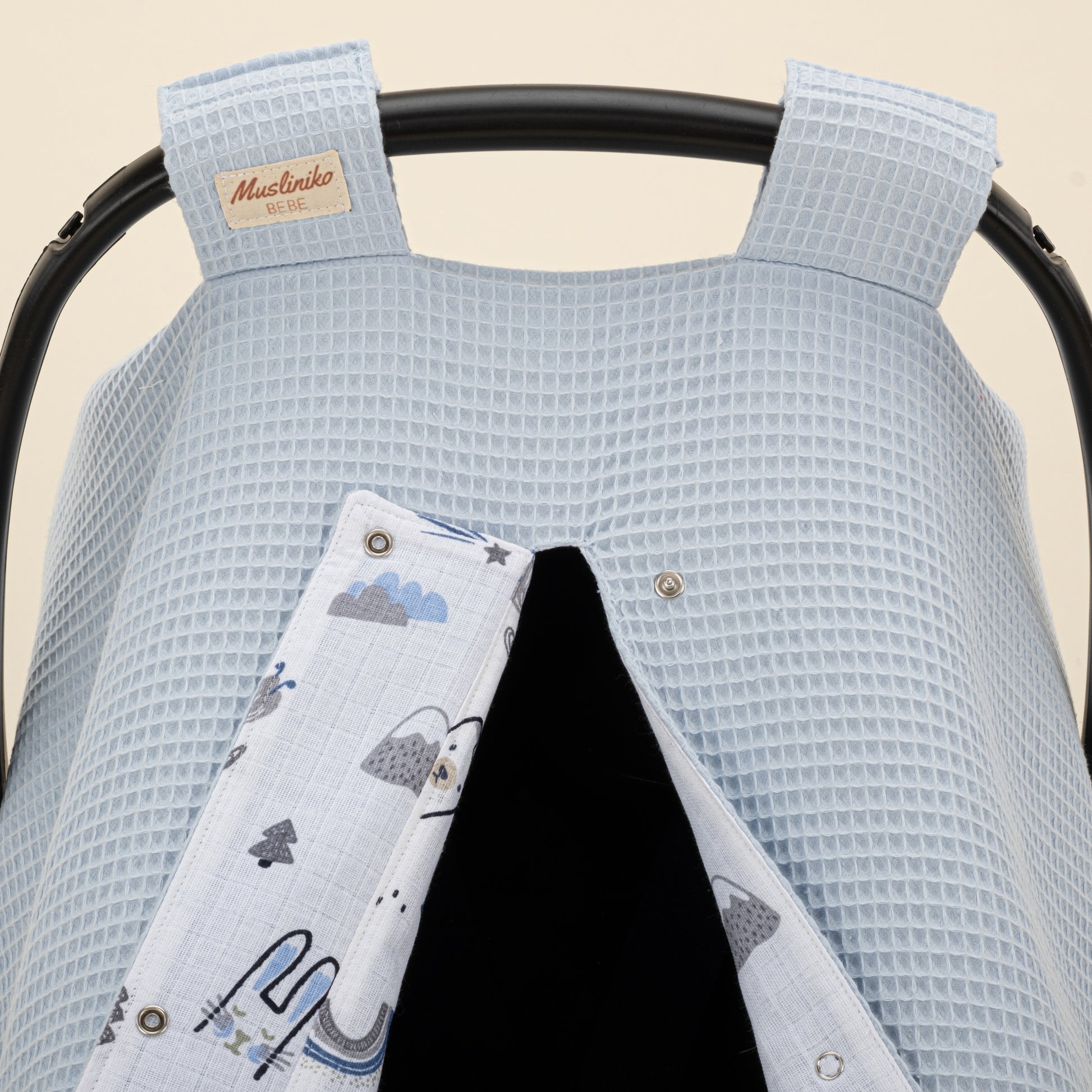 Puset Örtüsü - Çift Taraflı - Bebe Mavi Petek - Mavi Kedi