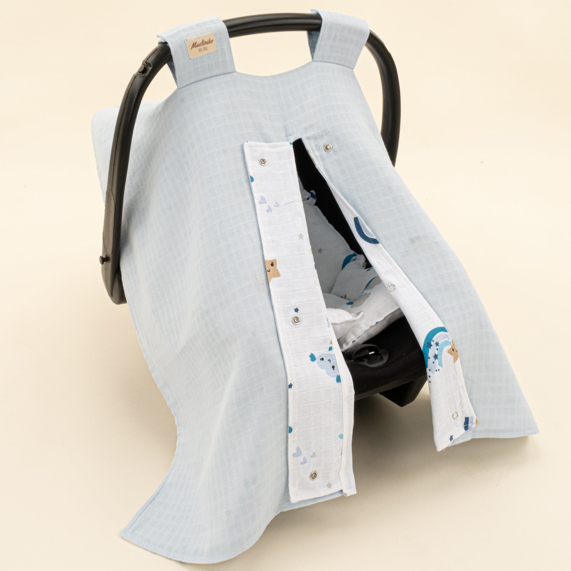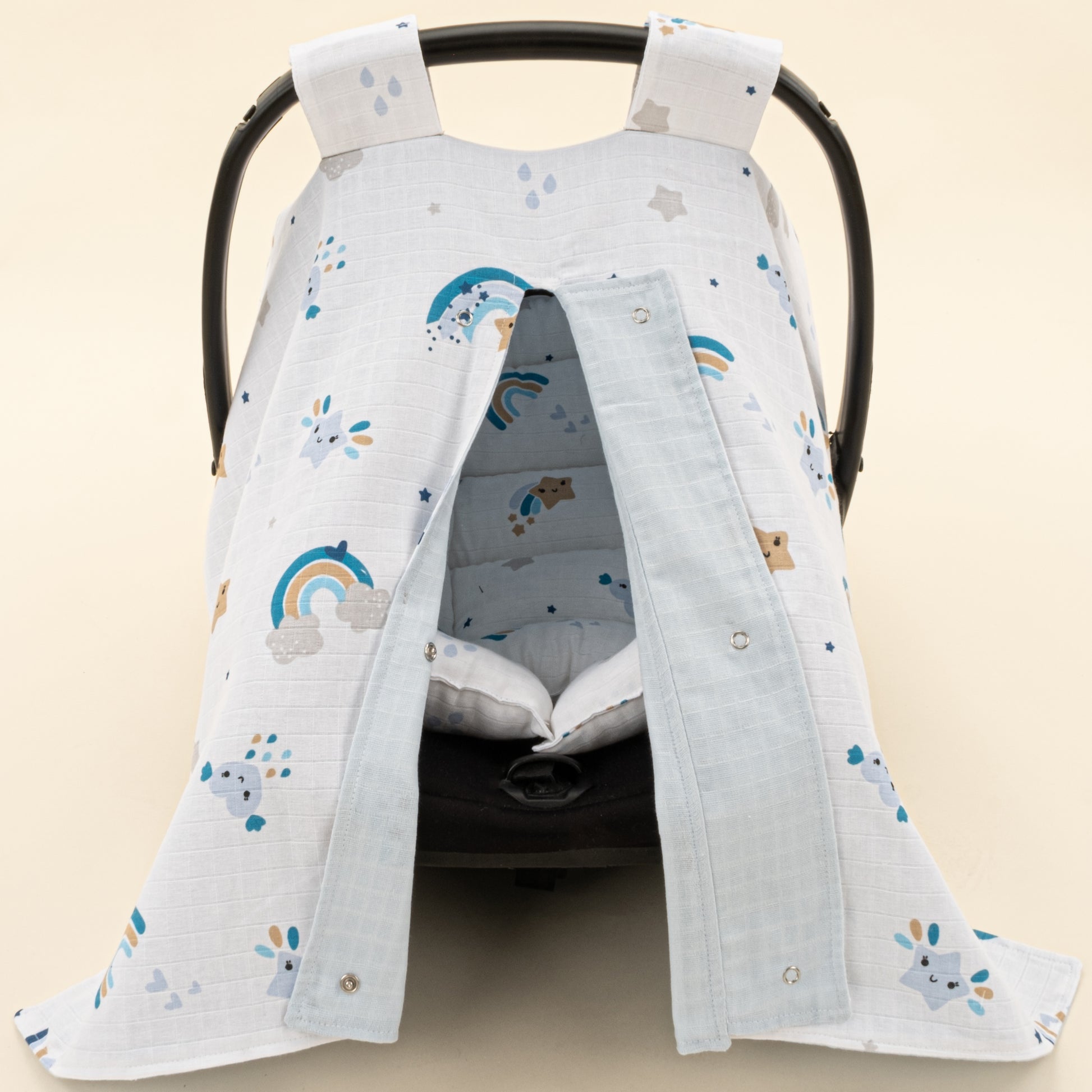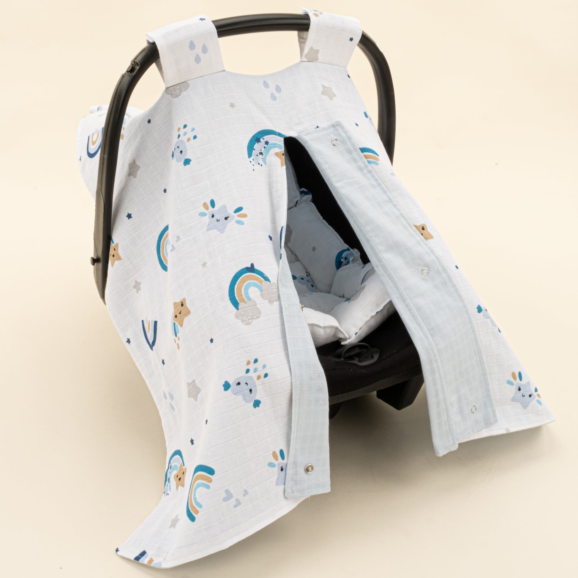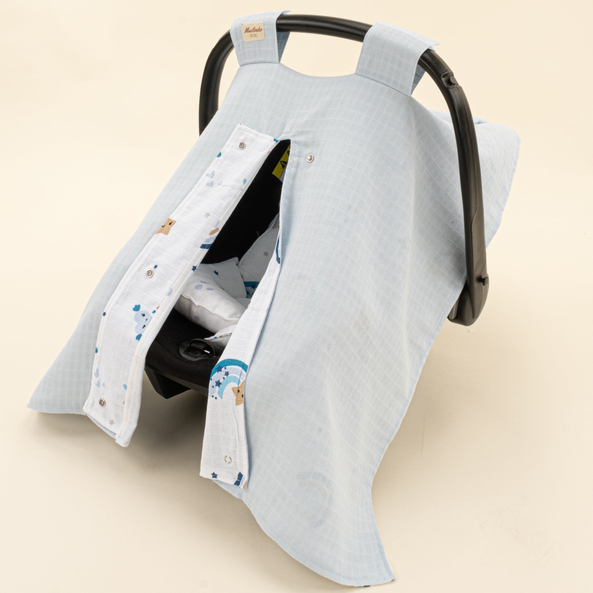 Puset Seti - Çift Taraflı - Bebe Mavisi Muslin - Mavi Gökkuşağı