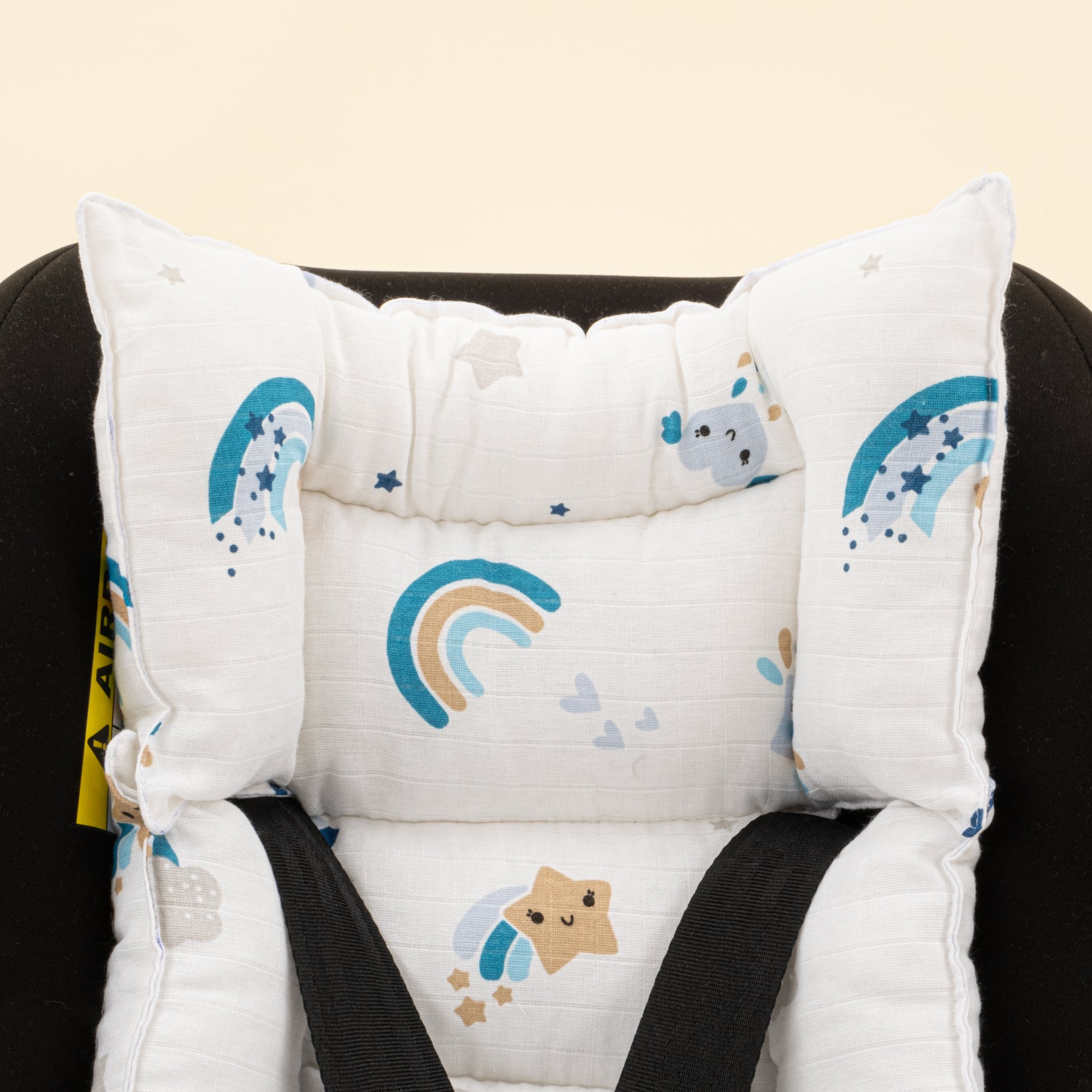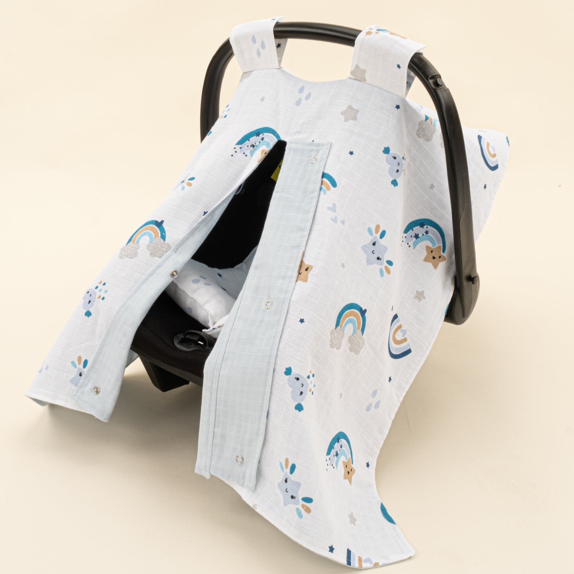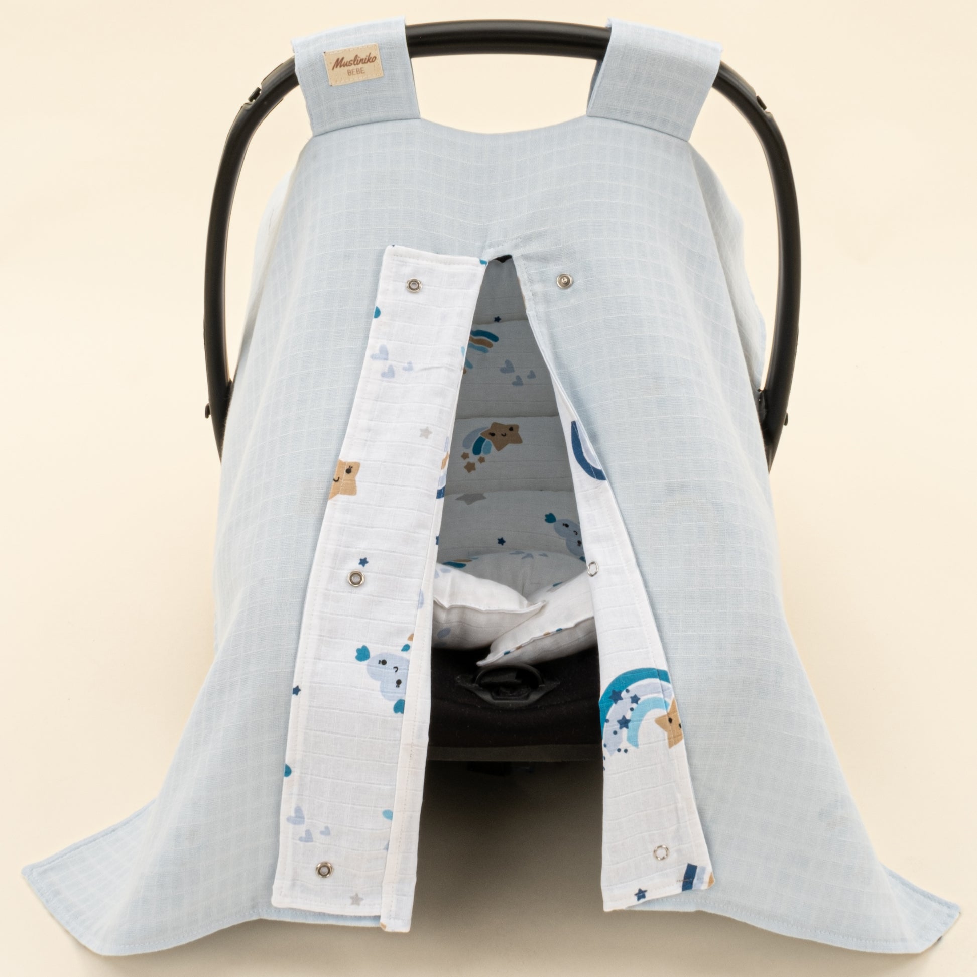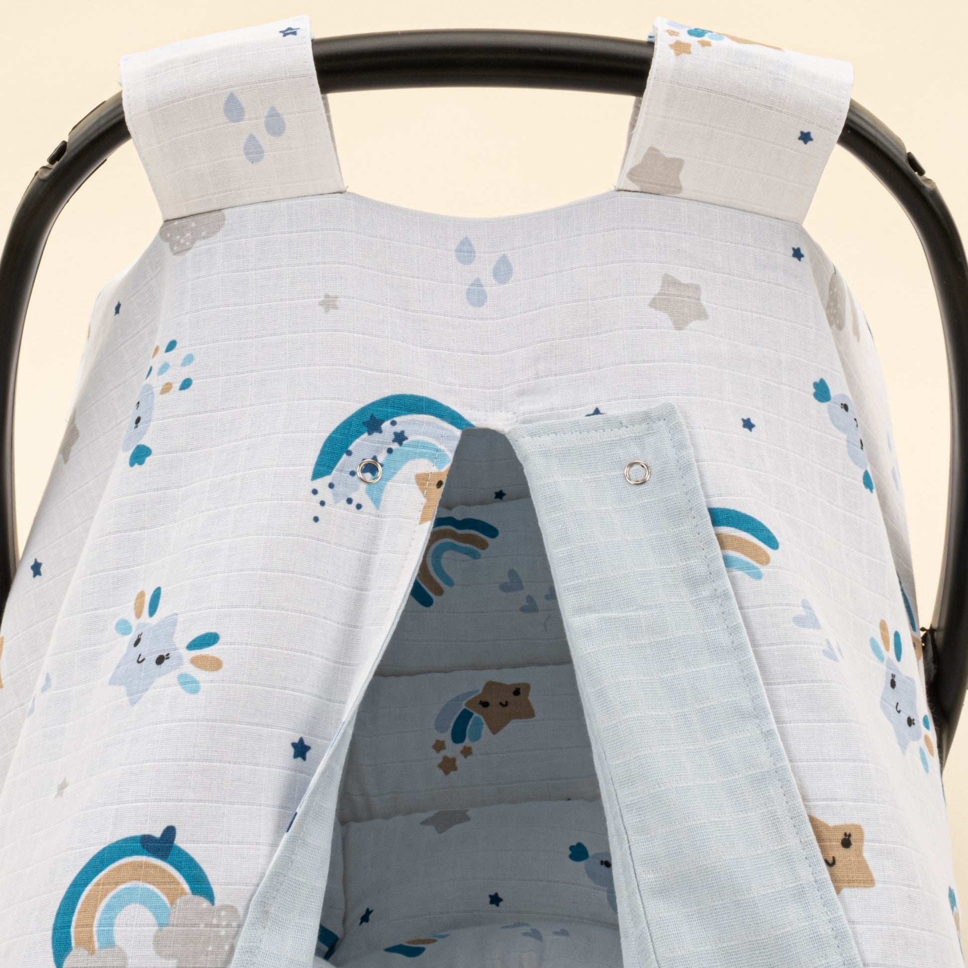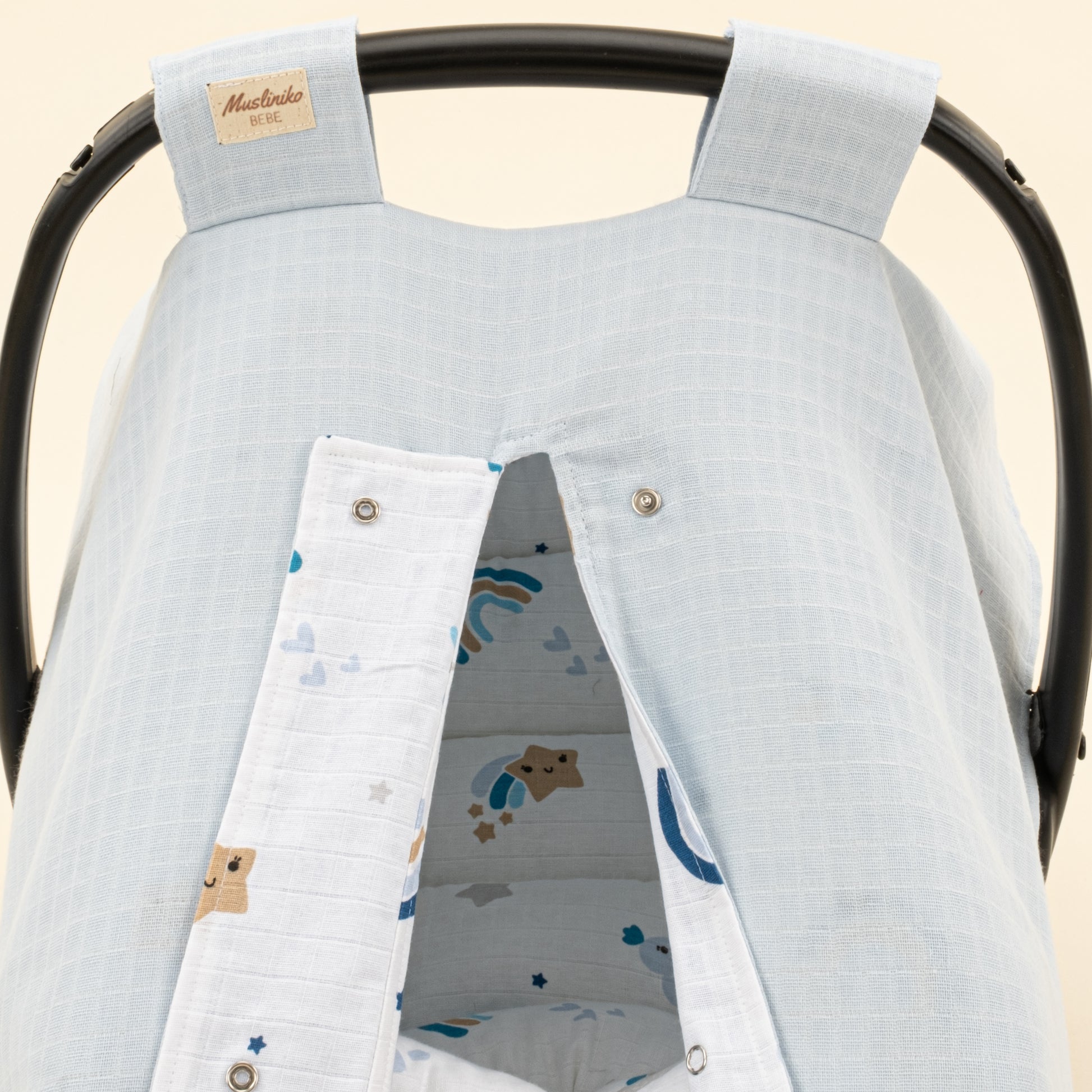 Puset Seti - Çift Taraflı - Bebe Mavisi Muslin - Mavi Gökkuşağı