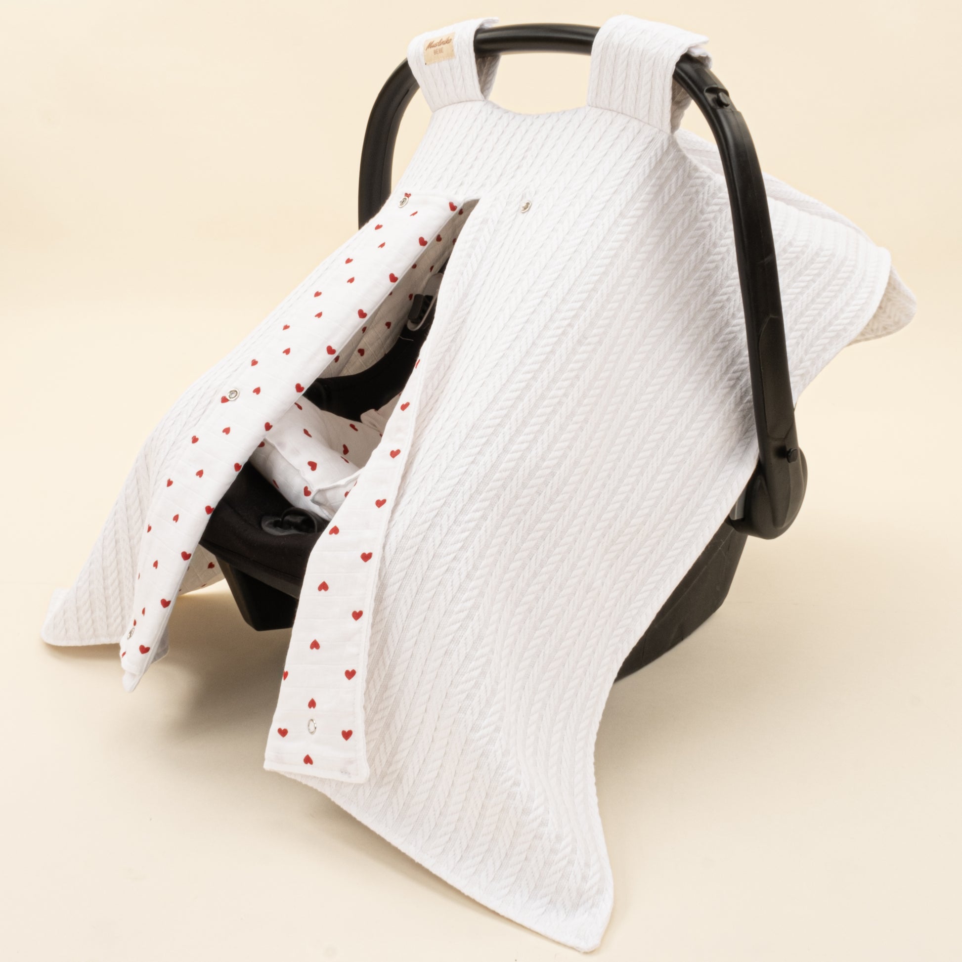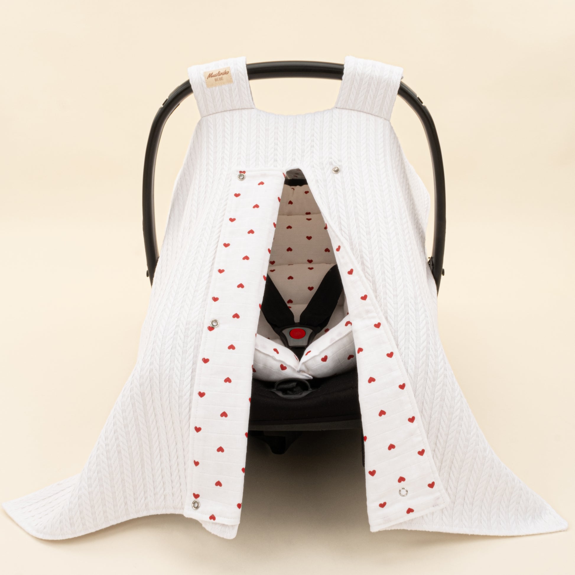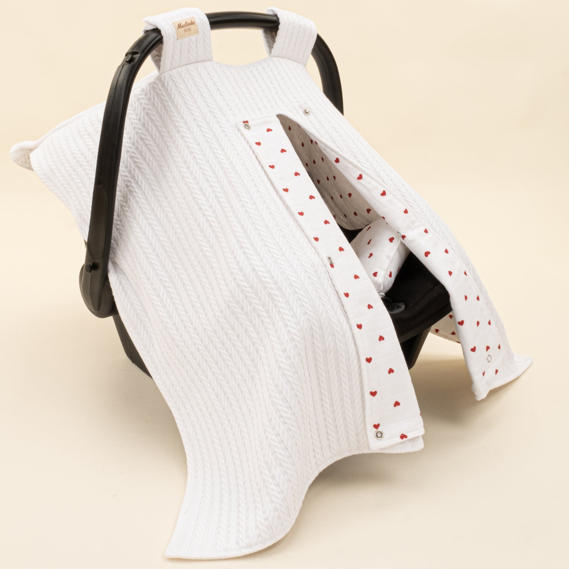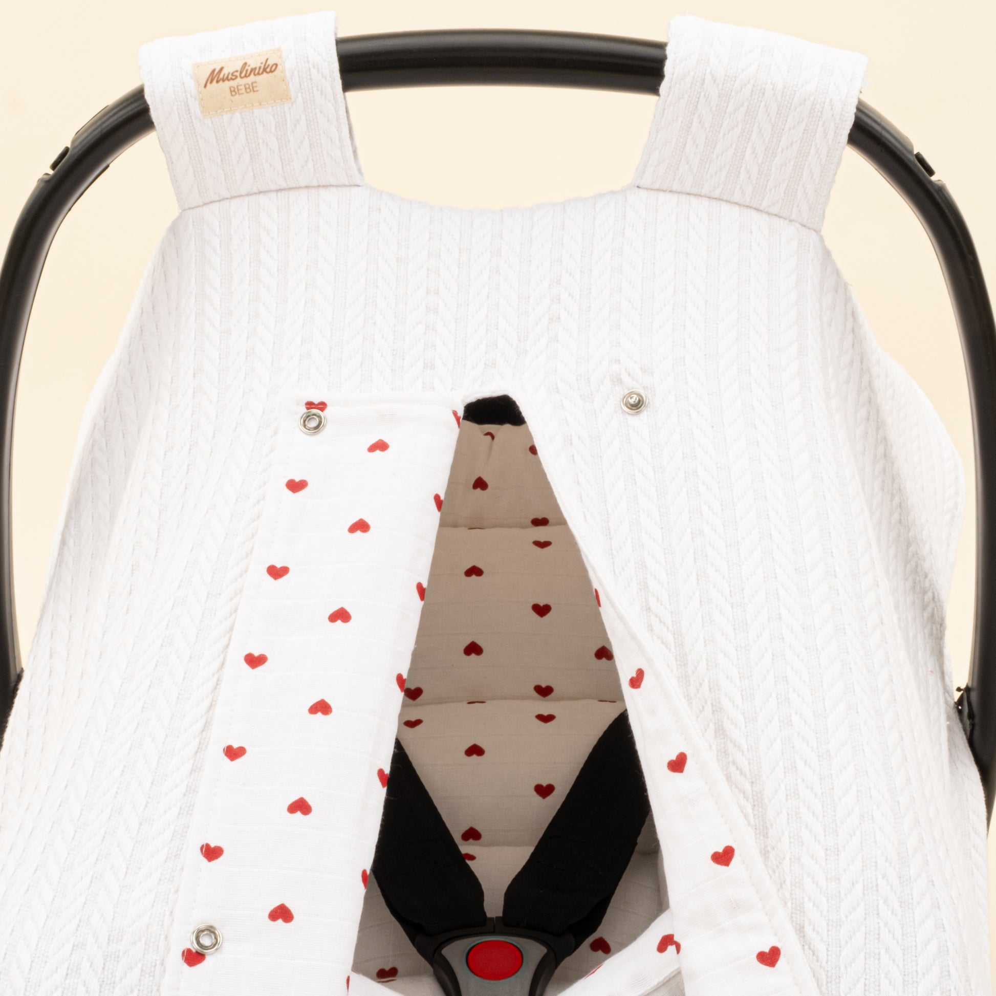 Puset Seti - Çift Taraflı - Beyaz Örgü - Kırmızı Kalp