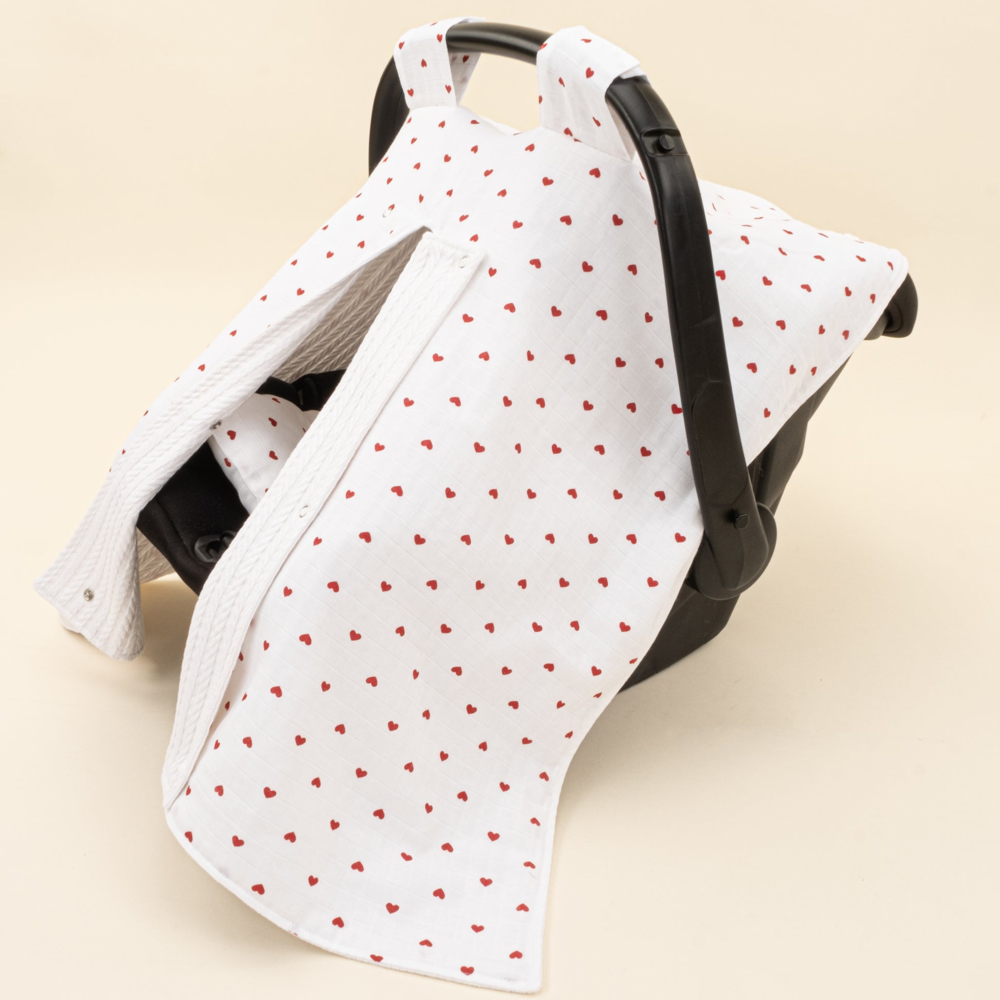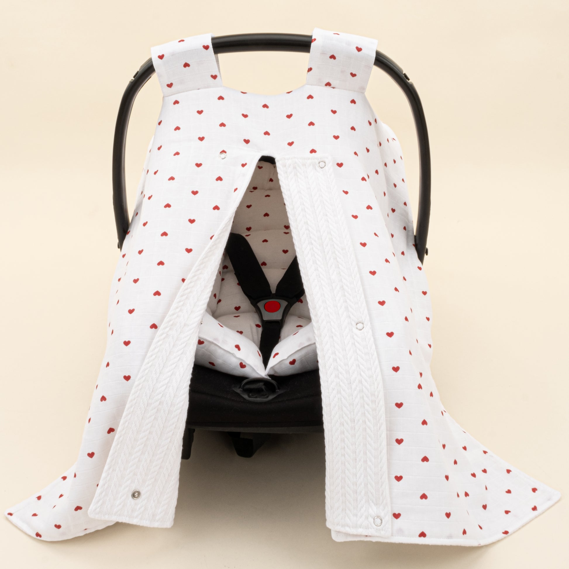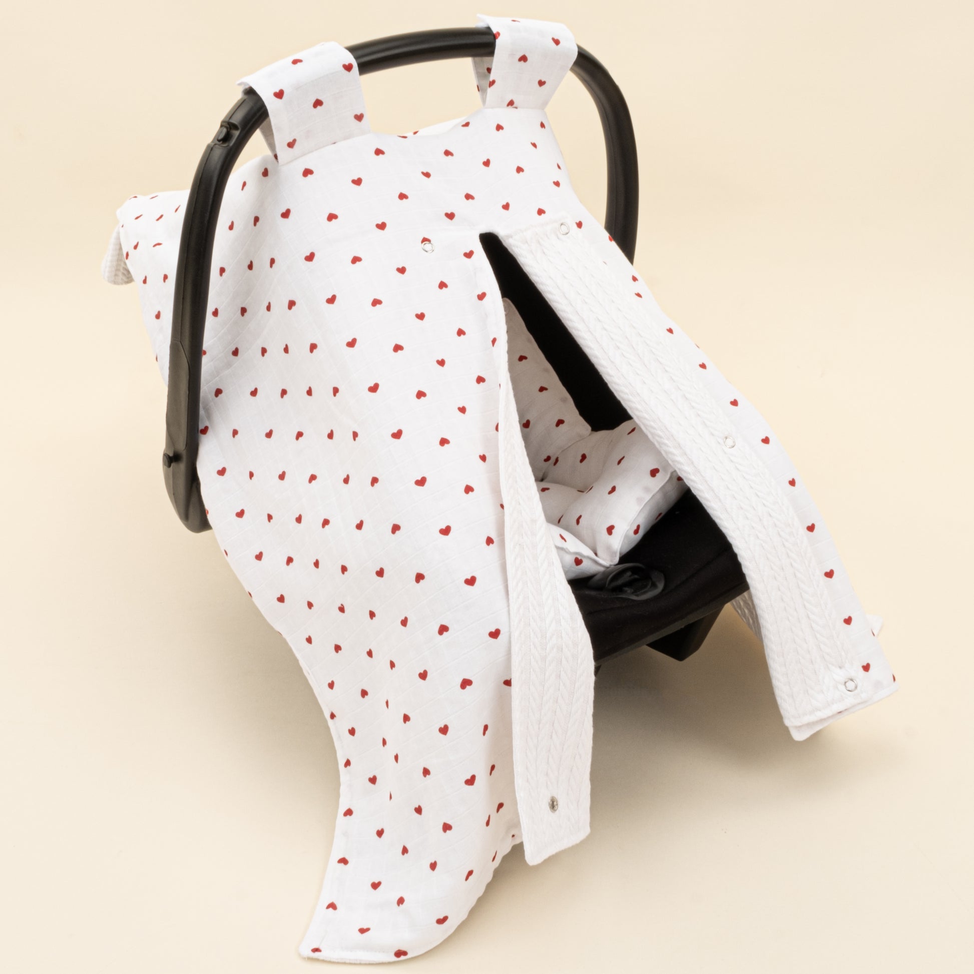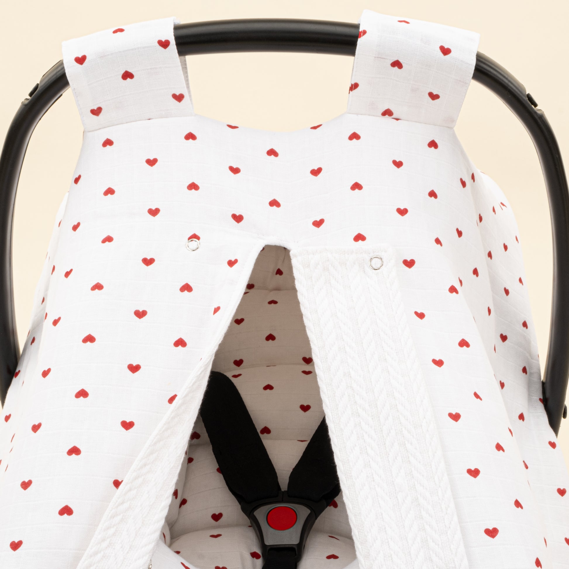 Puset Seti - Çift Taraflı - Beyaz Örgü - Kırmızı Kalp