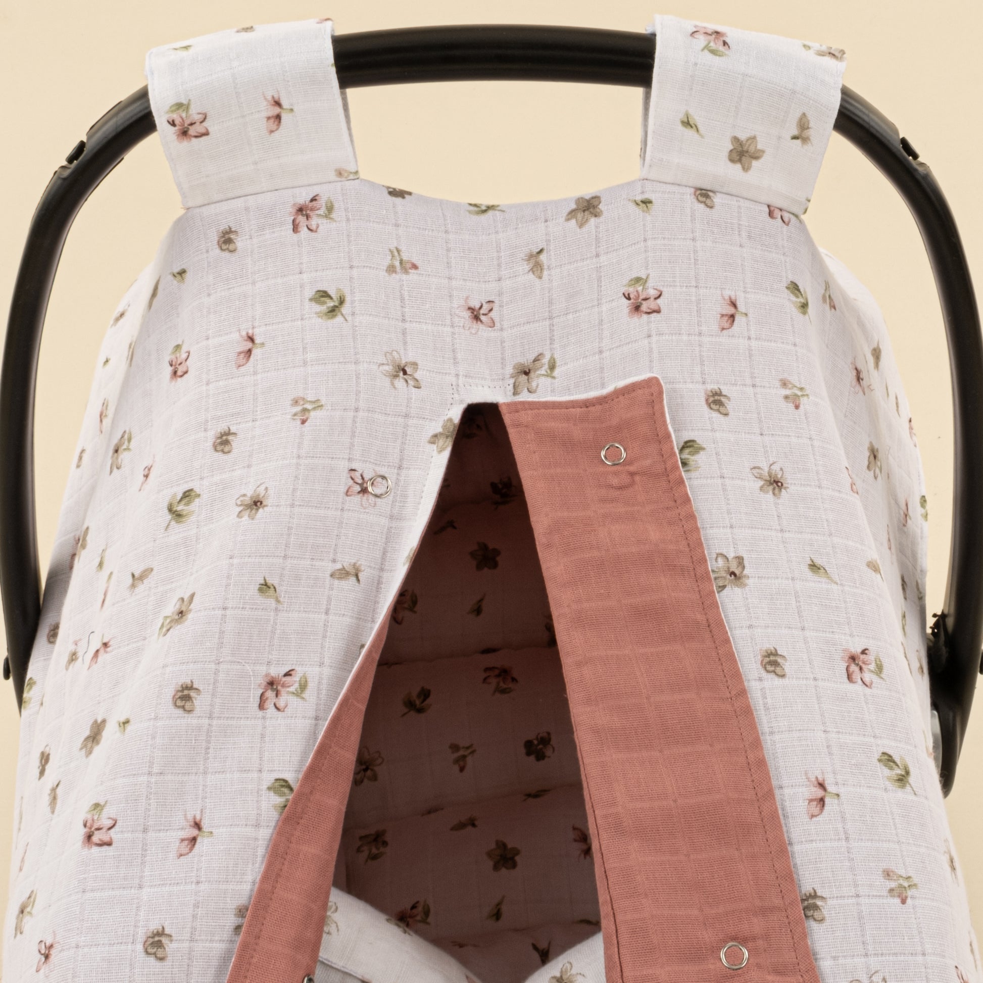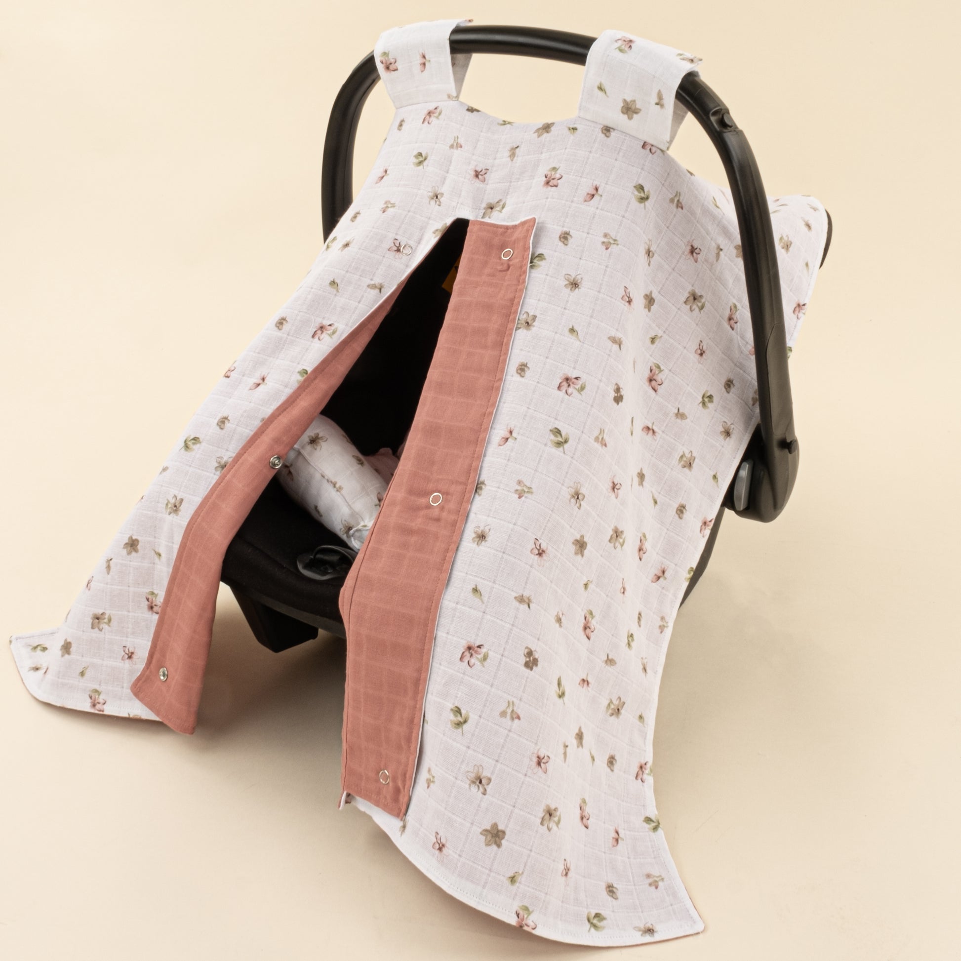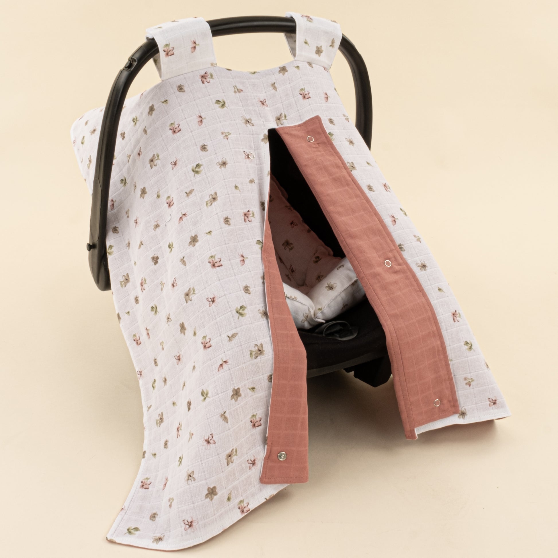 Puset Seti - Çift Taraflı - Gül Kurusu Muslin - Çiçekler