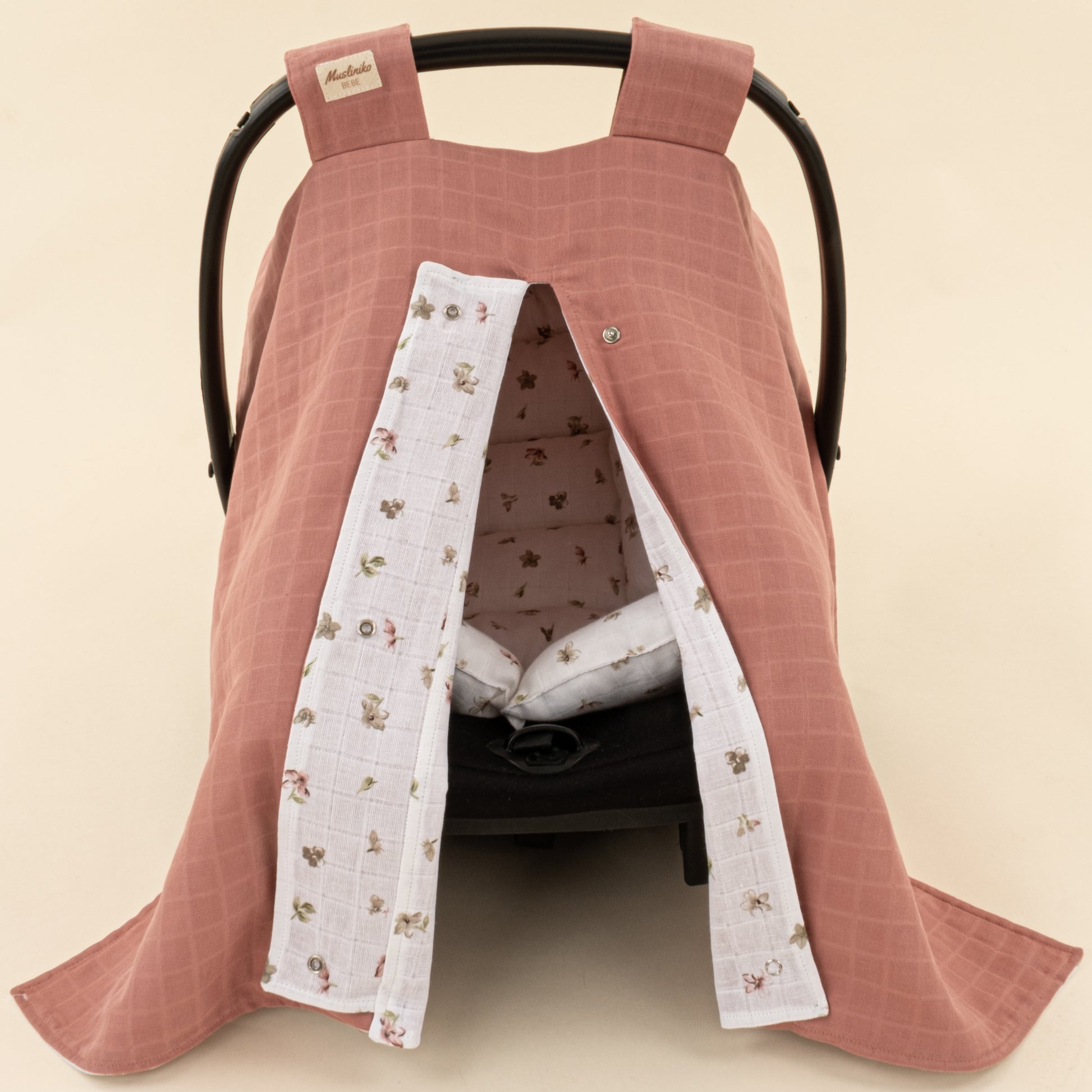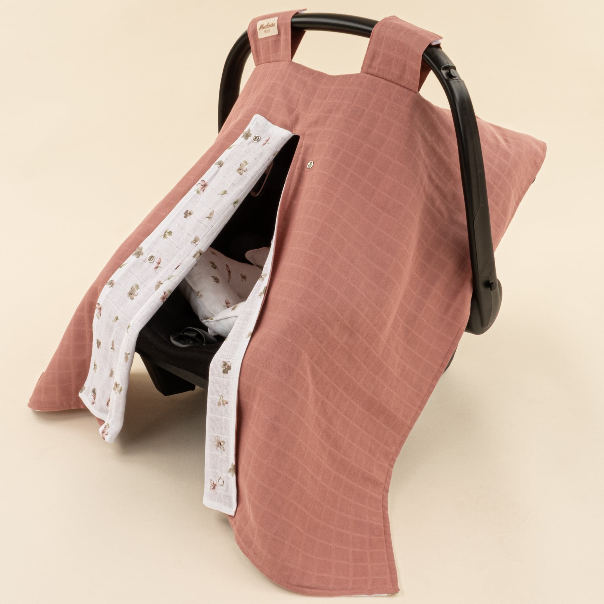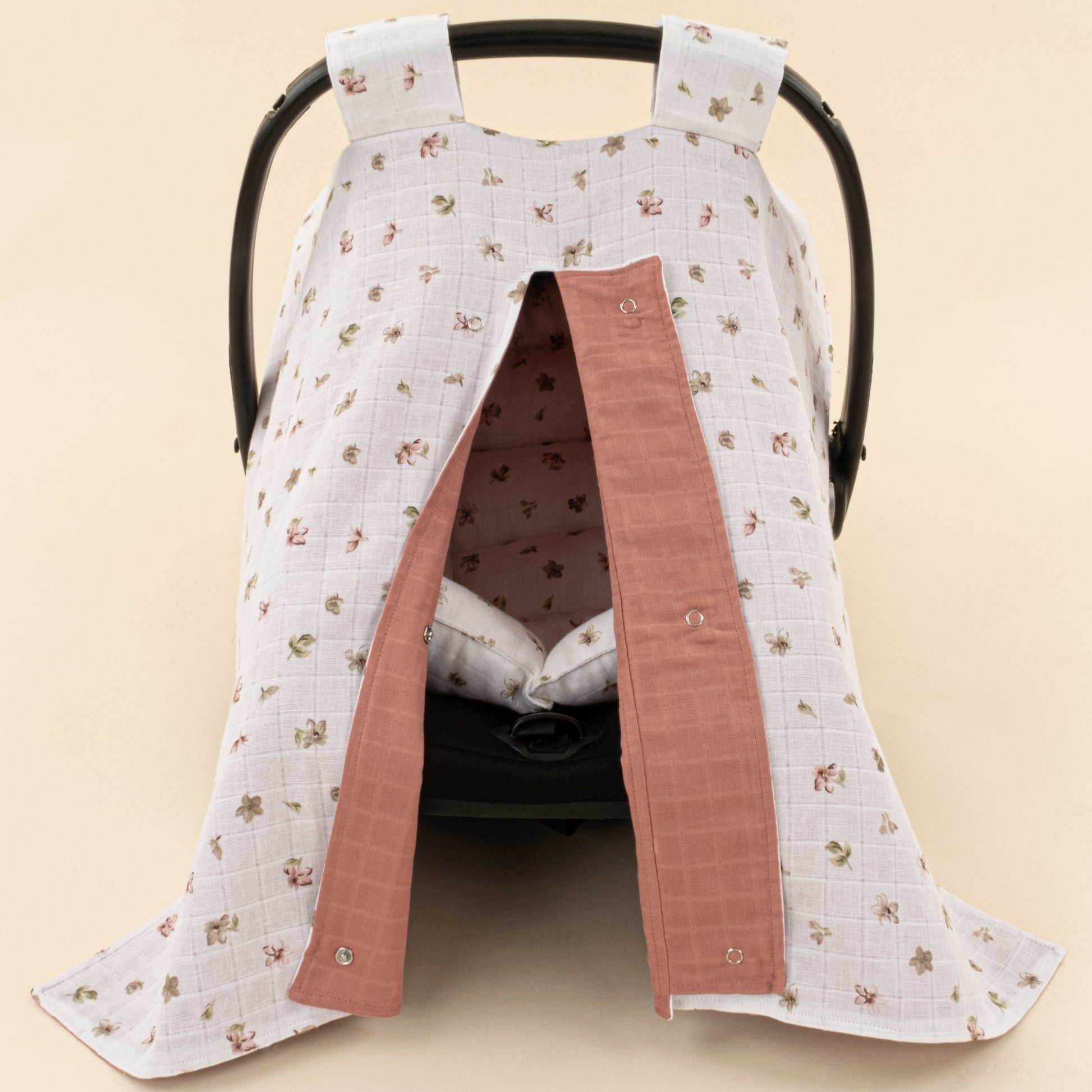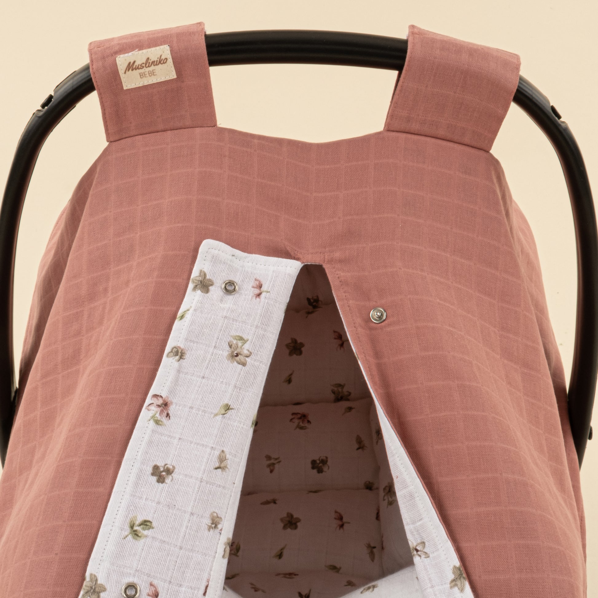 Puset Seti - Çift Taraflı - Gül Kurusu Muslin - Çiçekler
