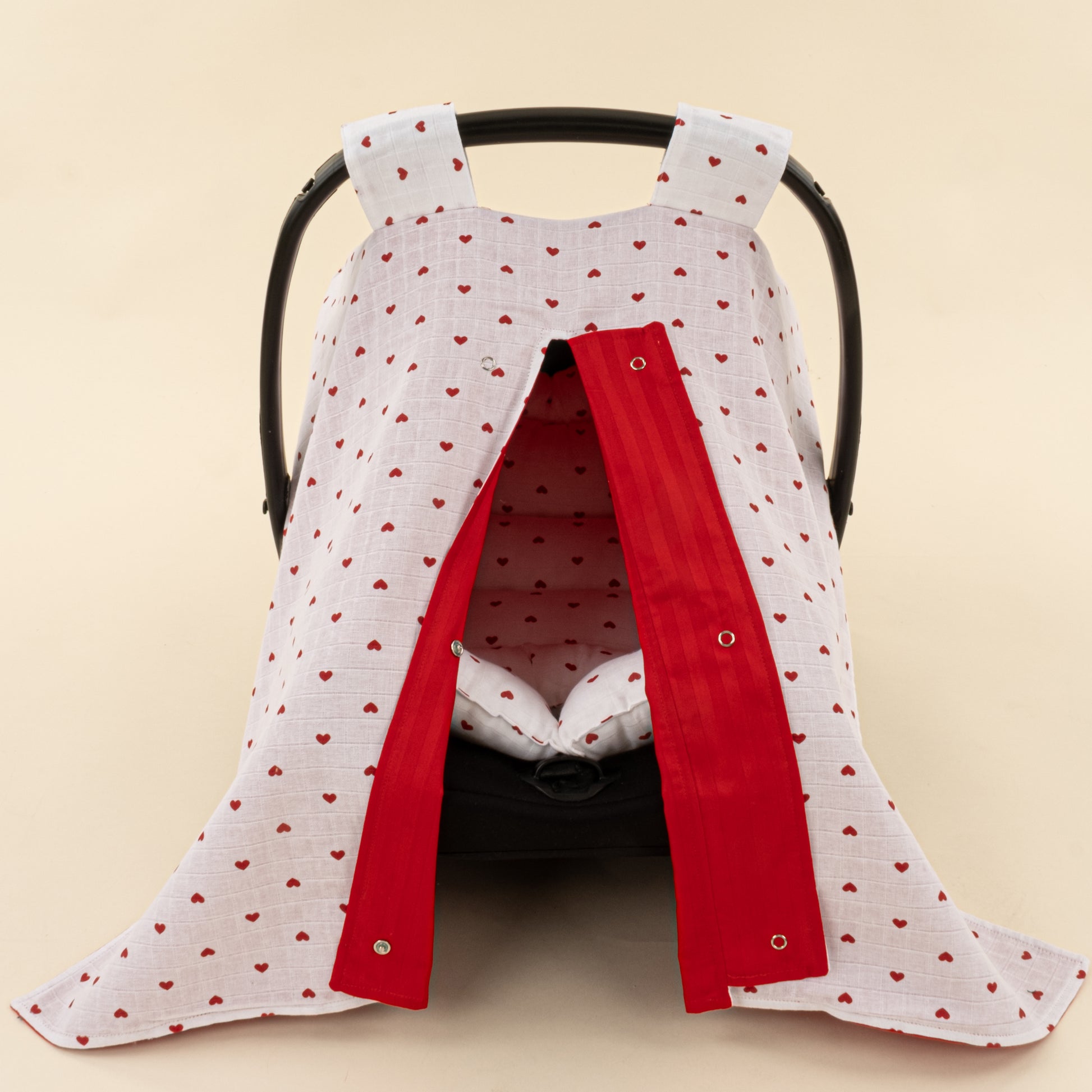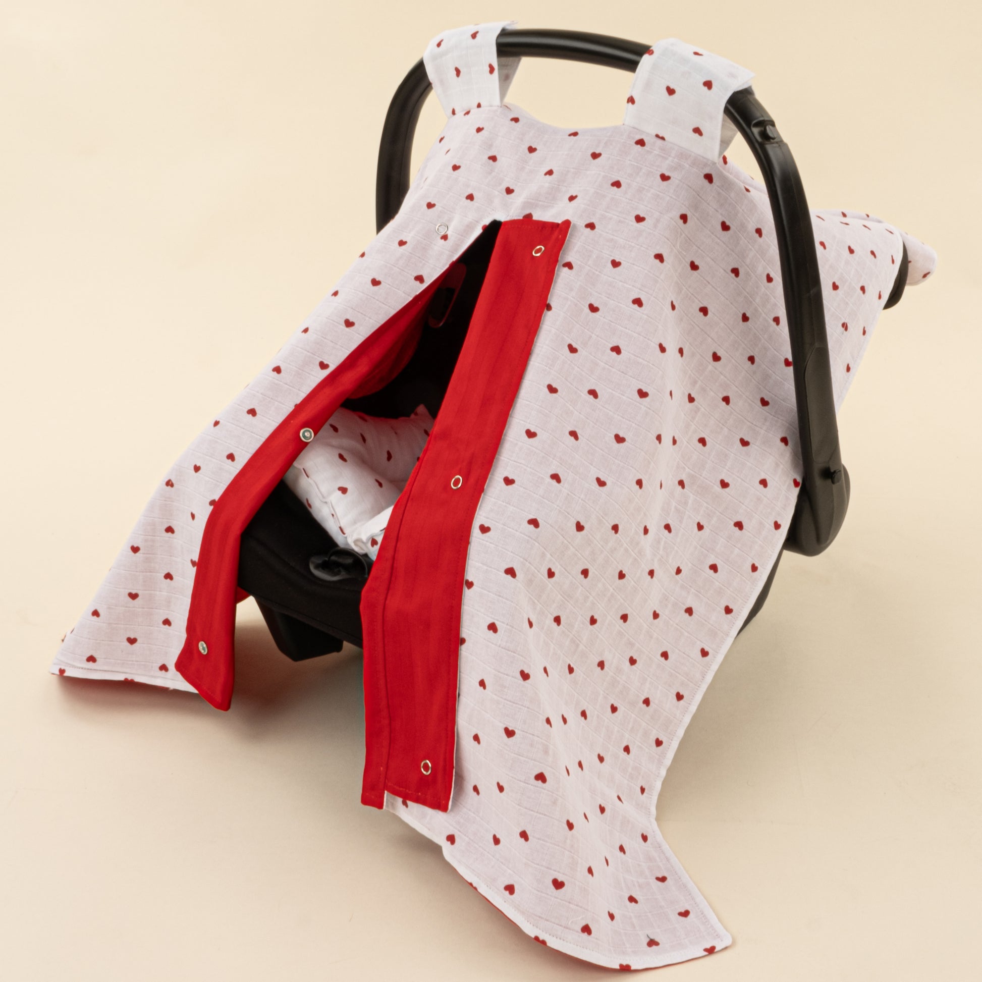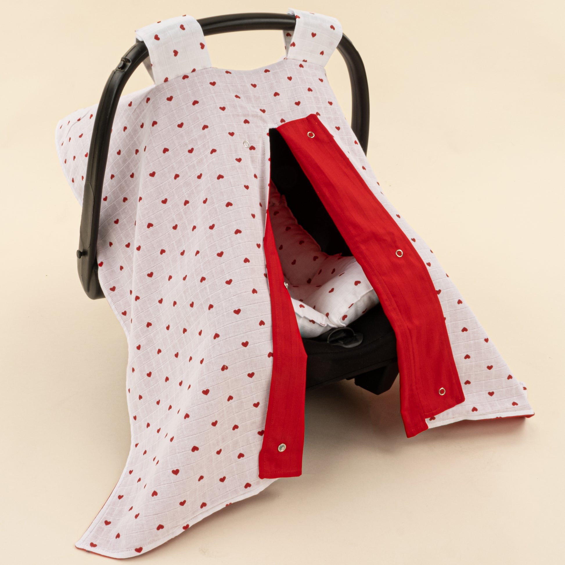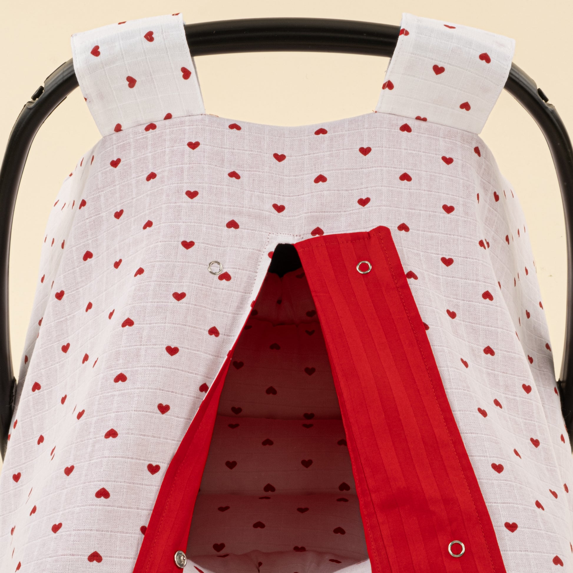 Puset Seti - Çift Taraflı - Kırmızı Saten - Kırmızı Kalp