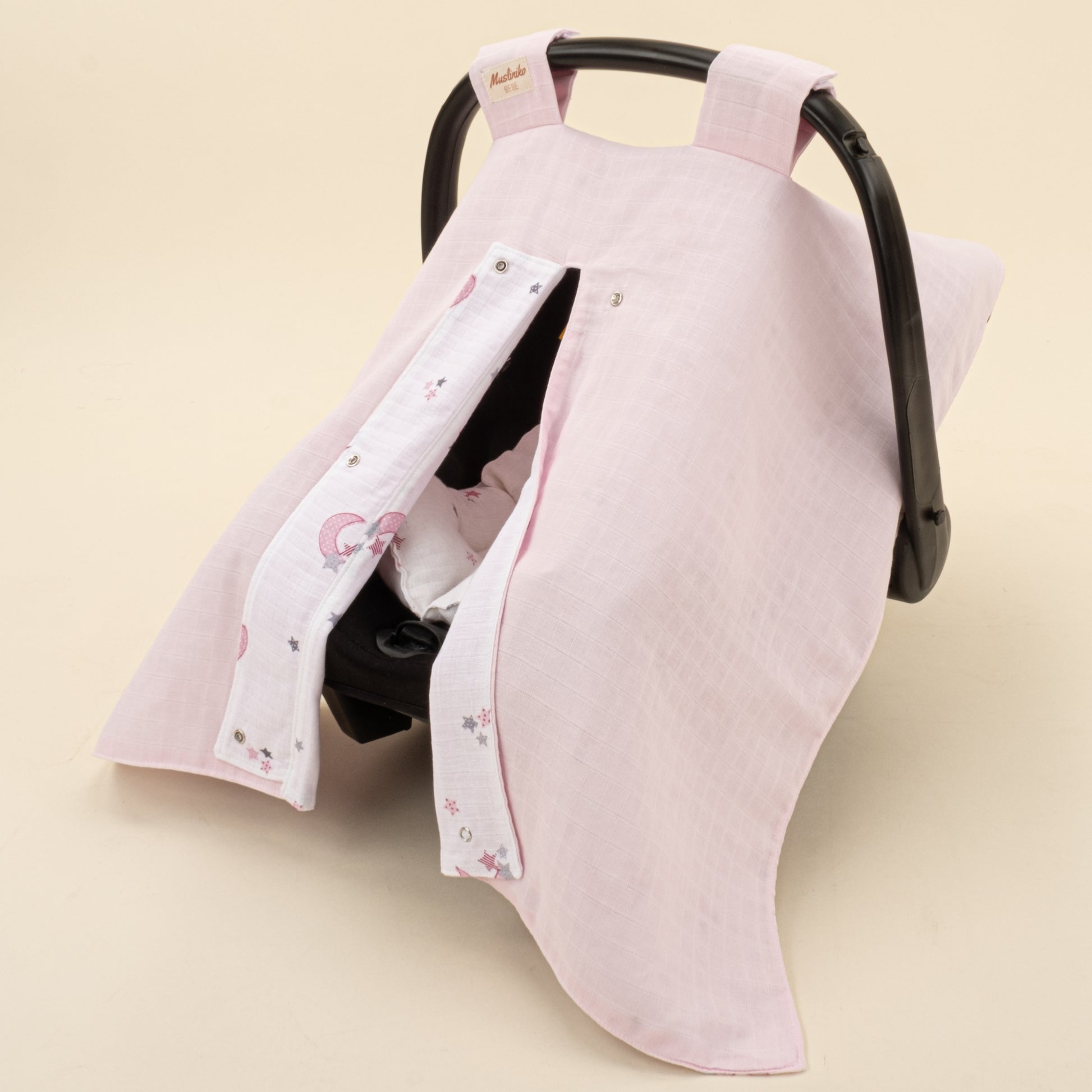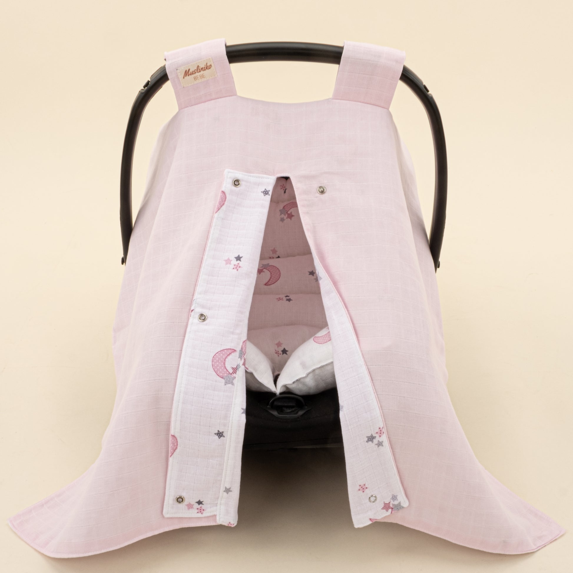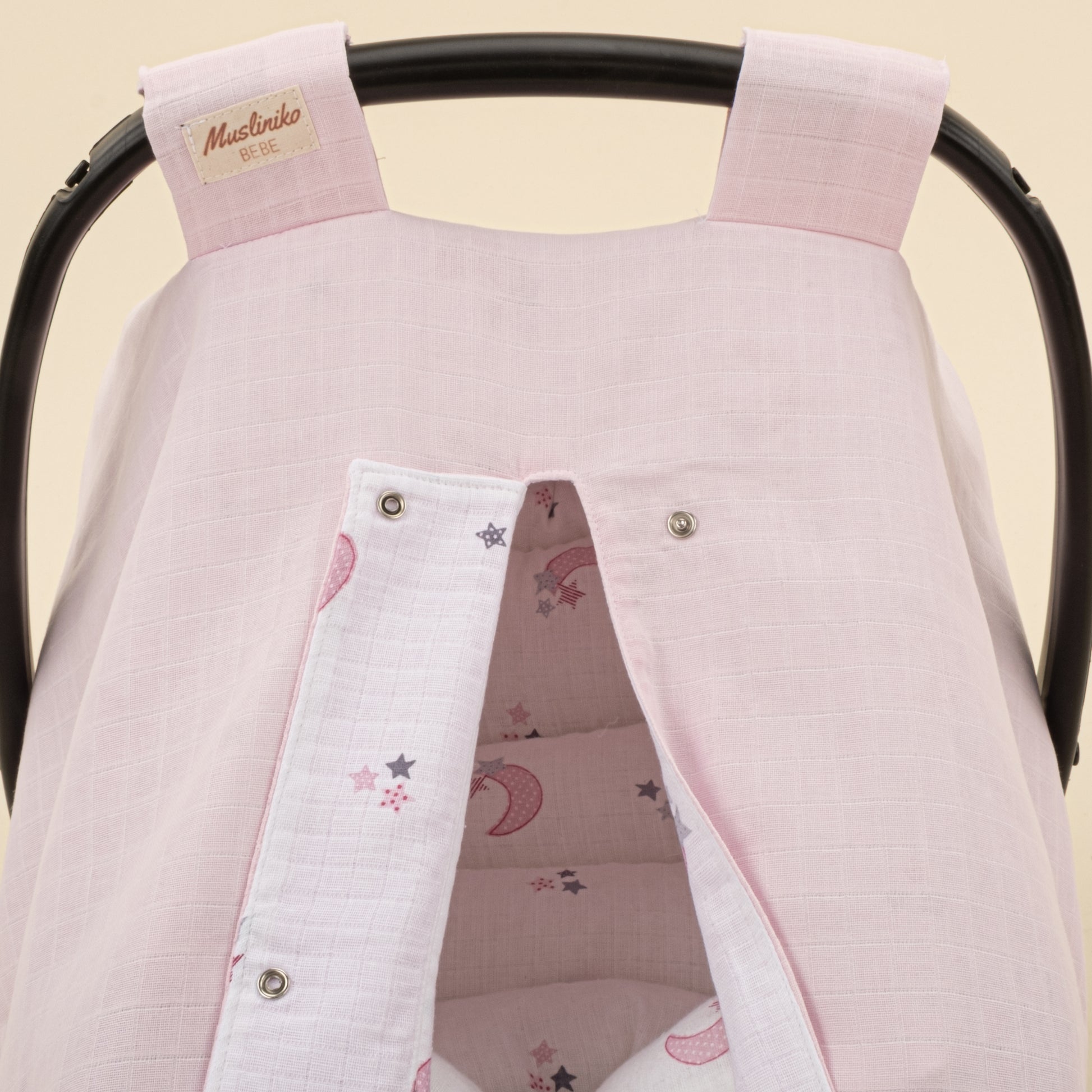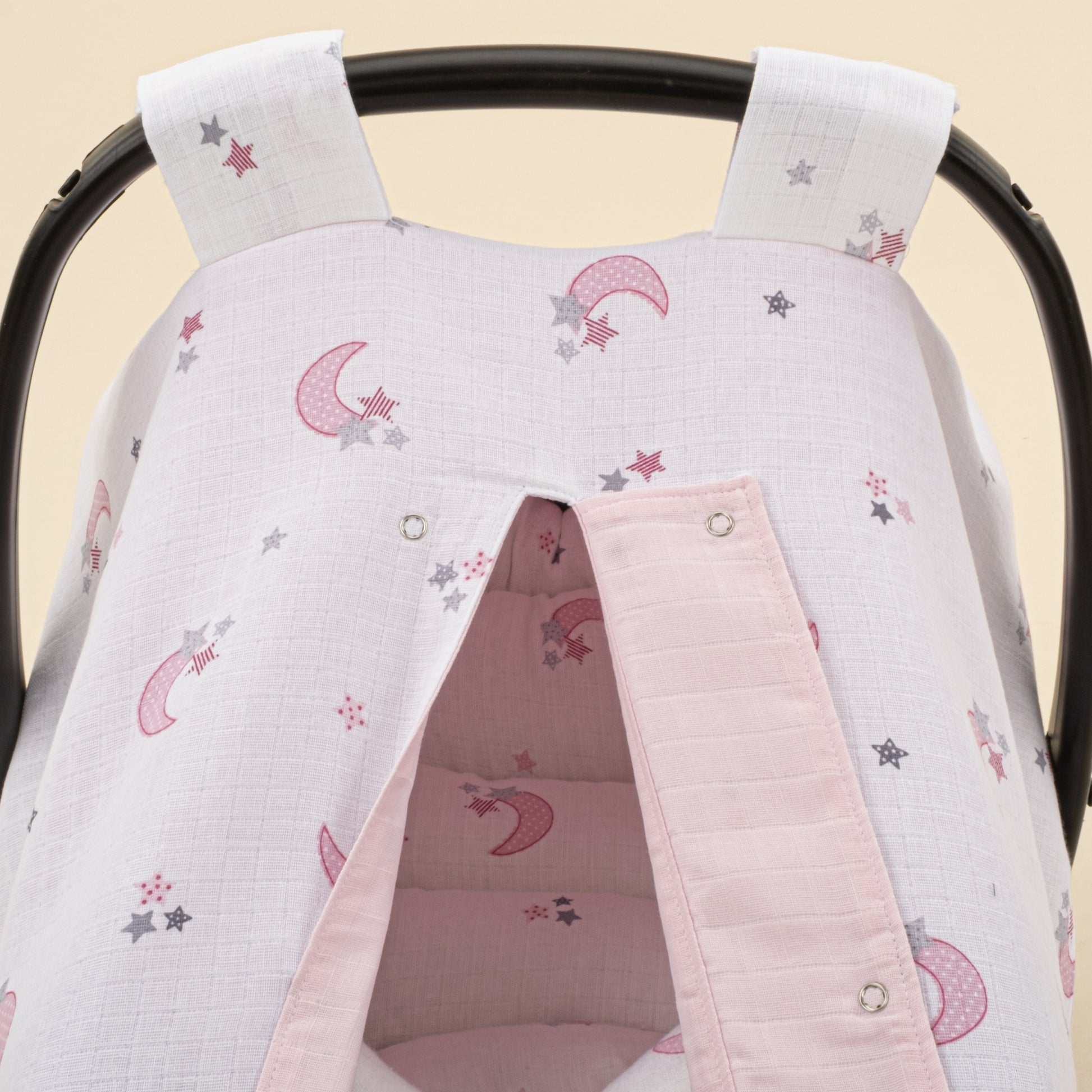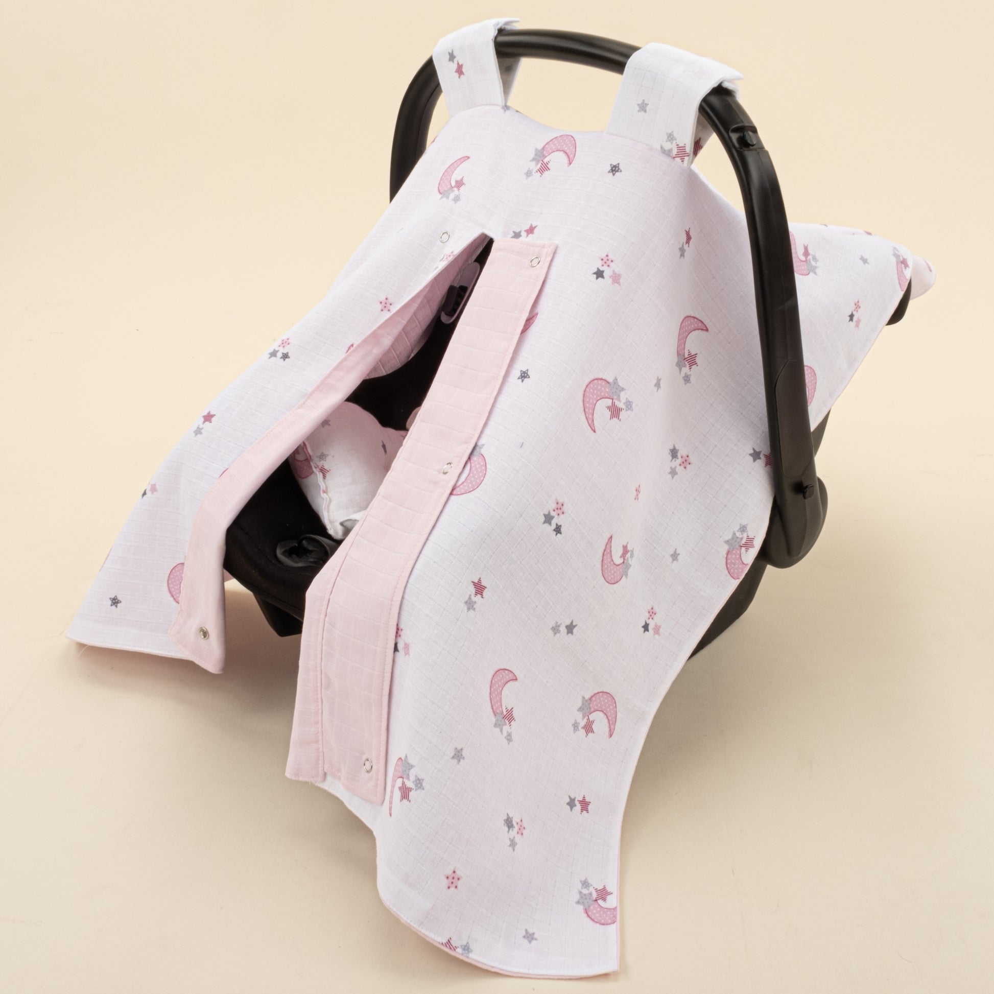 Puset Seti - Çift Taraflı - Bebe Pembe Muslin - Pembe Ay