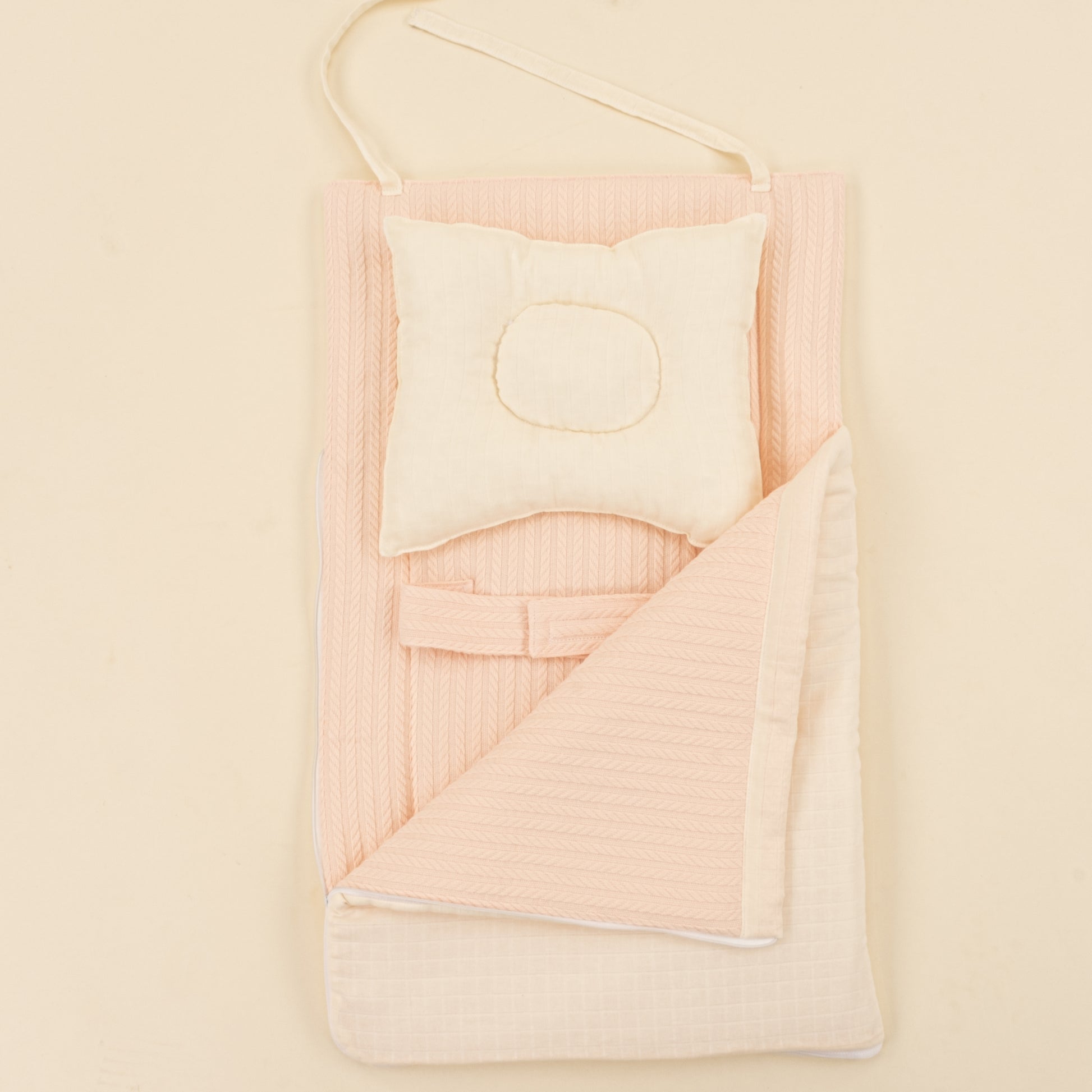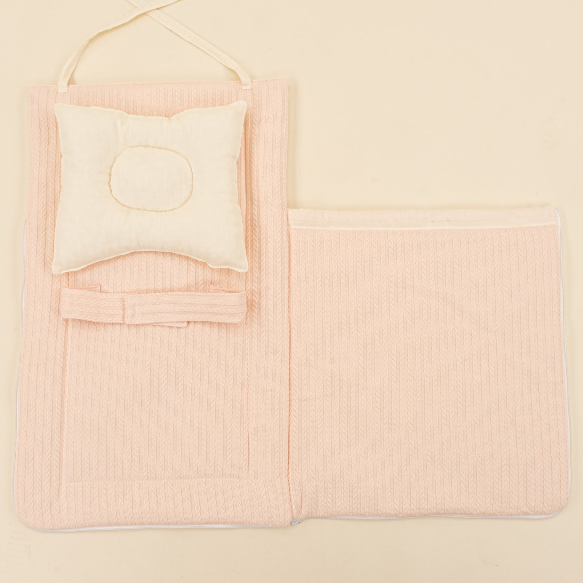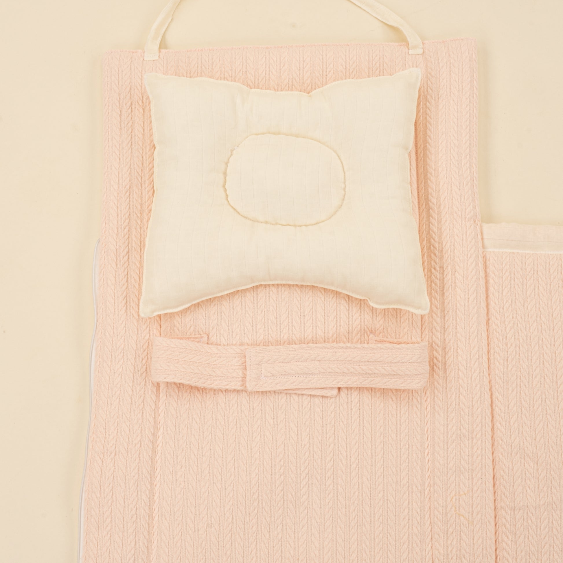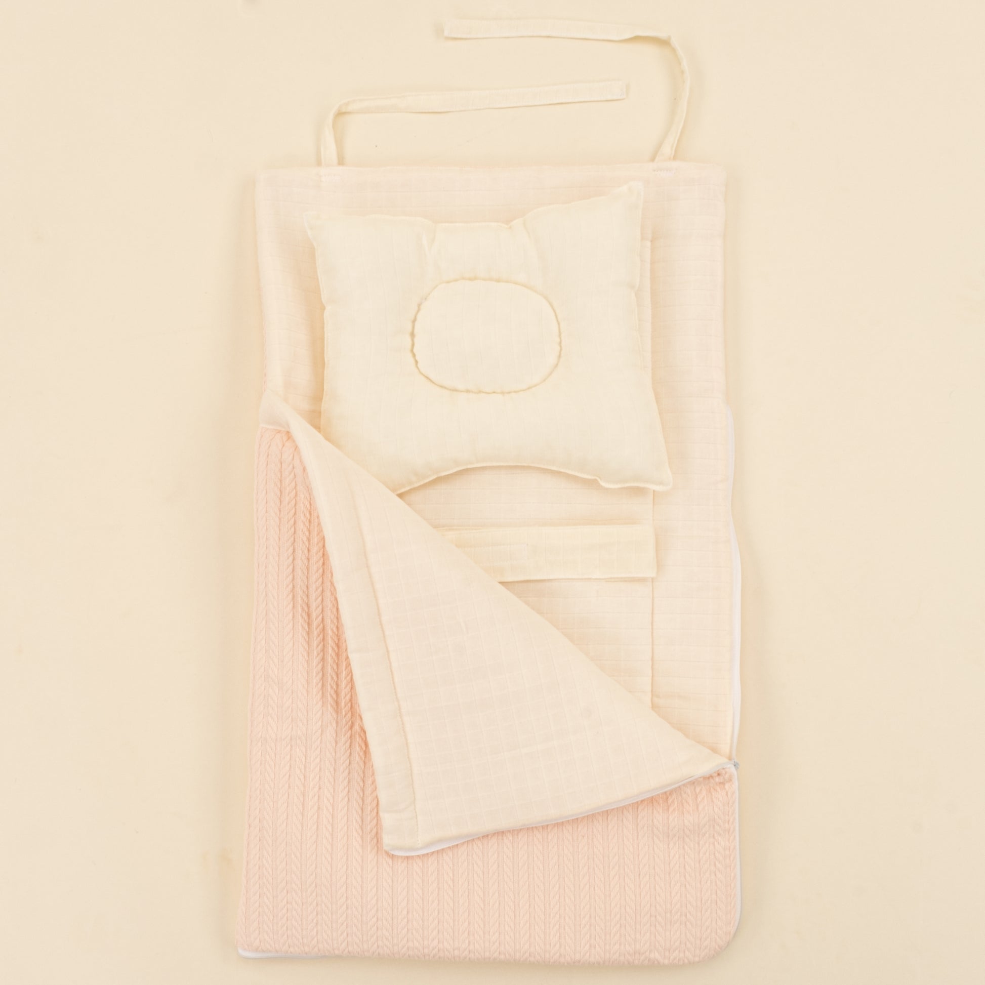 Uyku Tulumu ve Baş Şekillendirici Yastık - Somon Örgü - Krem Muslin