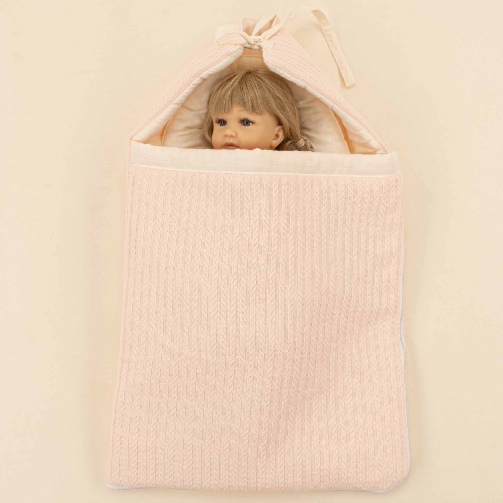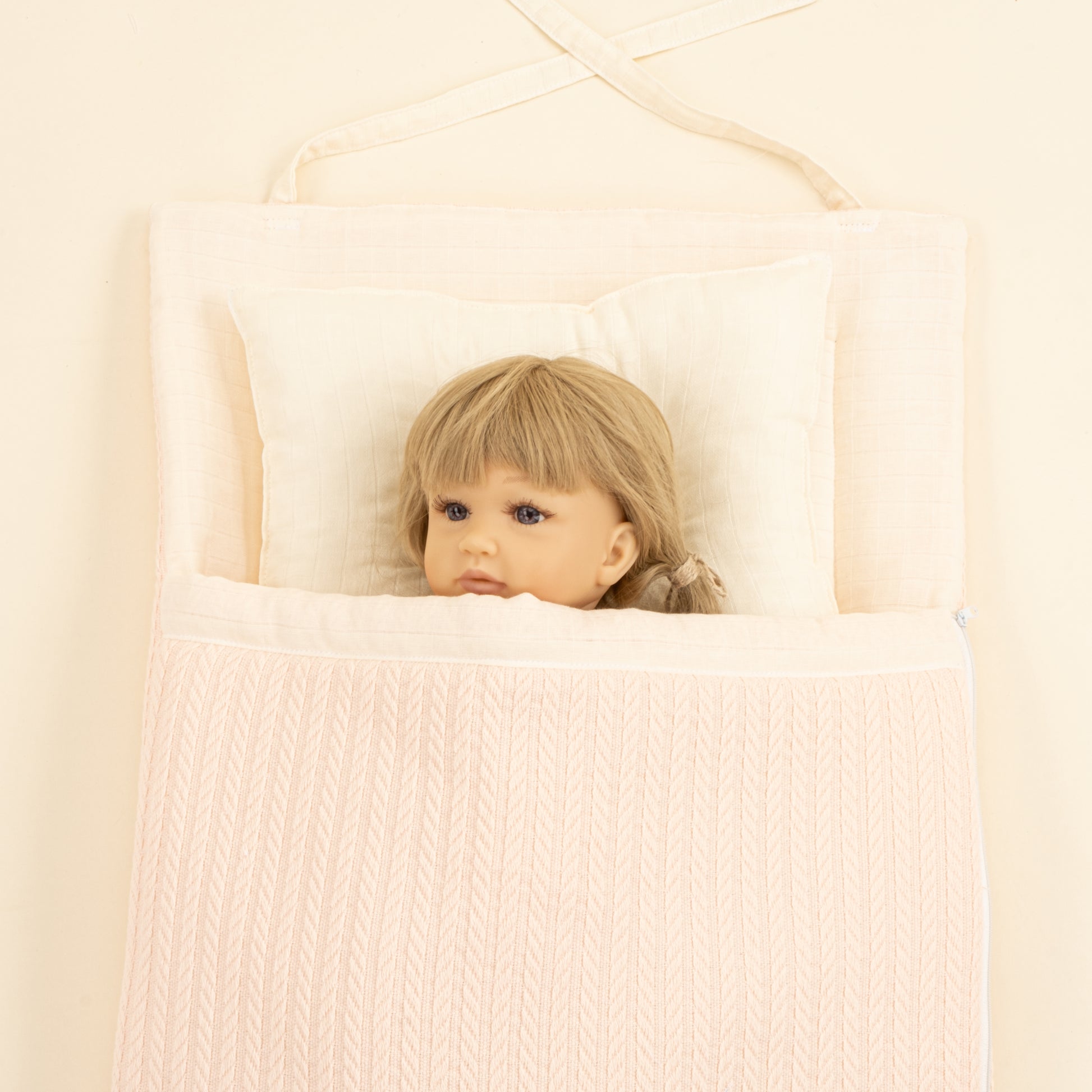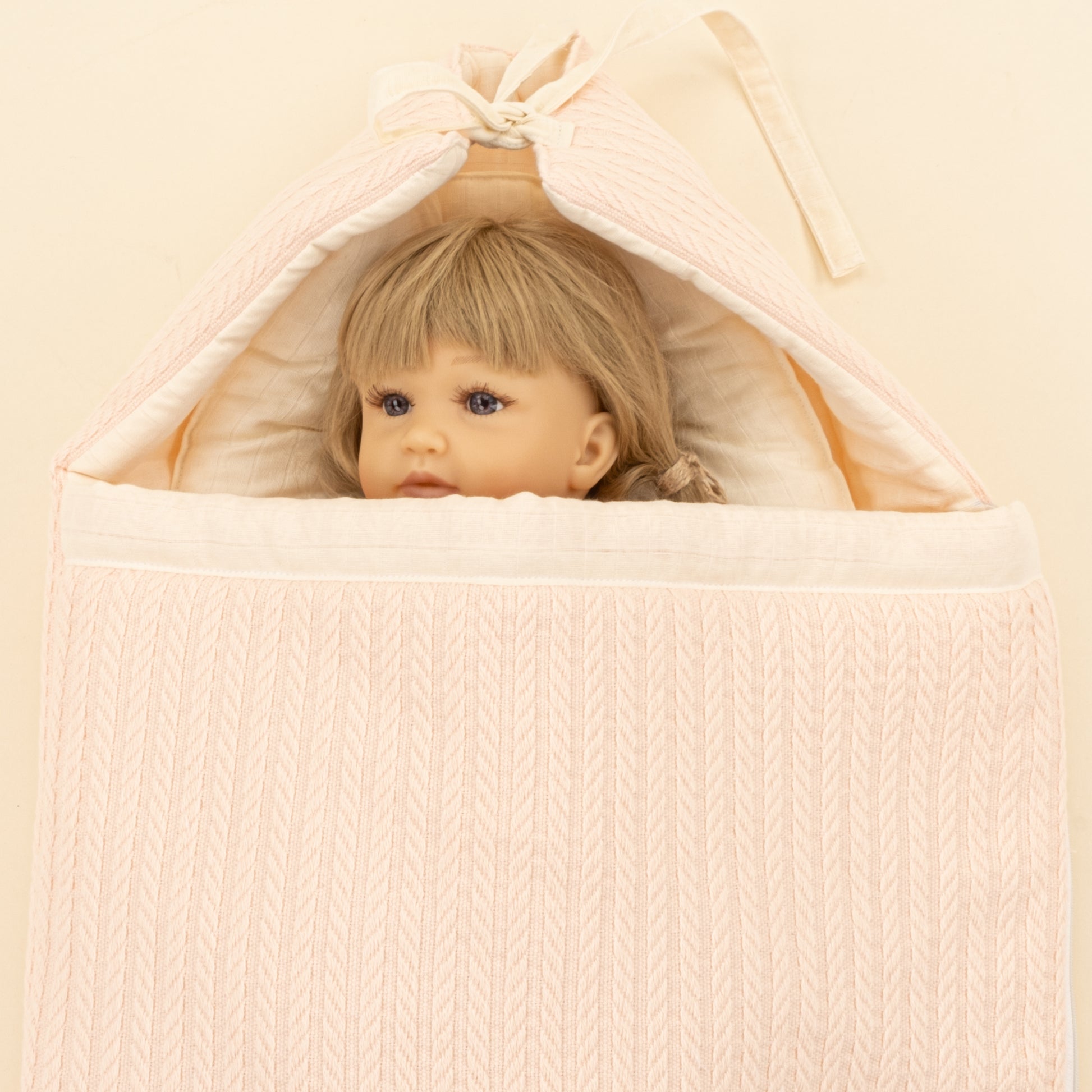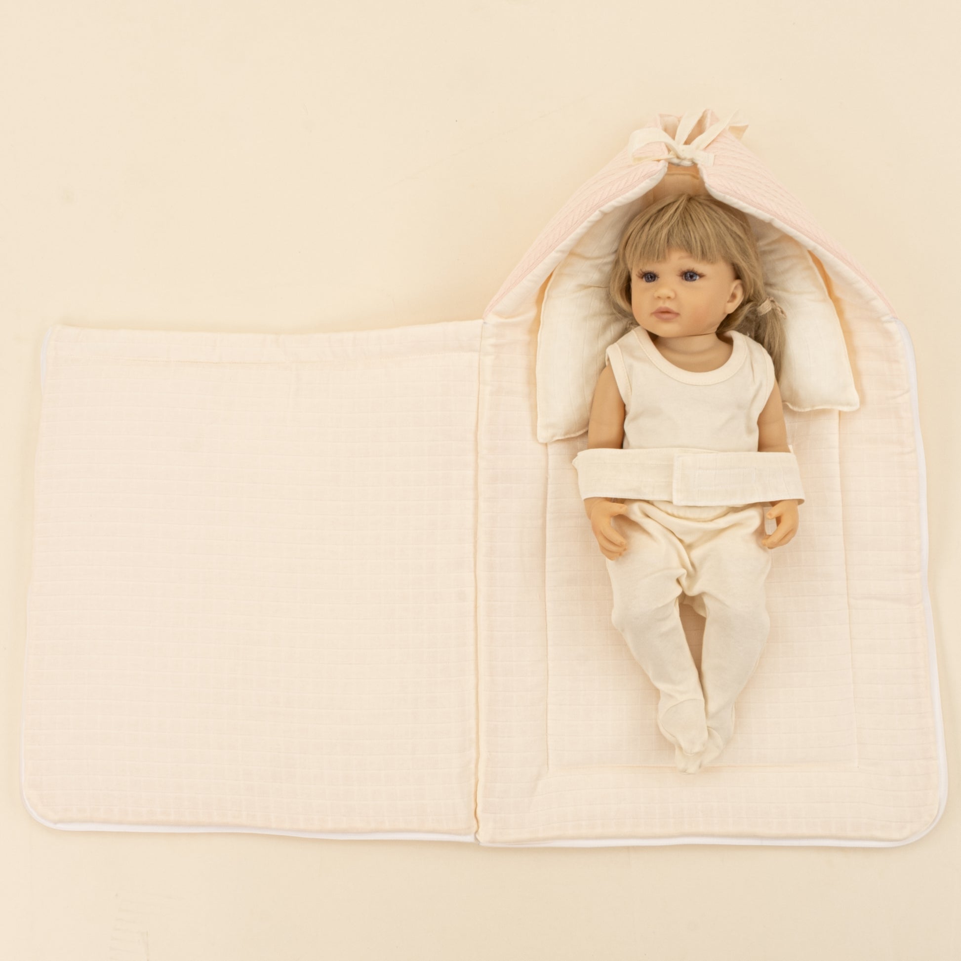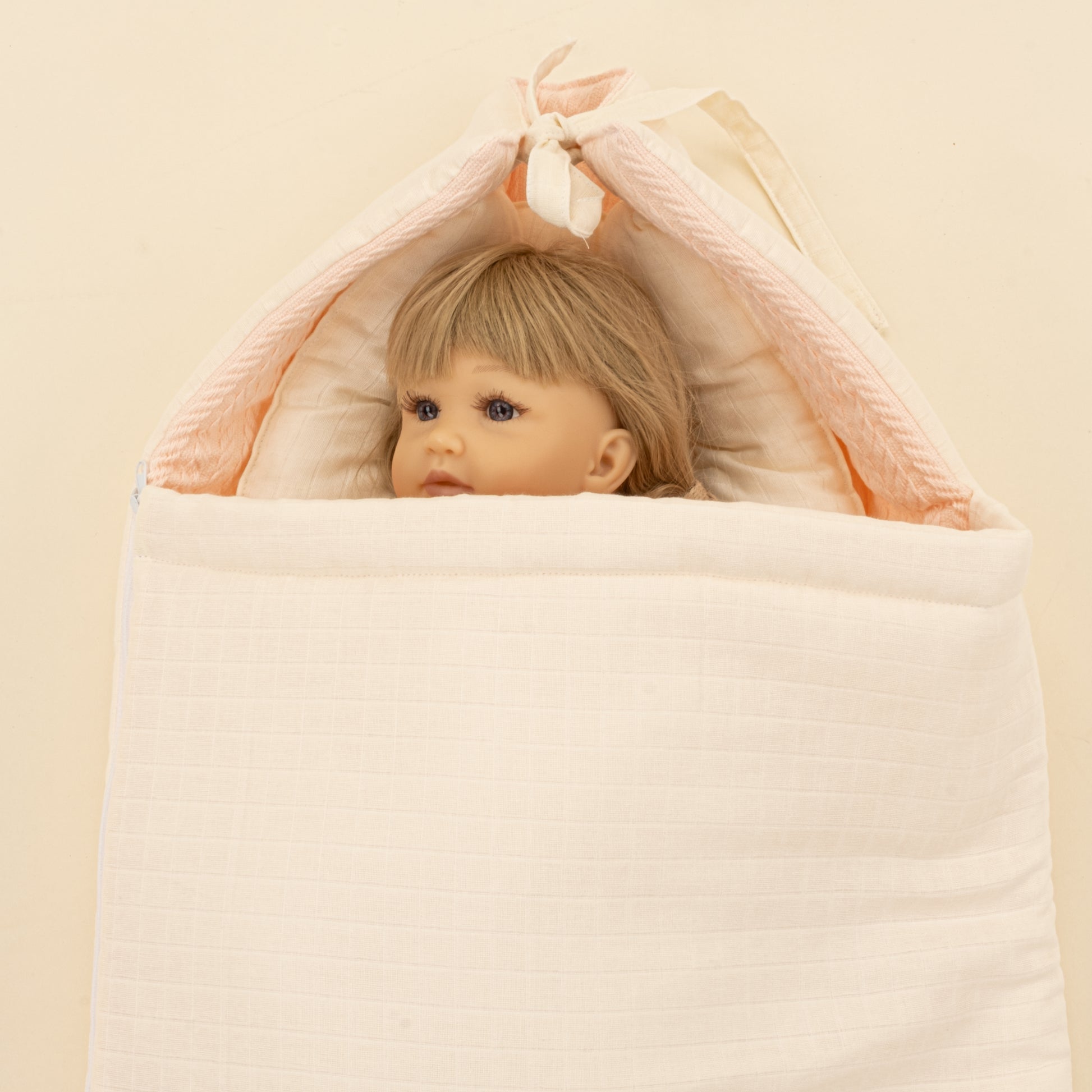 Uyku Tulumu ve Baş Şekillendirici Yastık - Somon Örgü - Krem Muslin