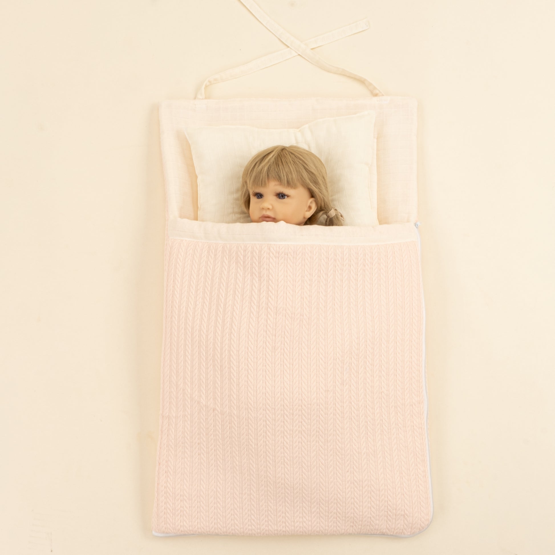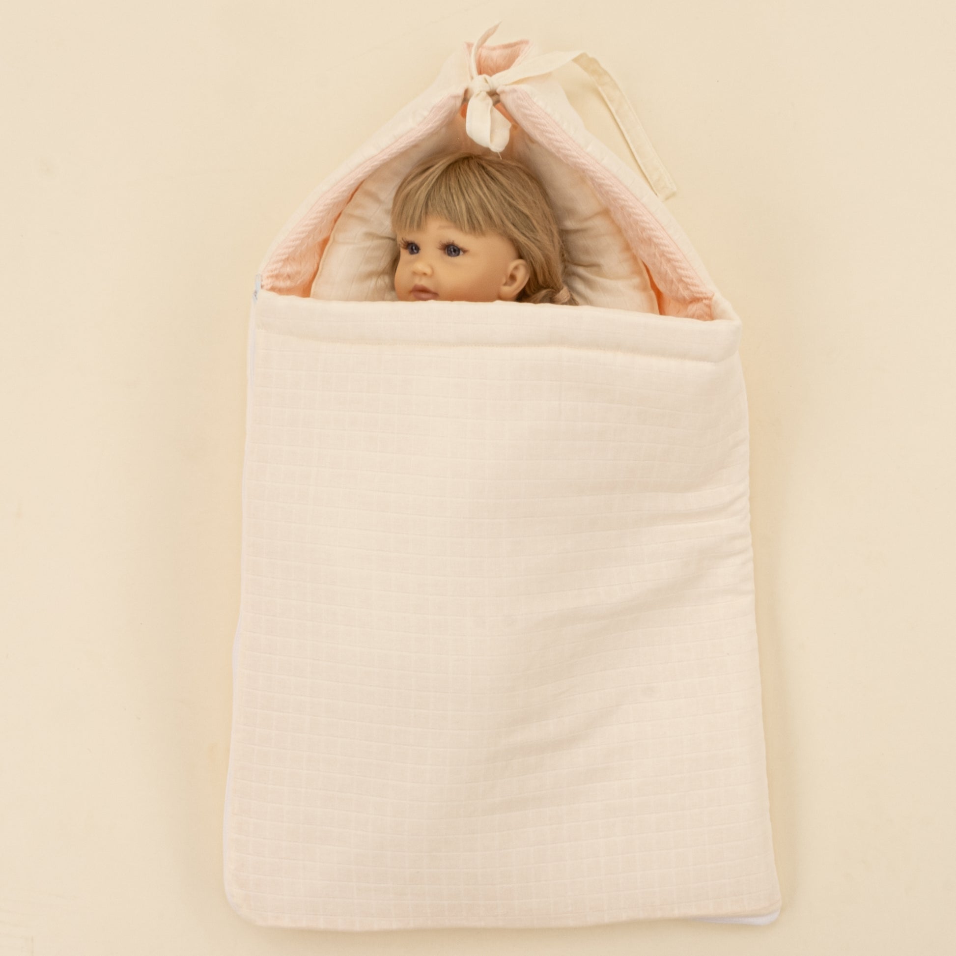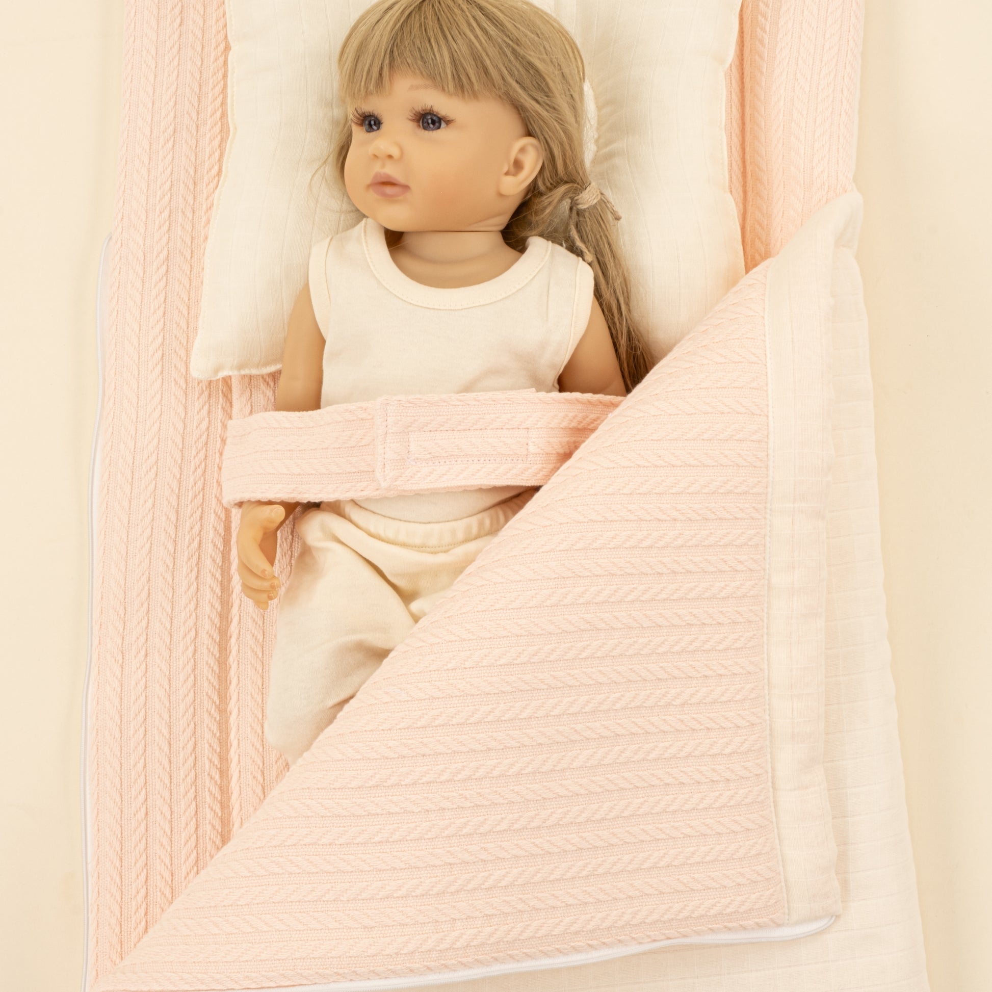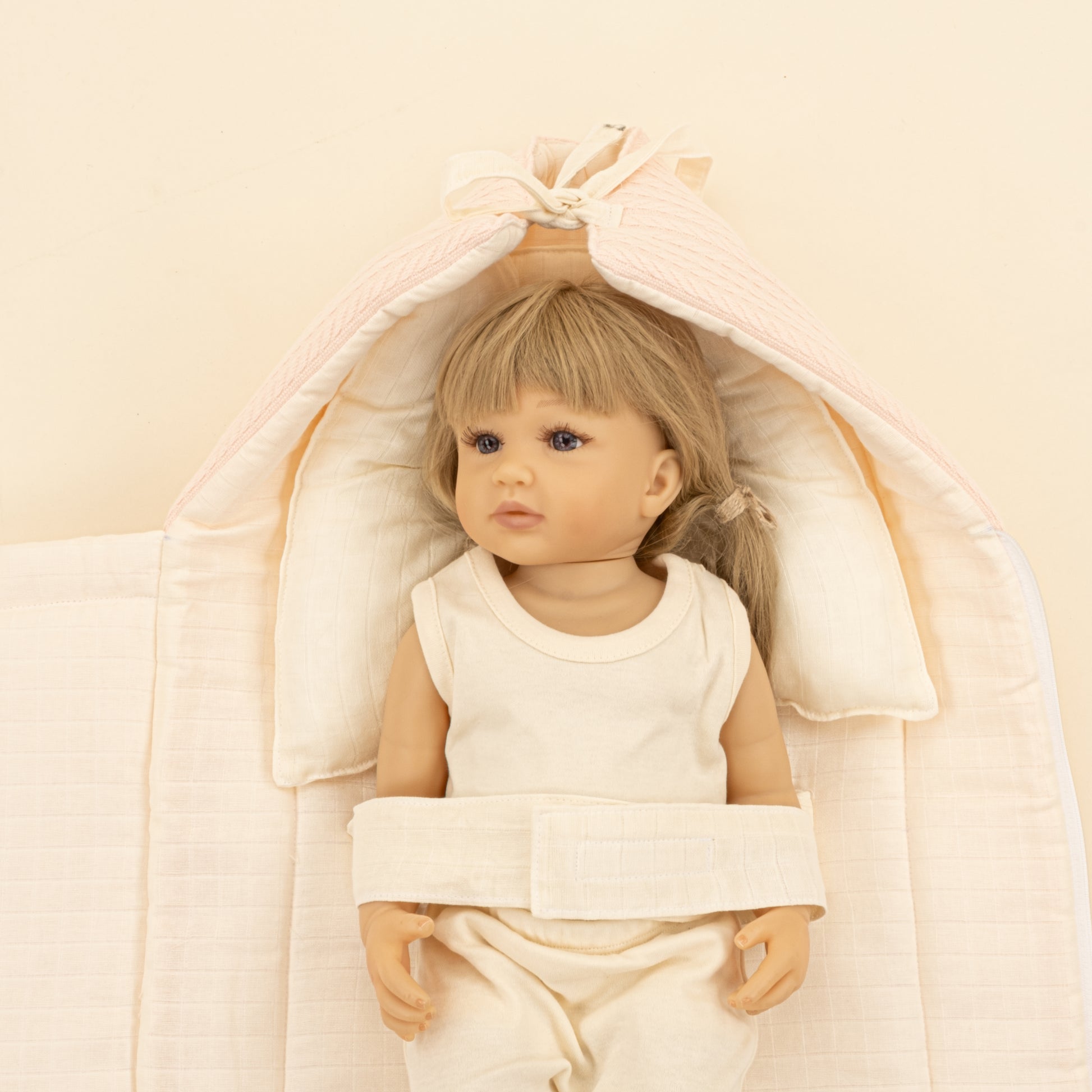 Uyku Tulumu ve Baş Şekillendirici Yastık - Somon Örgü - Krem Muslin