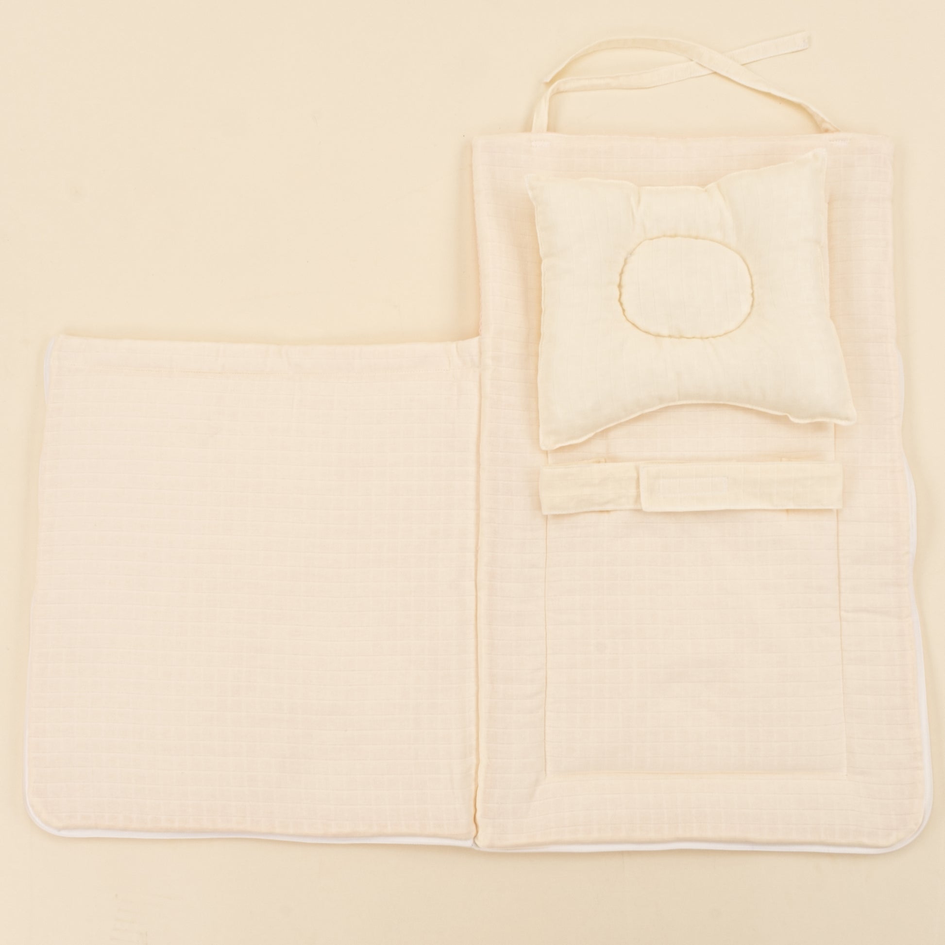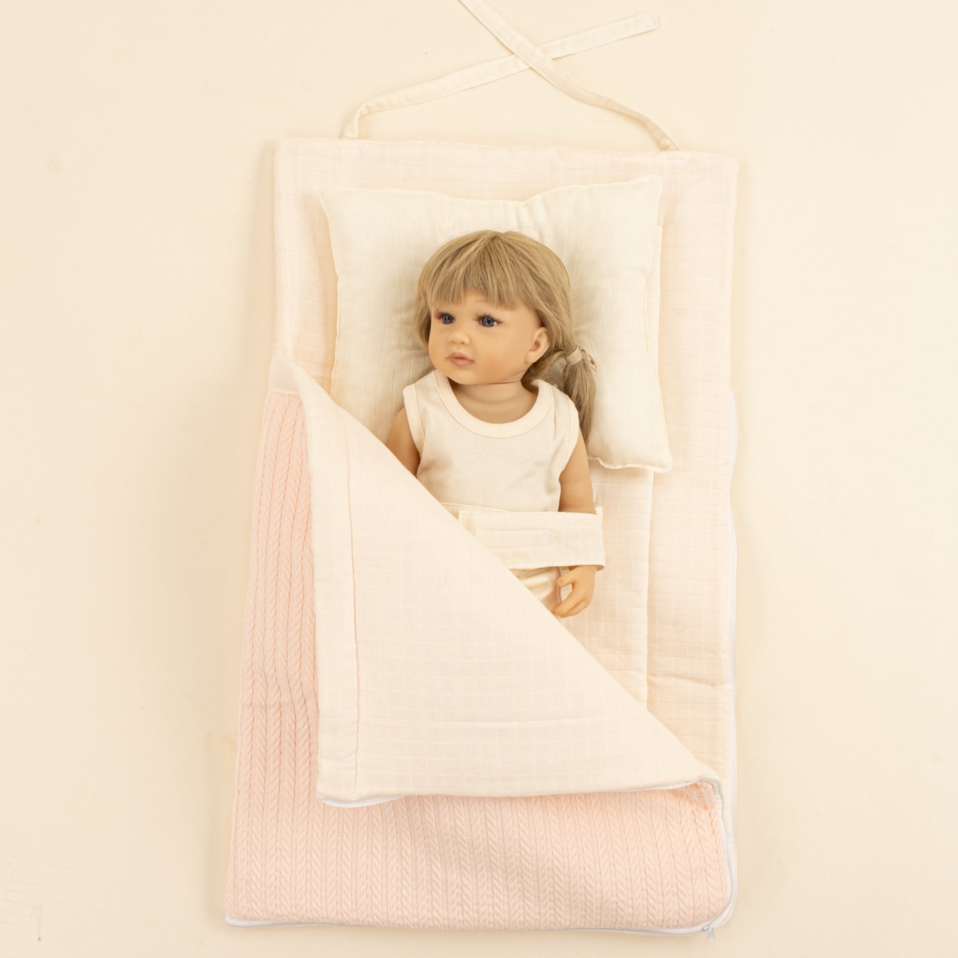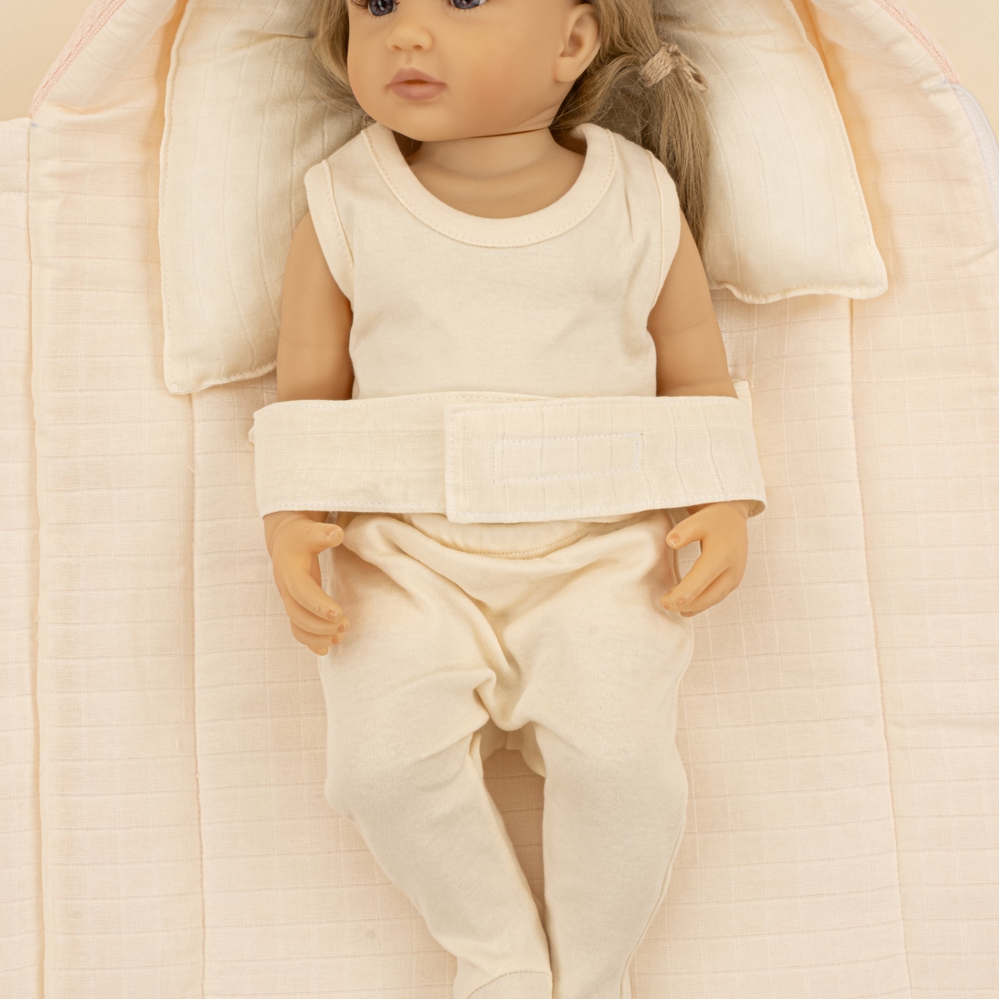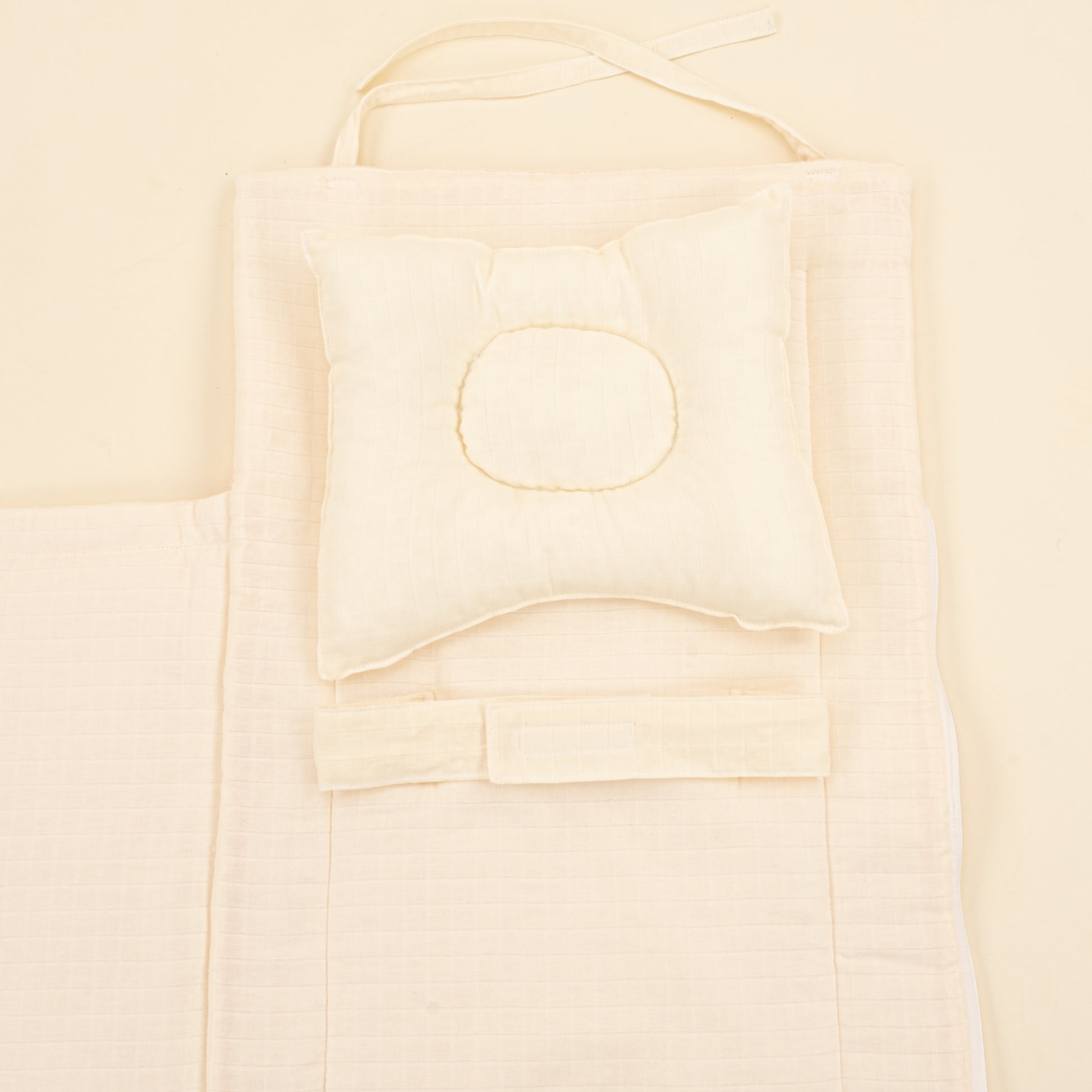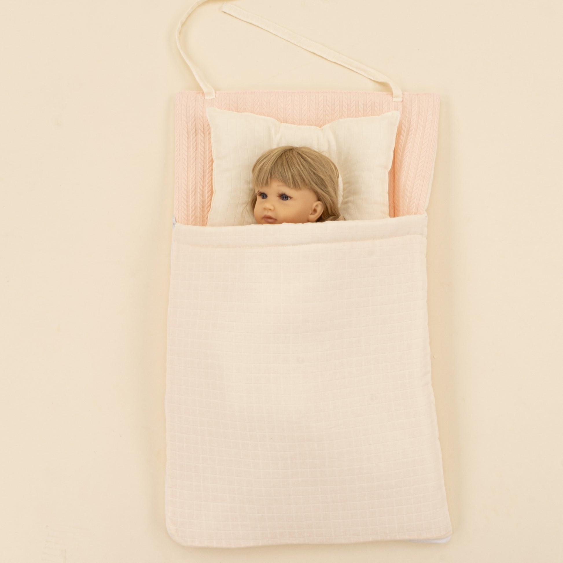 Uyku Tulumu ve Baş Şekillendirici Yastık - Somon Örgü - Krem Muslin