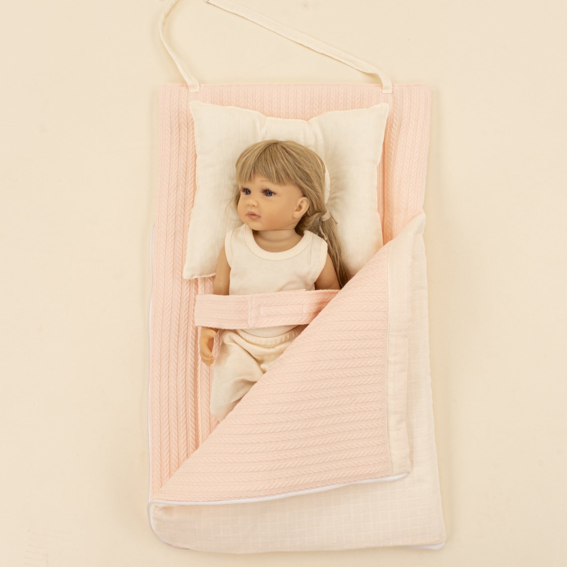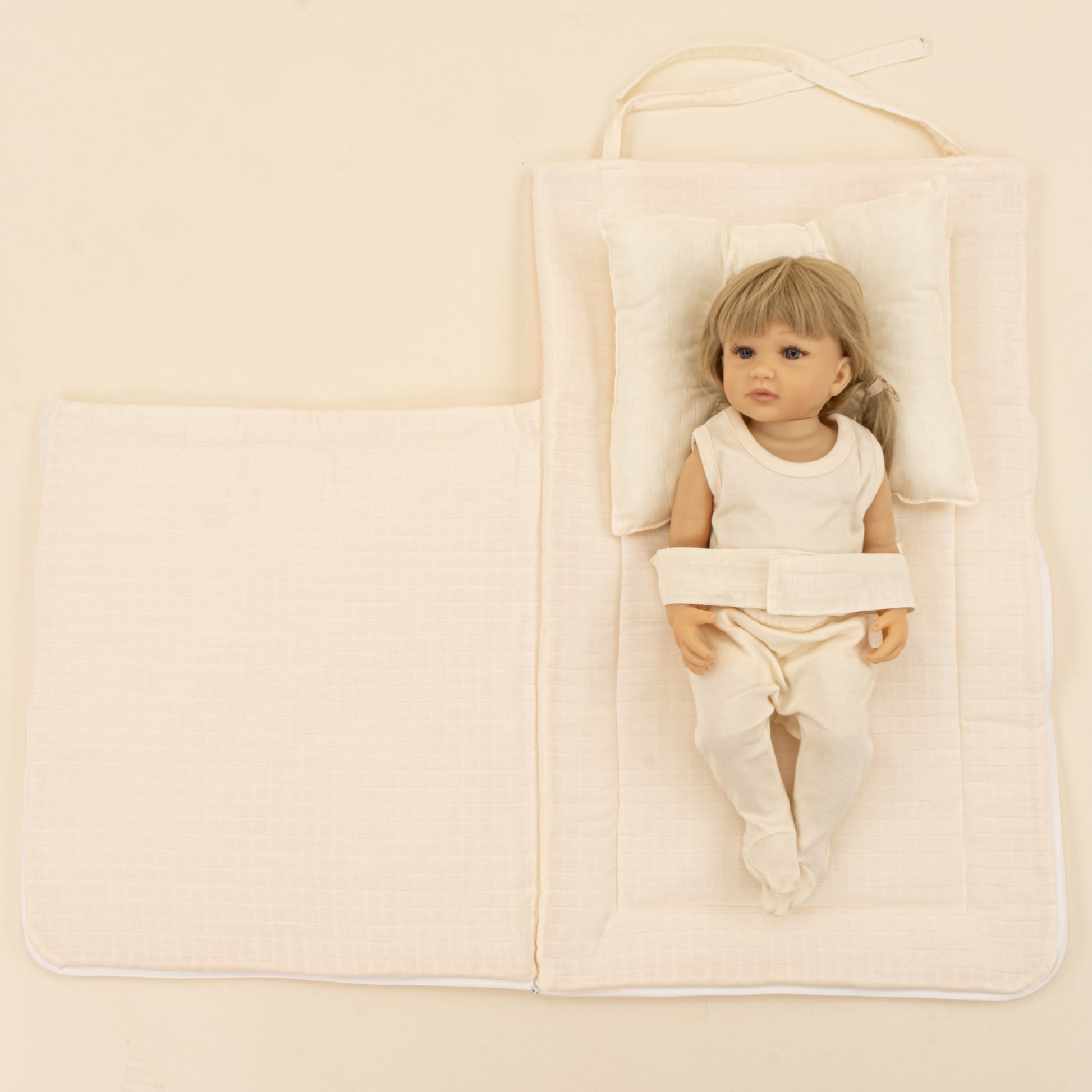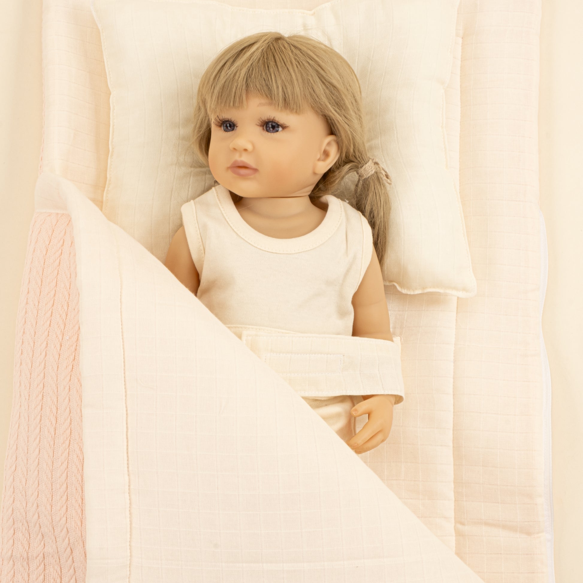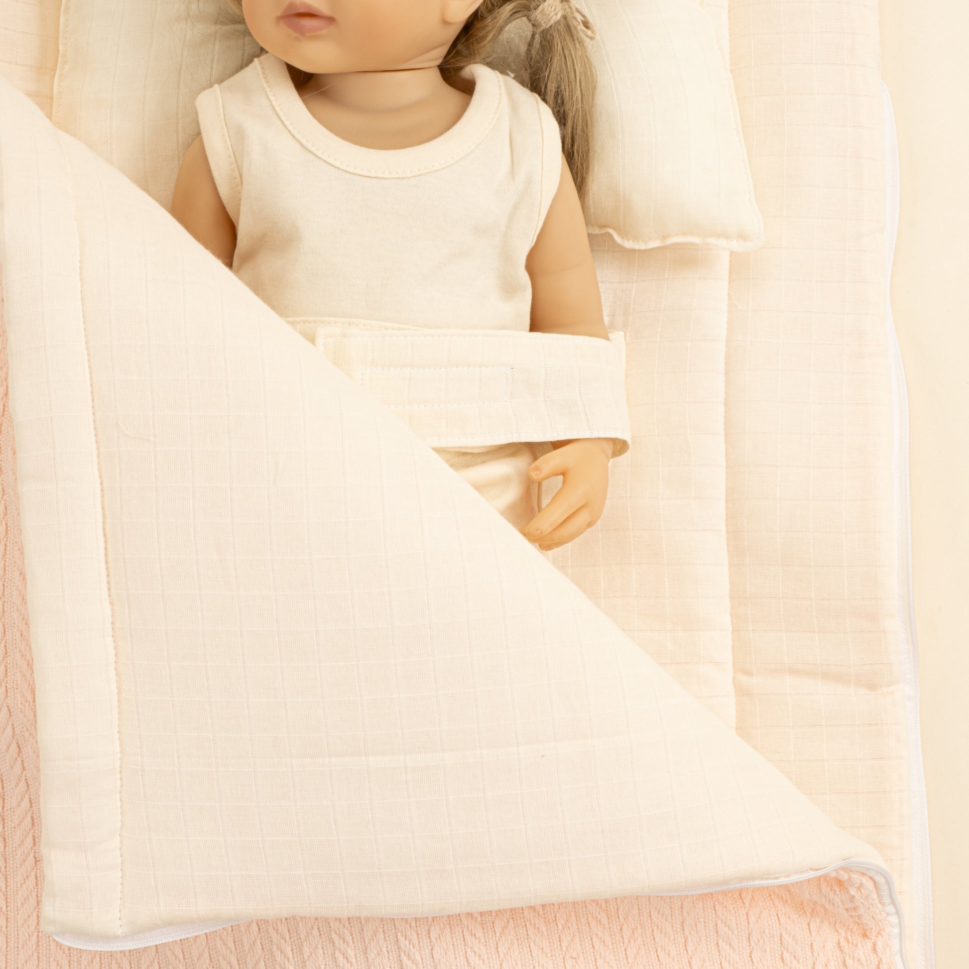 Uyku Tulumu ve Baş Şekillendirici Yastık - Somon Örgü - Krem Muslin